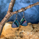 Sterling Silver triangle Opal doublet 5.38ct dangling earrings