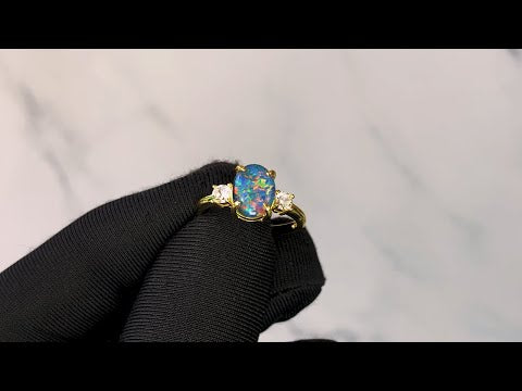 Gold plated Silver 10x8mm Opal triplet trilogy ring
