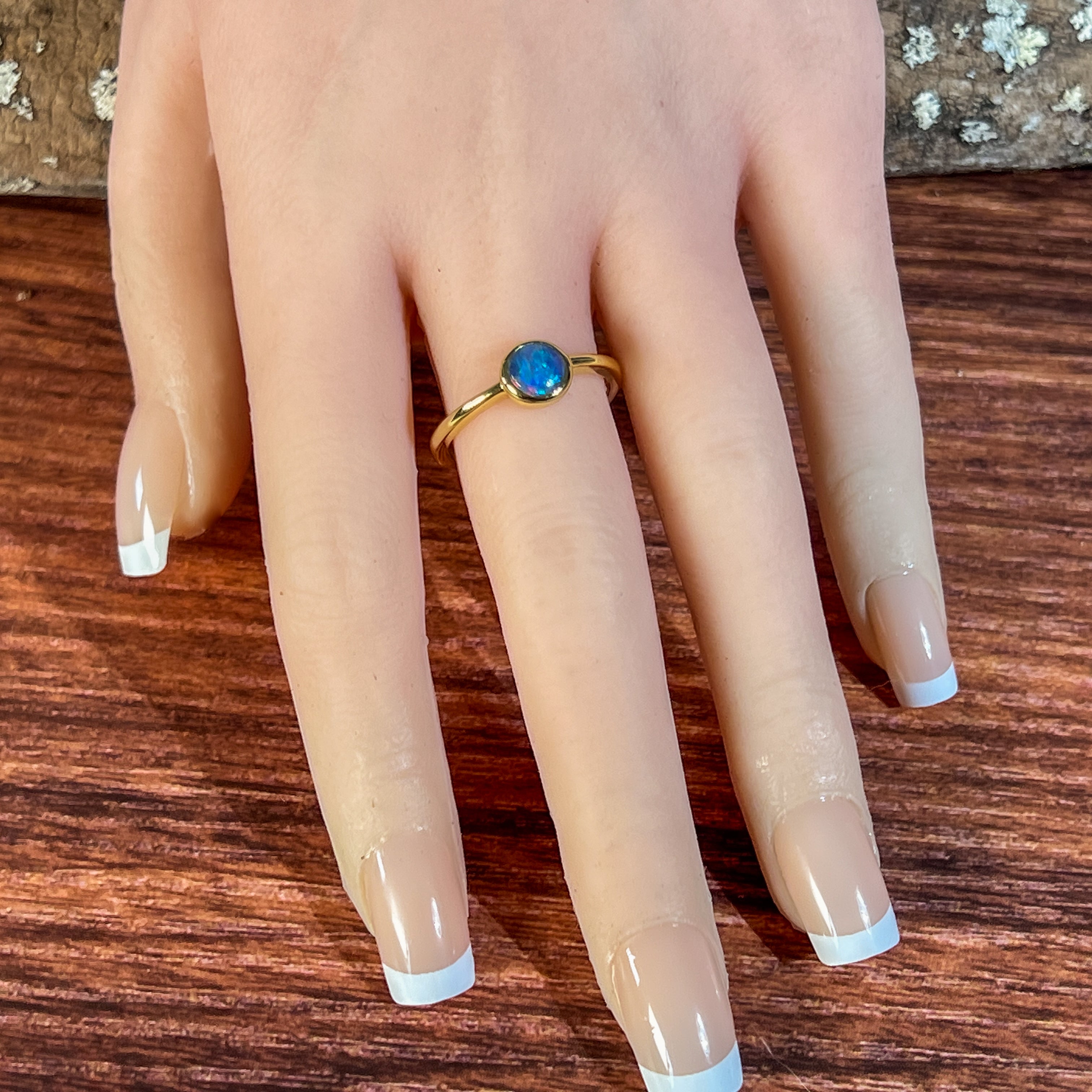 Gold Plated Silver 6mm Round Opal triplet ring bezel set
