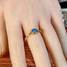 This gold plated silver ring features a 6mm round opal triplet set in a classic bezel, making it an elegant and timeless addition to any jewelry collection. The opal triplet reflects light beautifully and adds a touch of sophistication to any outfit. A must-have for those who appreciate classic and understated beauty.