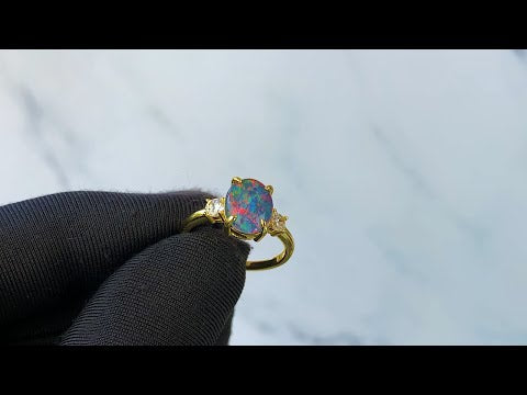 Gold plated Silver 9x7mm Opal triplet 3 stone ring