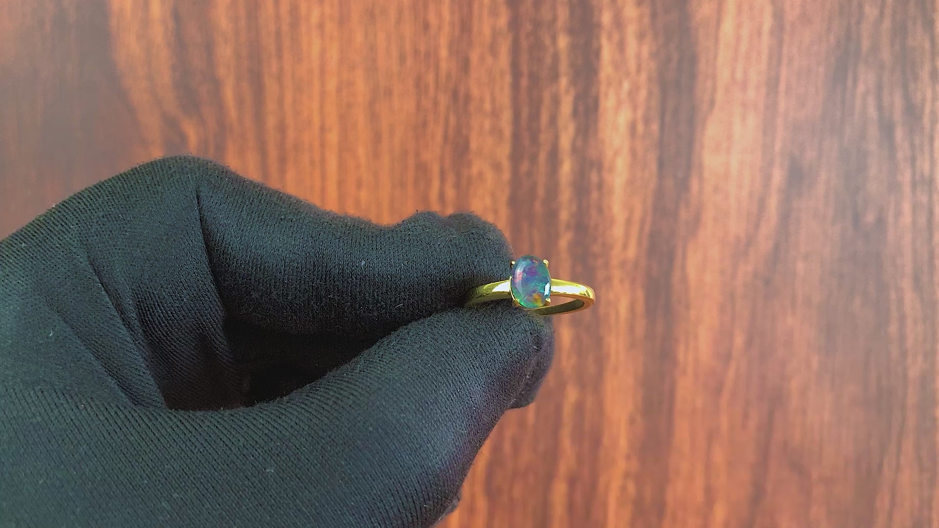 Gold Plated silver solitaire 8x6mm Opal triplet ring