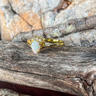 Discover the modern elegance of our Gold Plated Silver White Opal ring with a stunning 7x5mm pear-shaped stone. This sophisticated piece effortlessly adds a touch of luxury to any outfit. Elevate your style and express your unique sense of fashion with this timeless and beautiful ring.