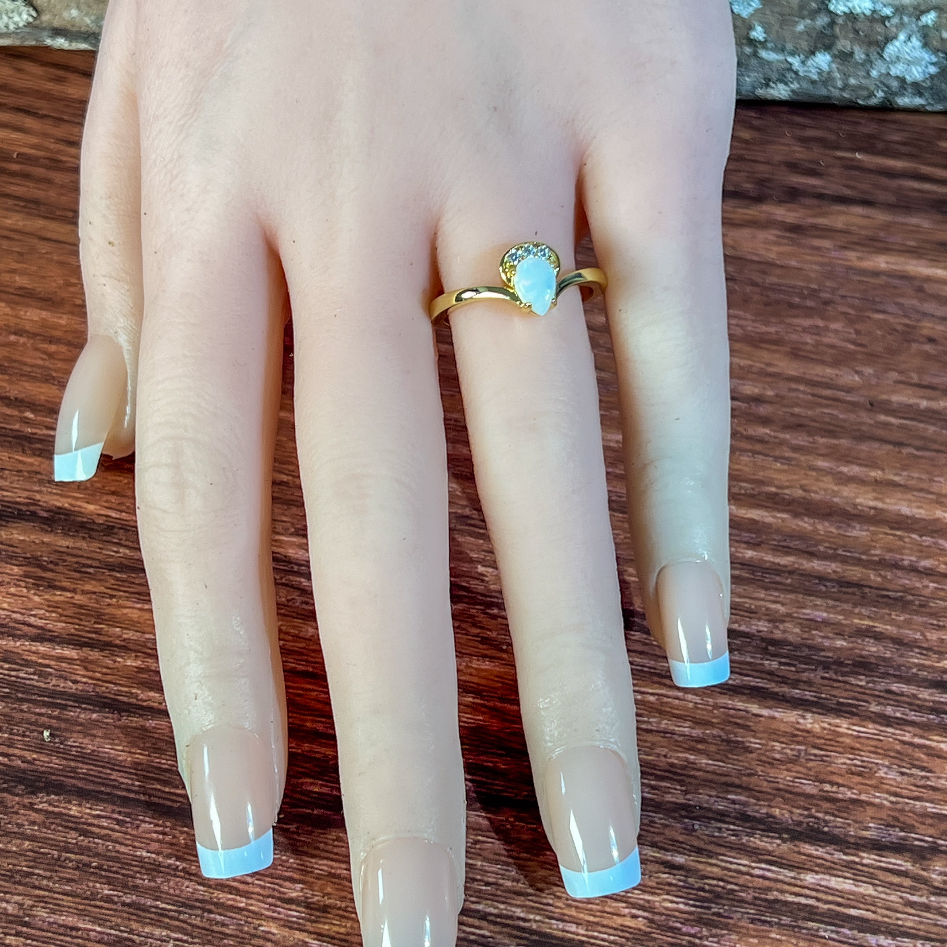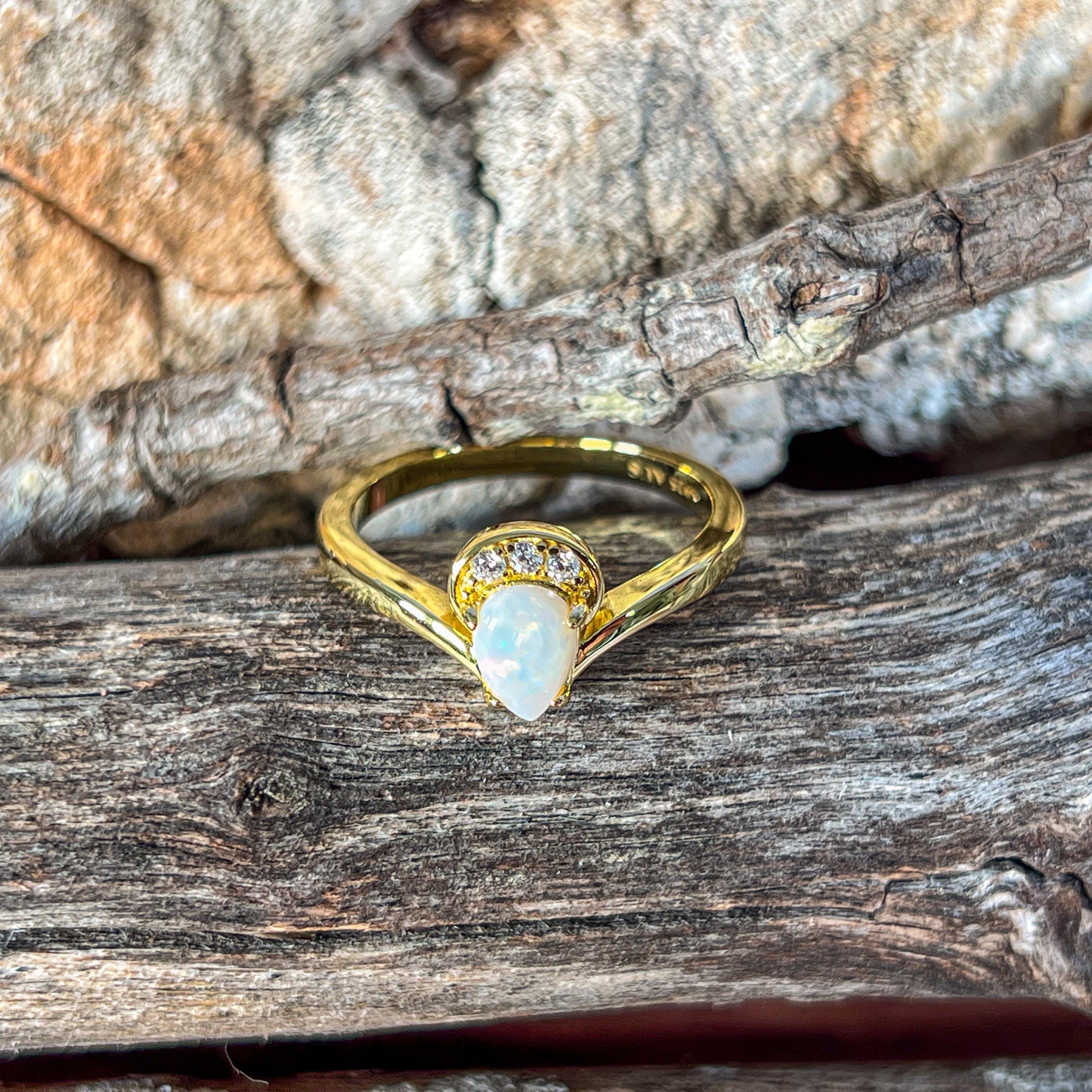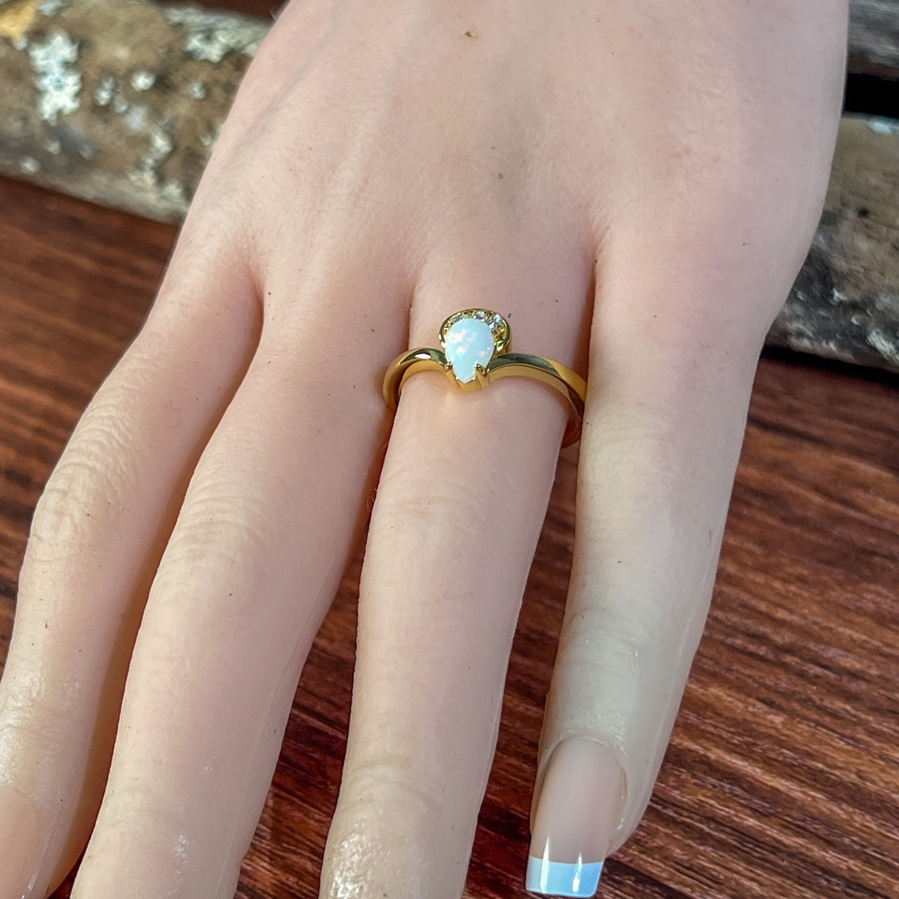 Gold Plated Silver White Opal pear shape 7x5mm ring