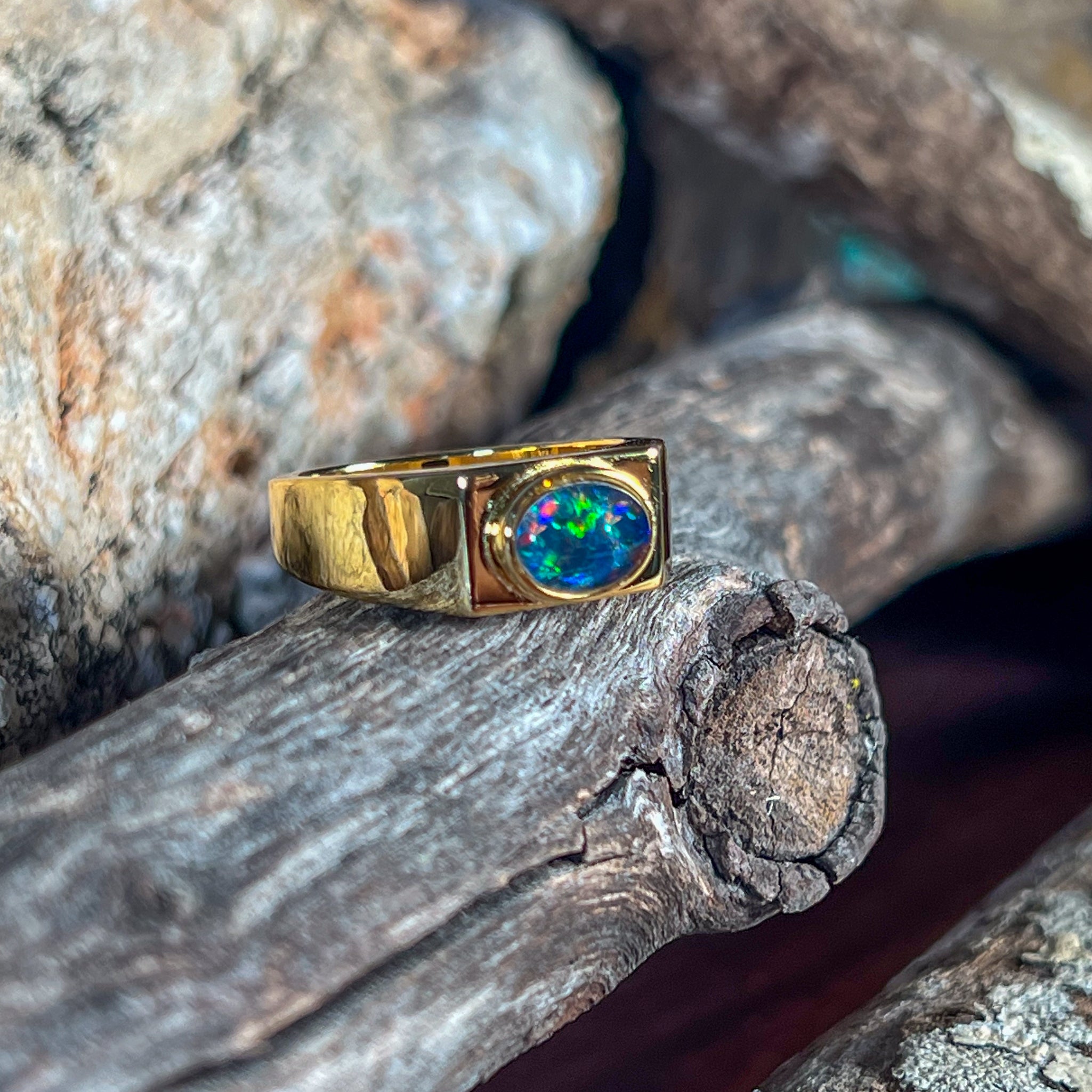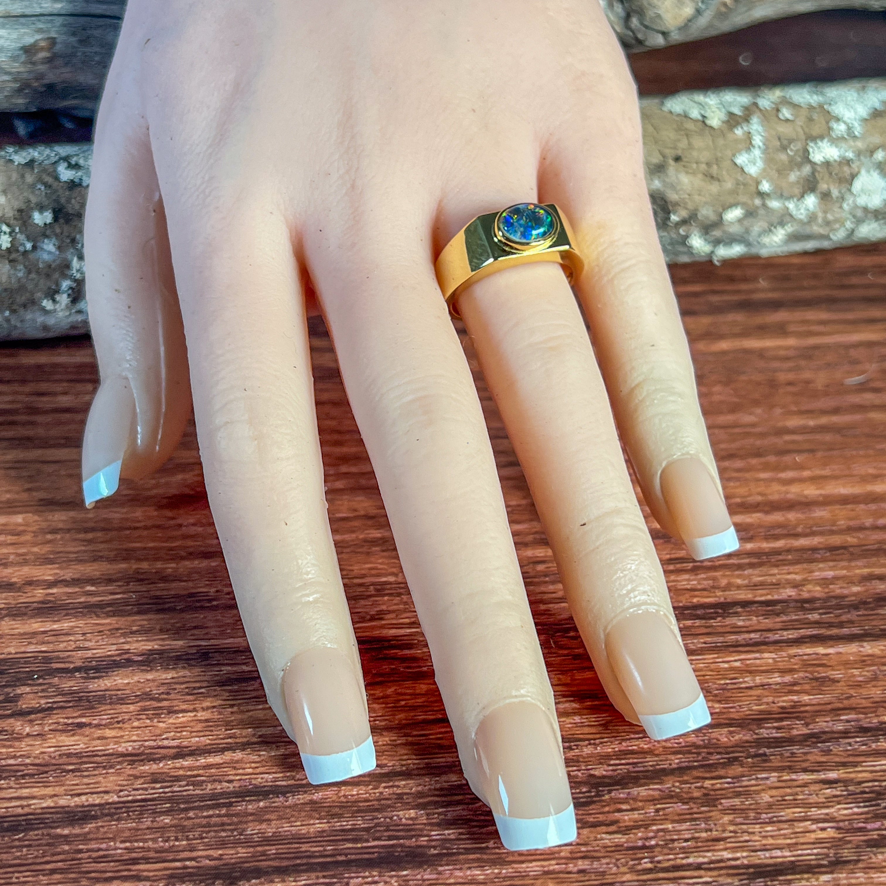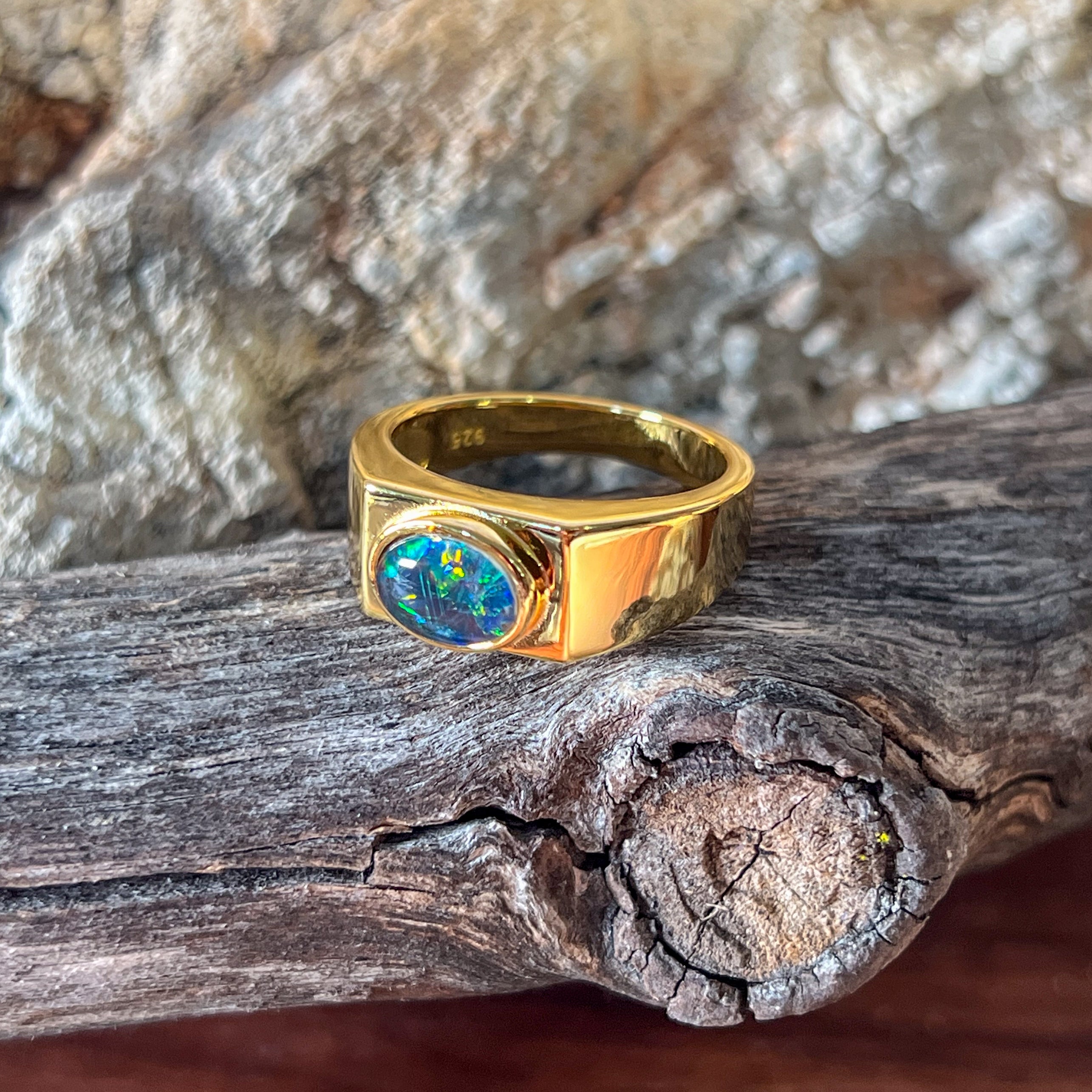 Gold plated Sterling Silver 8x6mm horizontal set Opal triplet rectangular shape ring