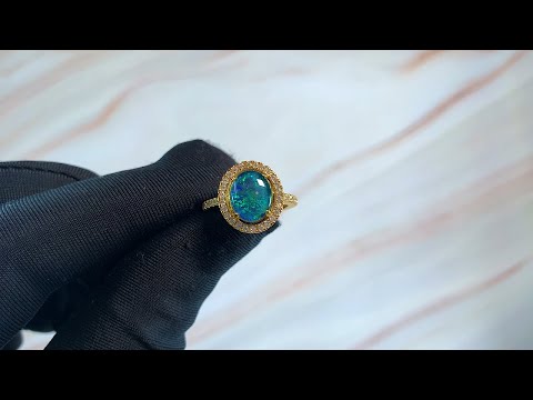 Gold Plated Sterling Silver Opal triplet 10x8mm halo ring