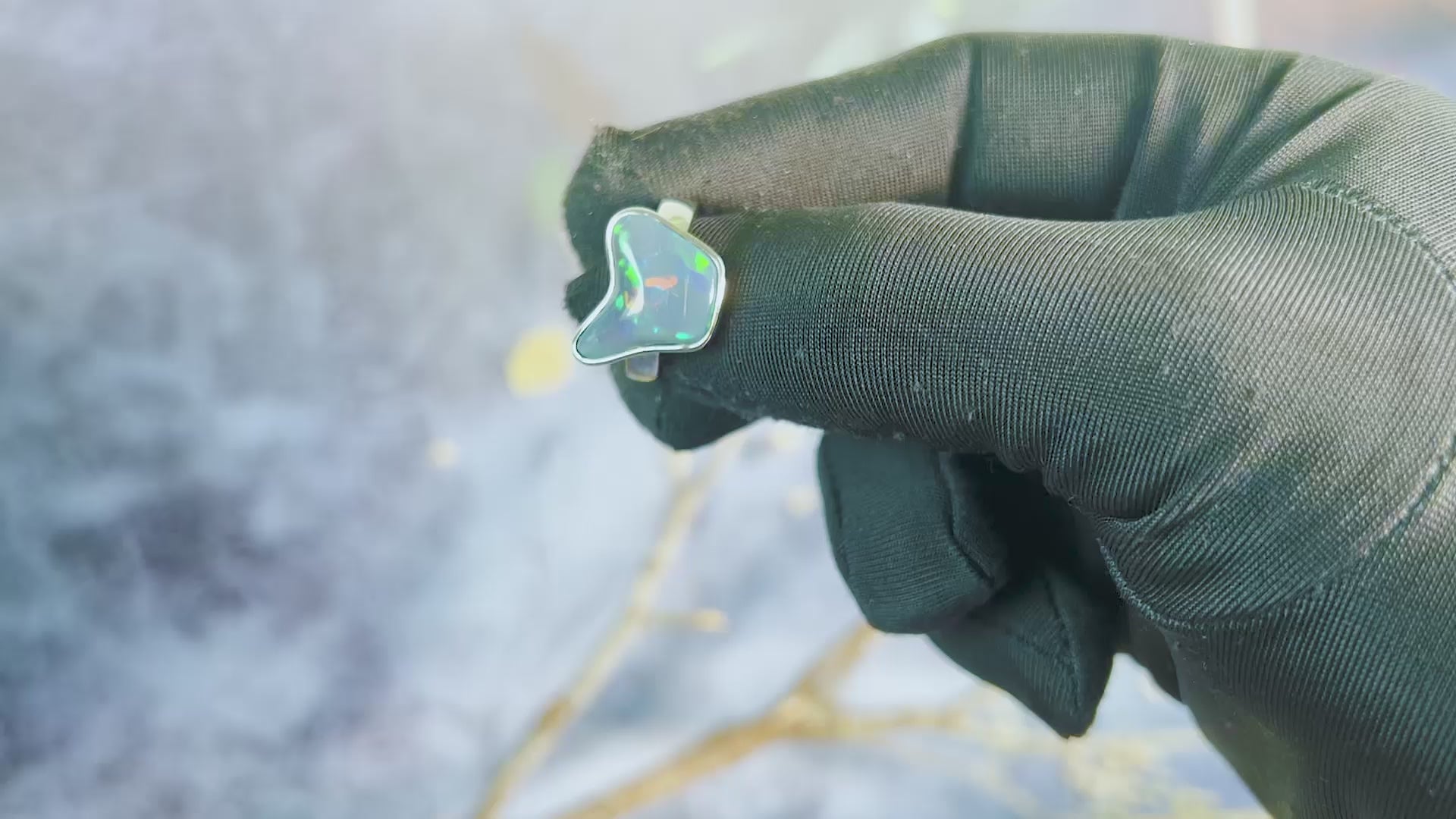 One Black Opal 6.46ct freeform Australia shape silver ring