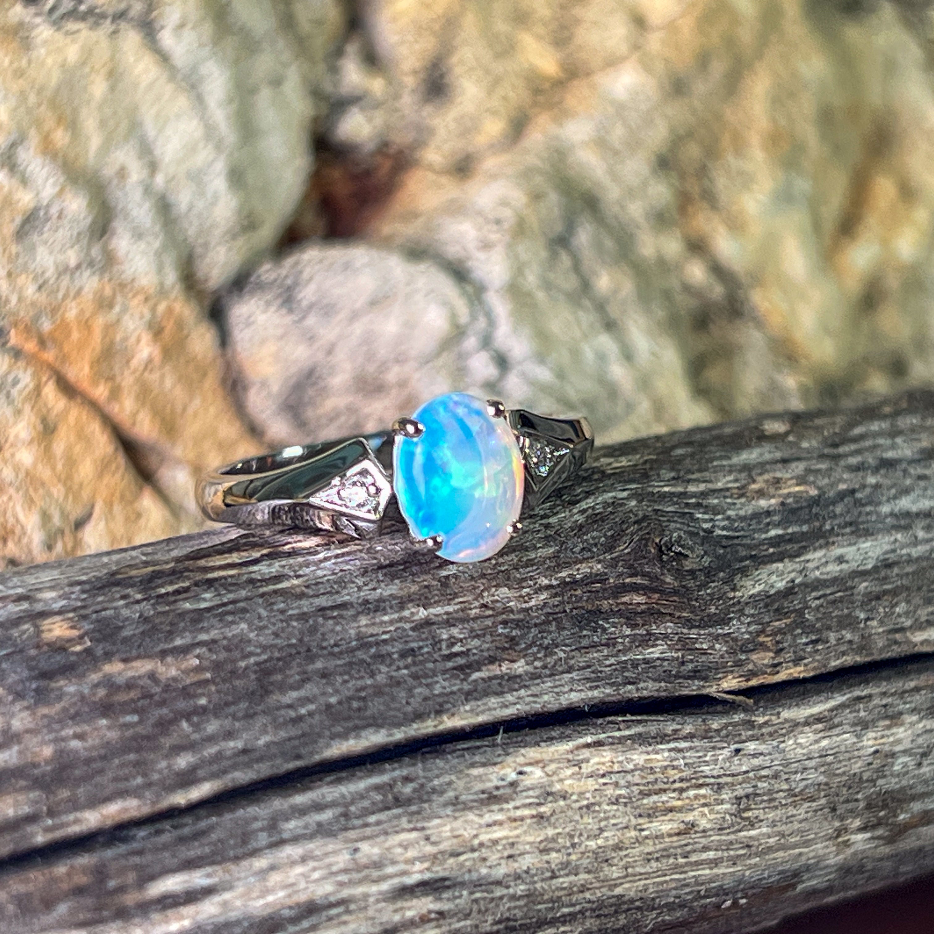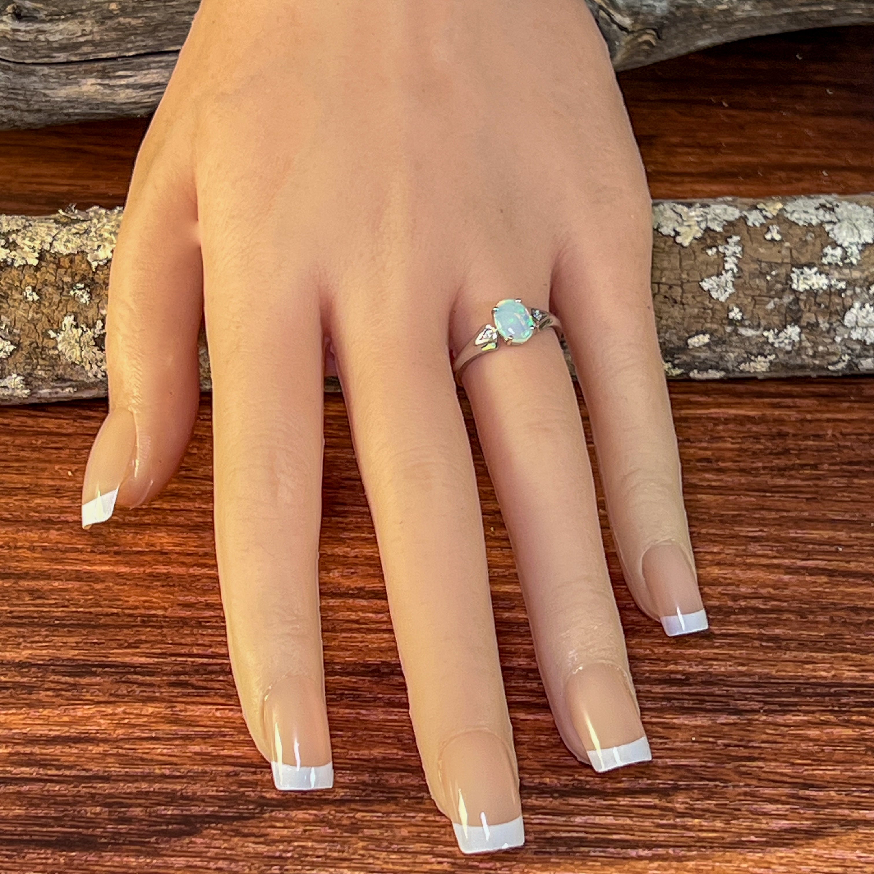 One Sterling Silver 8x6mm Light Opal and side cz ring