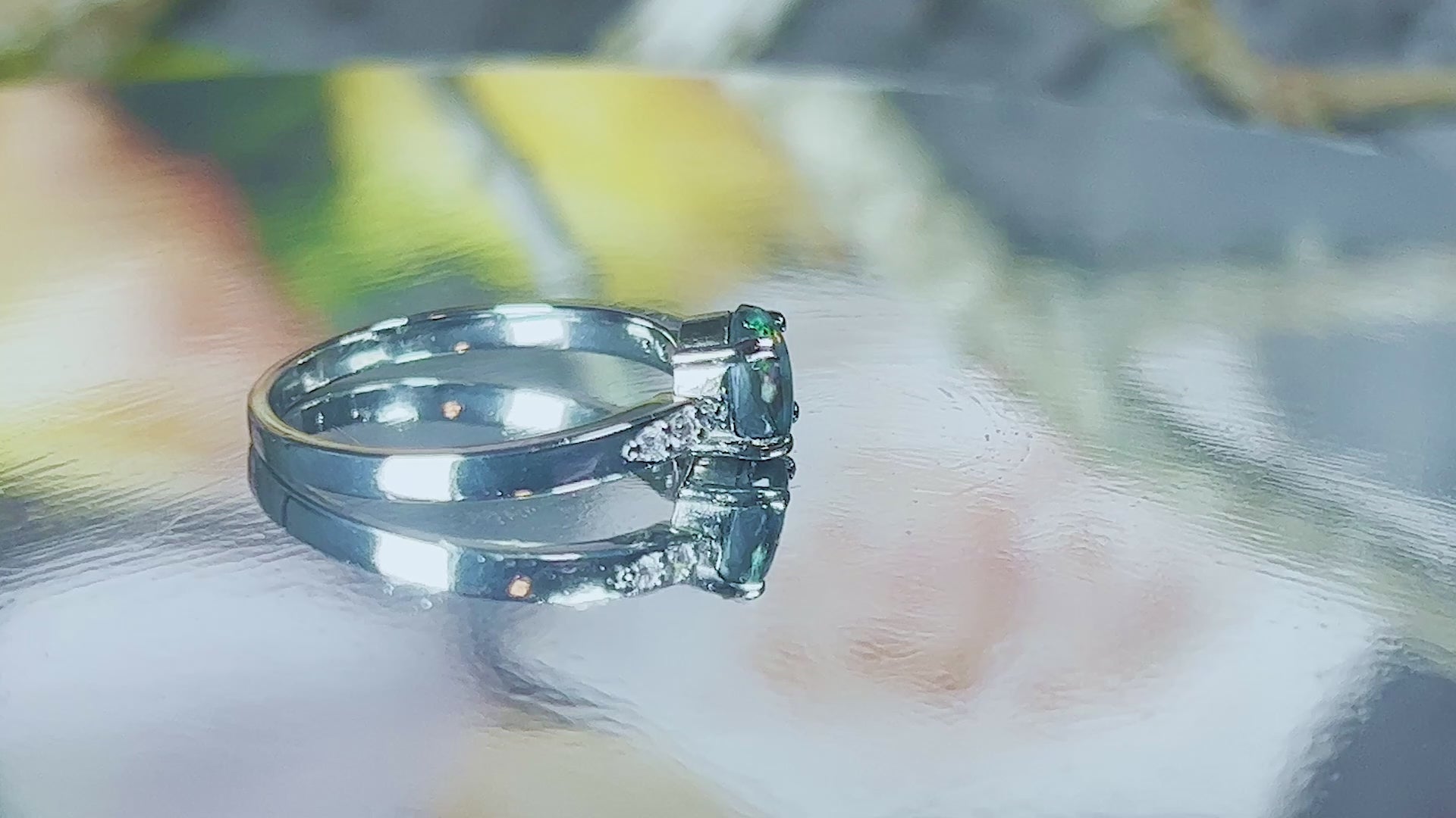 Platinum Black Opal Ring with Pink Diamonds for Women - Silver & Gold Opal Jewelry Elegance