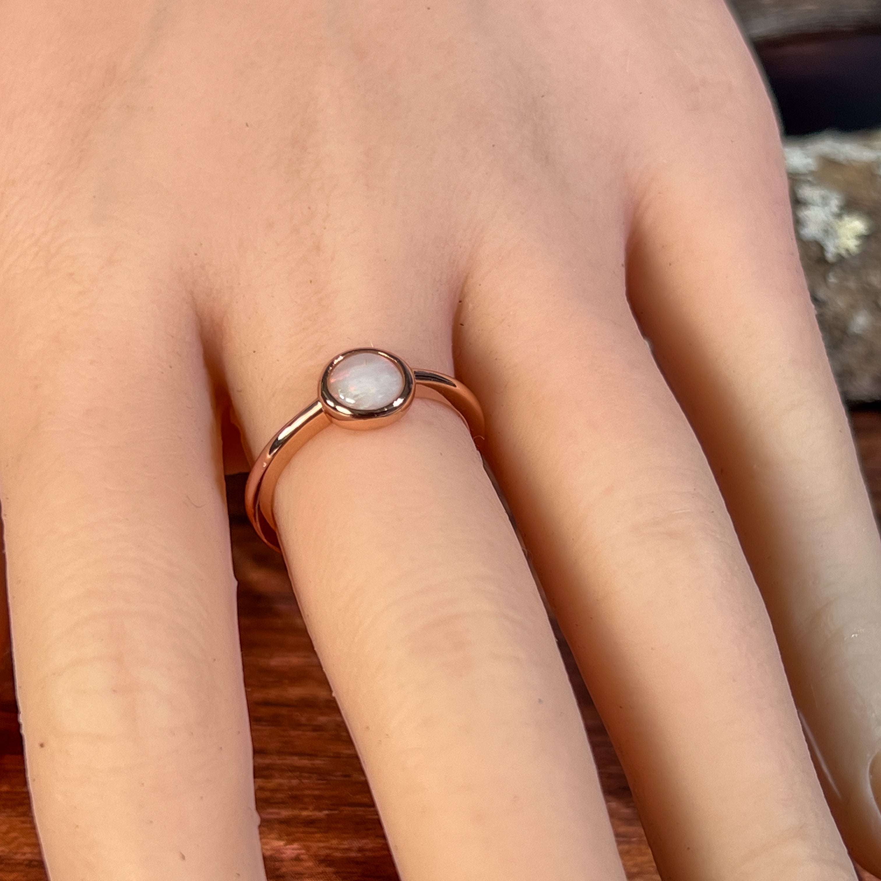 Rose Gold plated silver 6mm White Opal solitaire ring