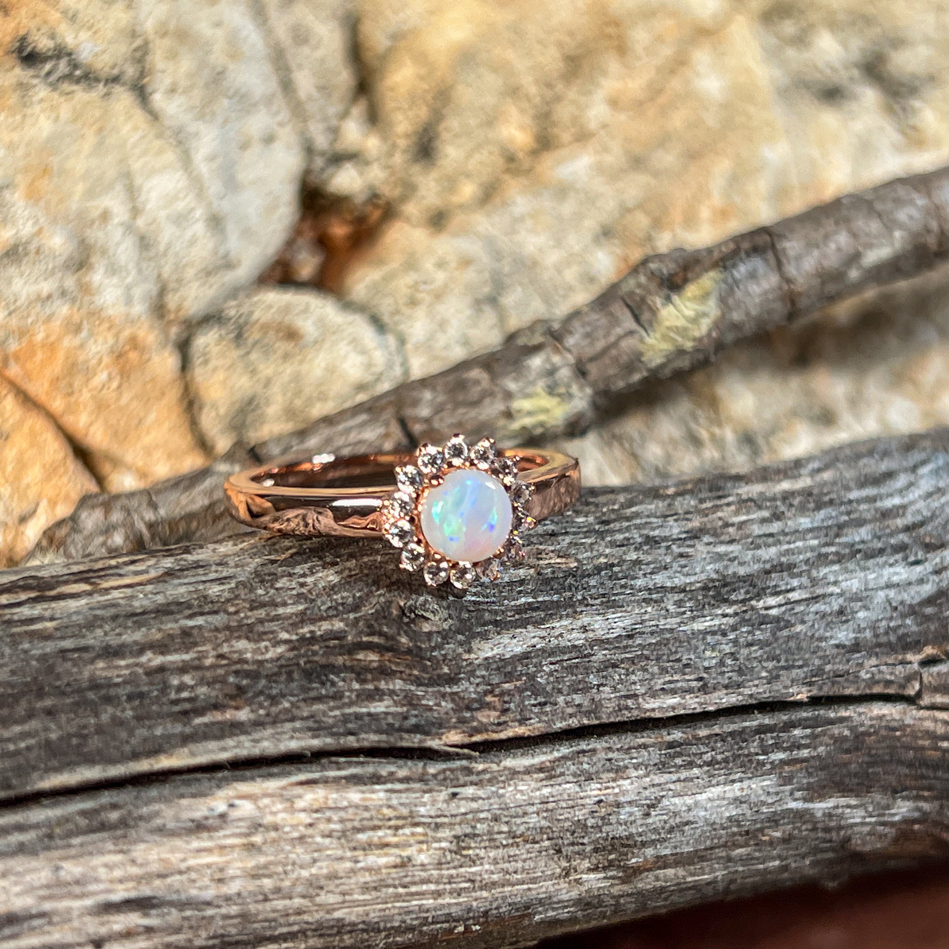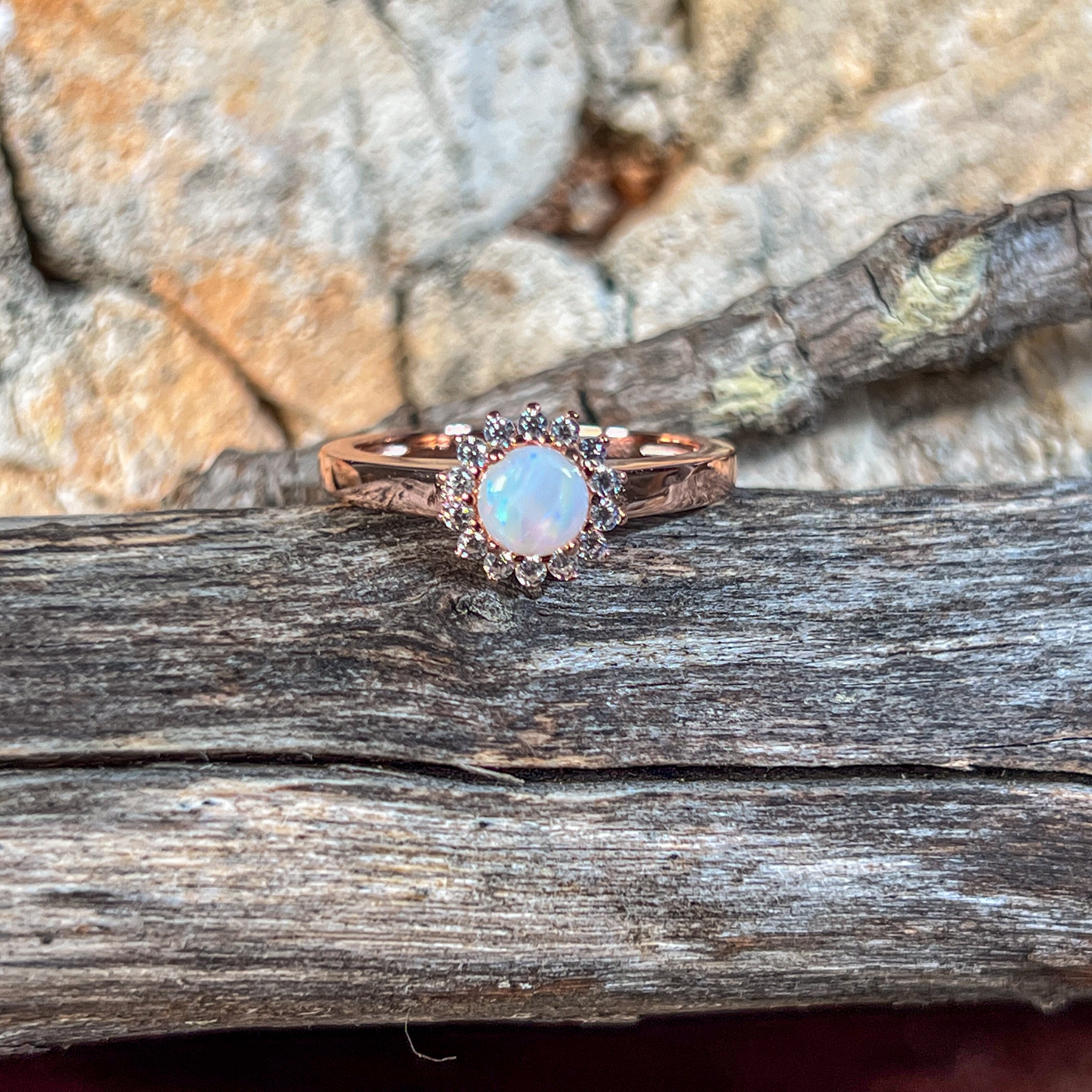 Rose Gold plated silver cluster ring 5mm Round White Opal ring