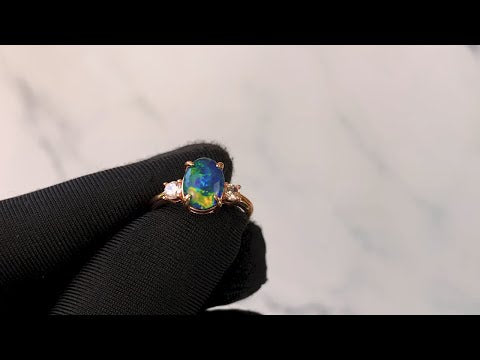Rose Gold plated silver ring 9x7mm Opal 3 stone ring
