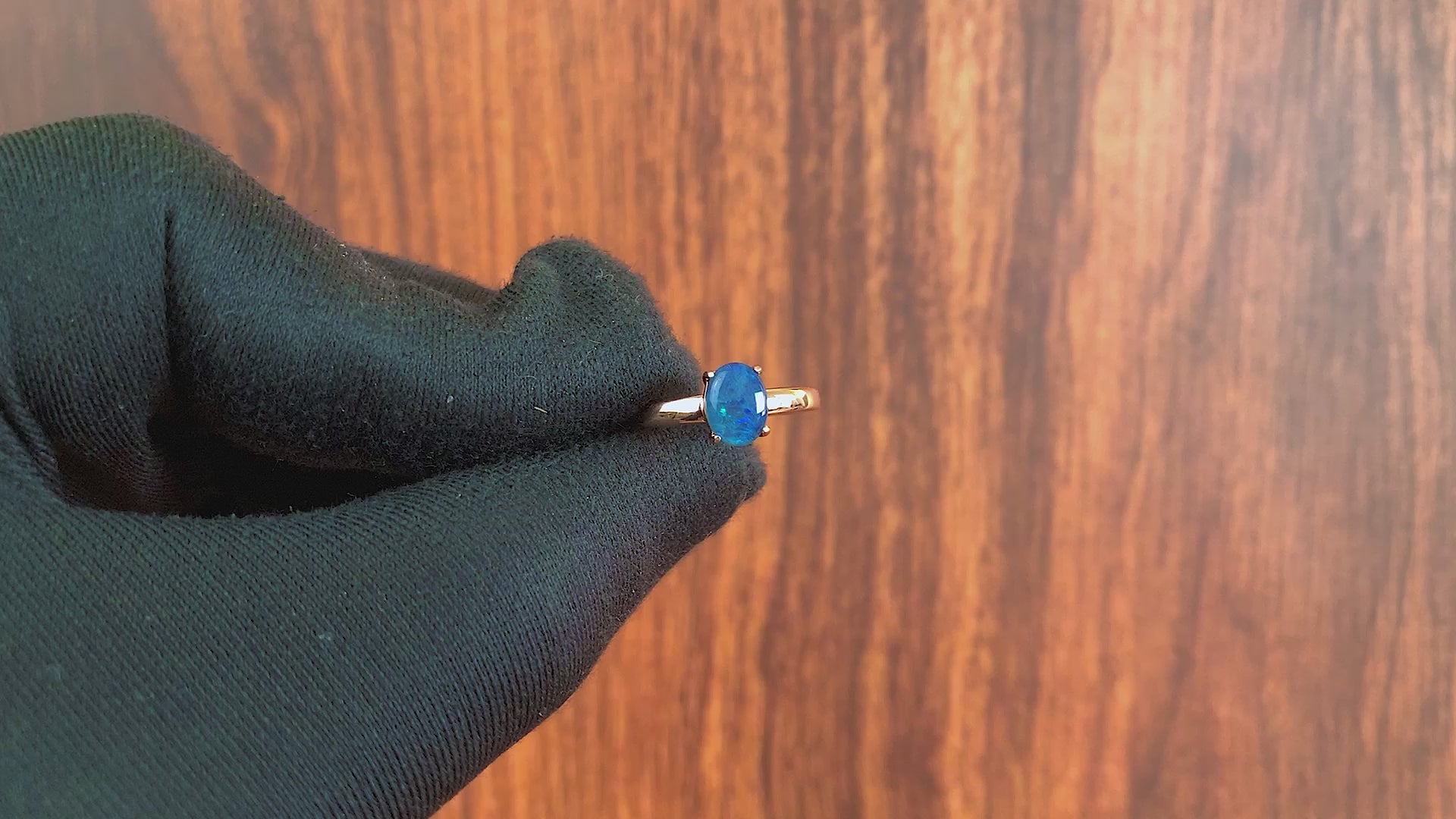 Rose Gold plated silver solitaire 8x6mm Opal triplet ring