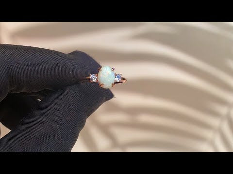 Rose Gold Plated Sterling SIlver 10x8mm White Opal ring trilogy