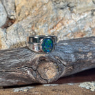 Sterling Silver 11x9mm Opal triplet graduating band step shape ring