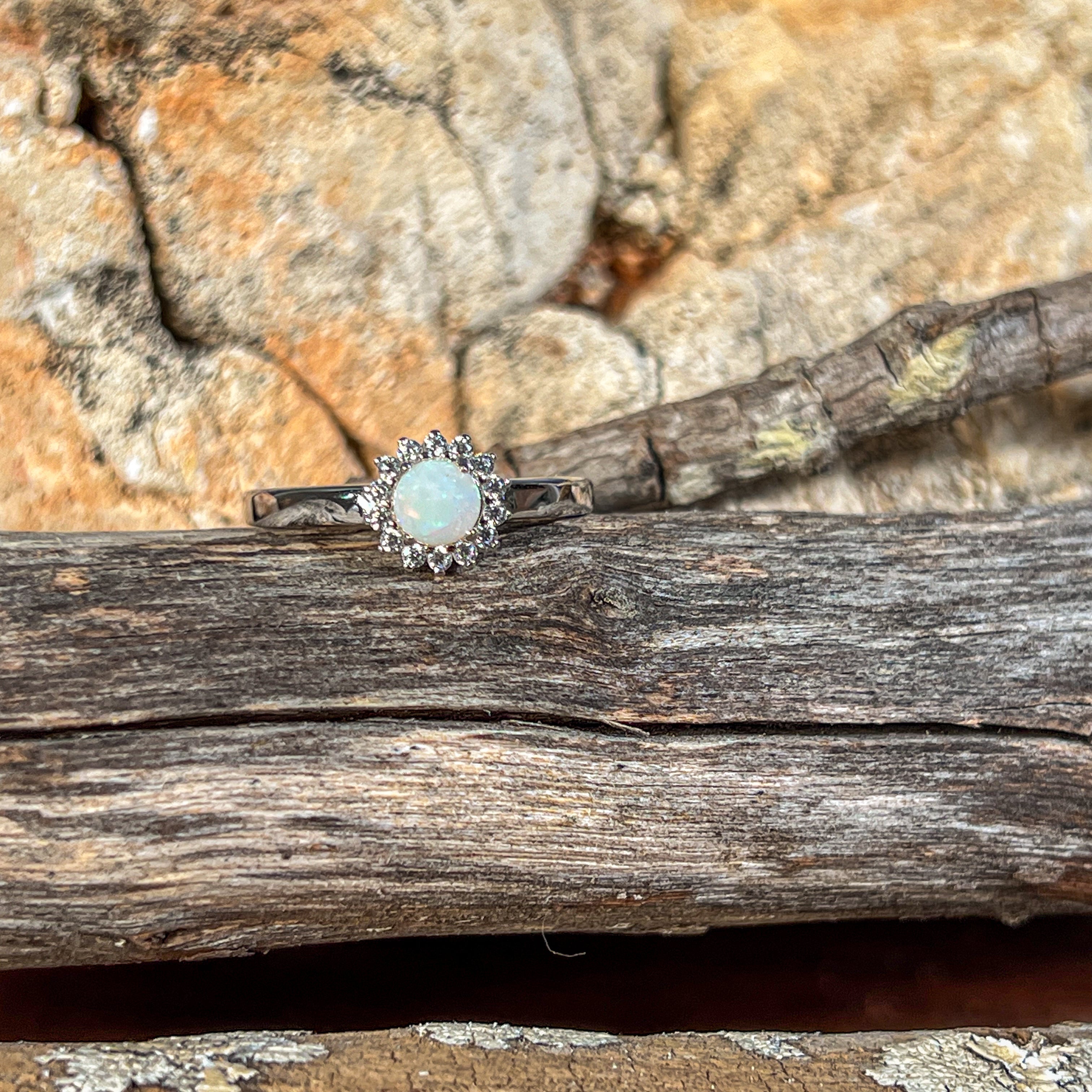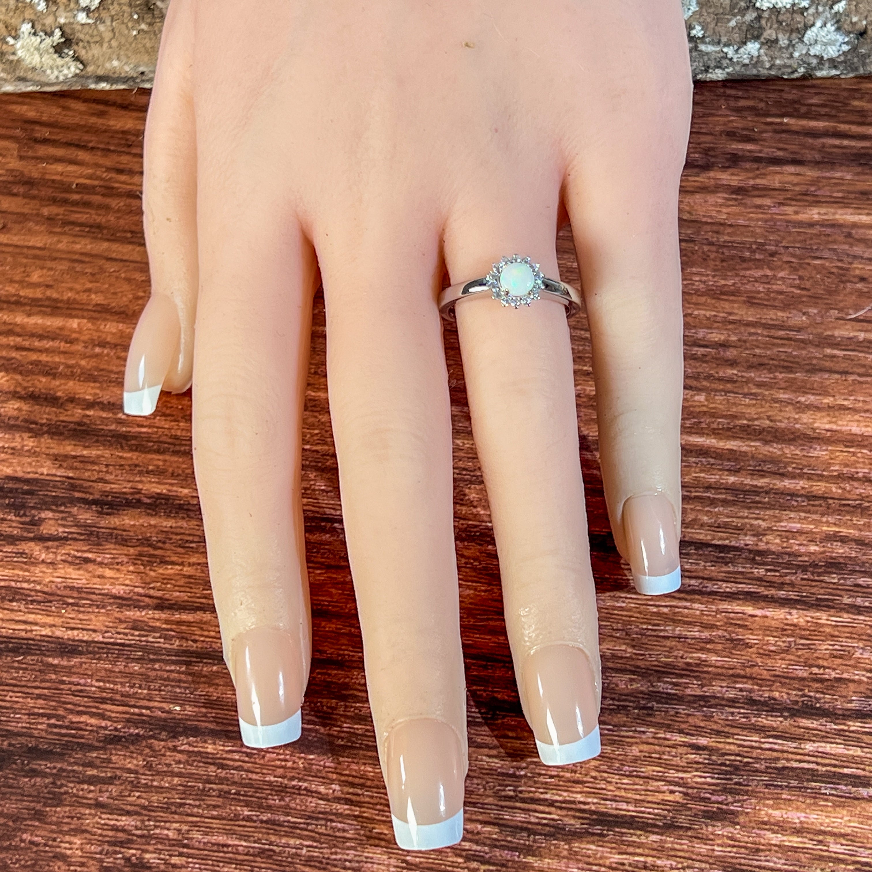 This classic Sterling Silver 5mm Round White Opal ring cluster adds a touch of elegance to any outfit. Crafted with high quality materials, its timeless design will make a statement for years to come. Perfect for any occasion, this ring will be sure to become a cherished piece in your jewelry collection.