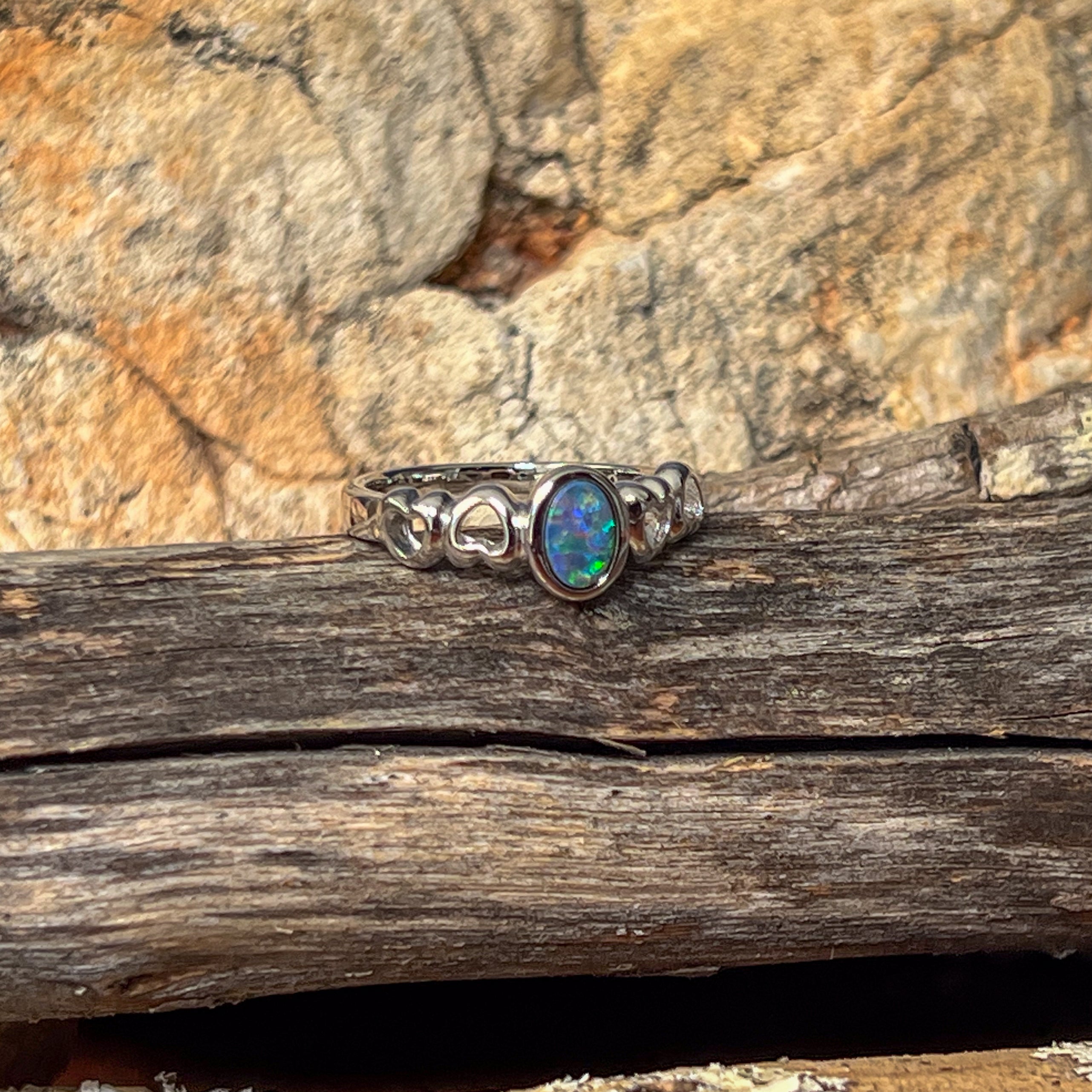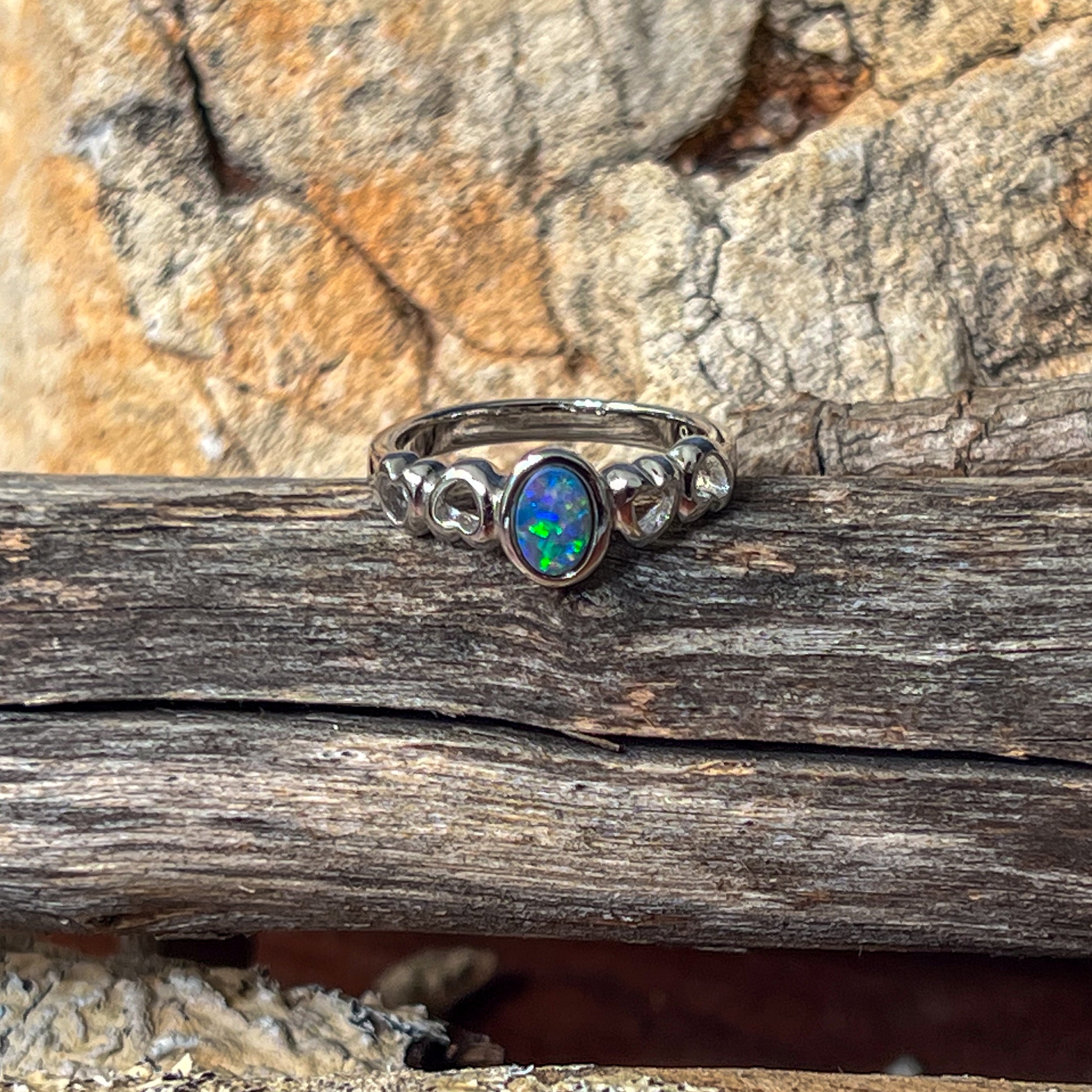 Sterling Silver 6x4mm Opal doublet heart cut out design ring