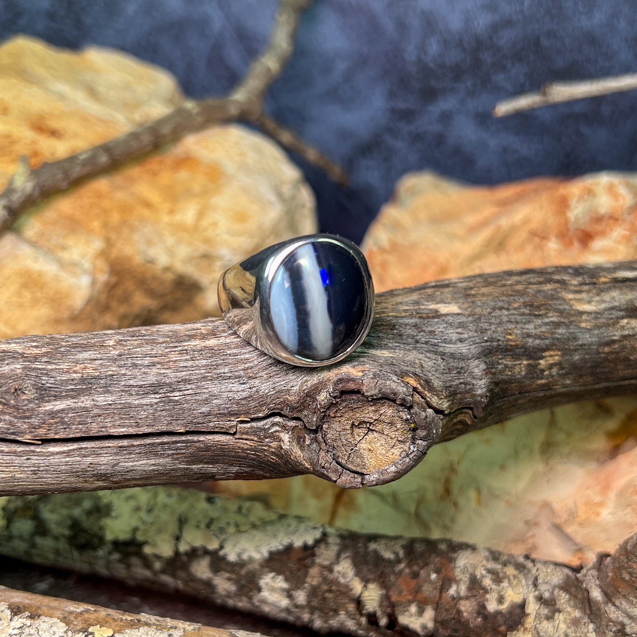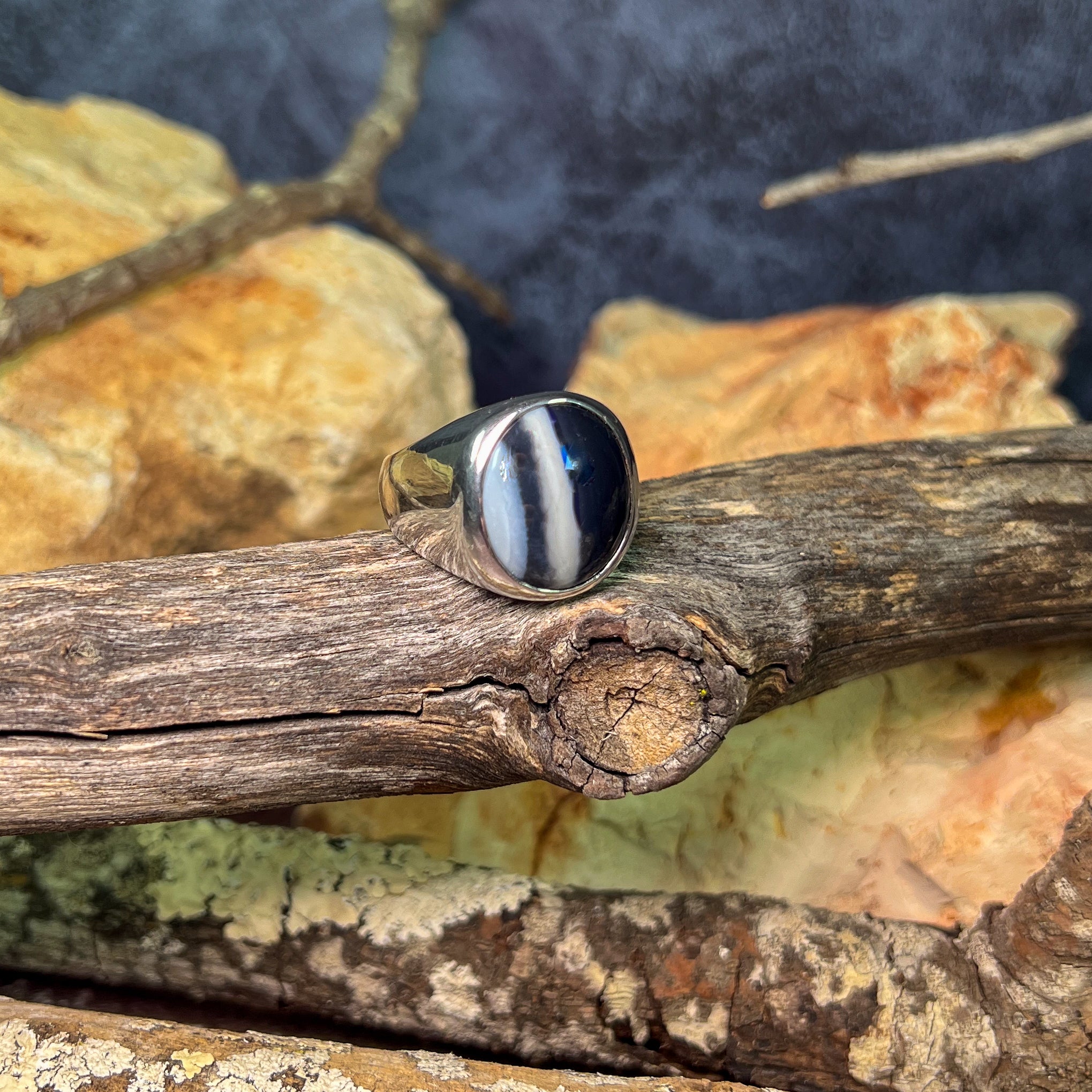 One Sterling Silver ring wth one 8.3ct Black Opal with white stripes