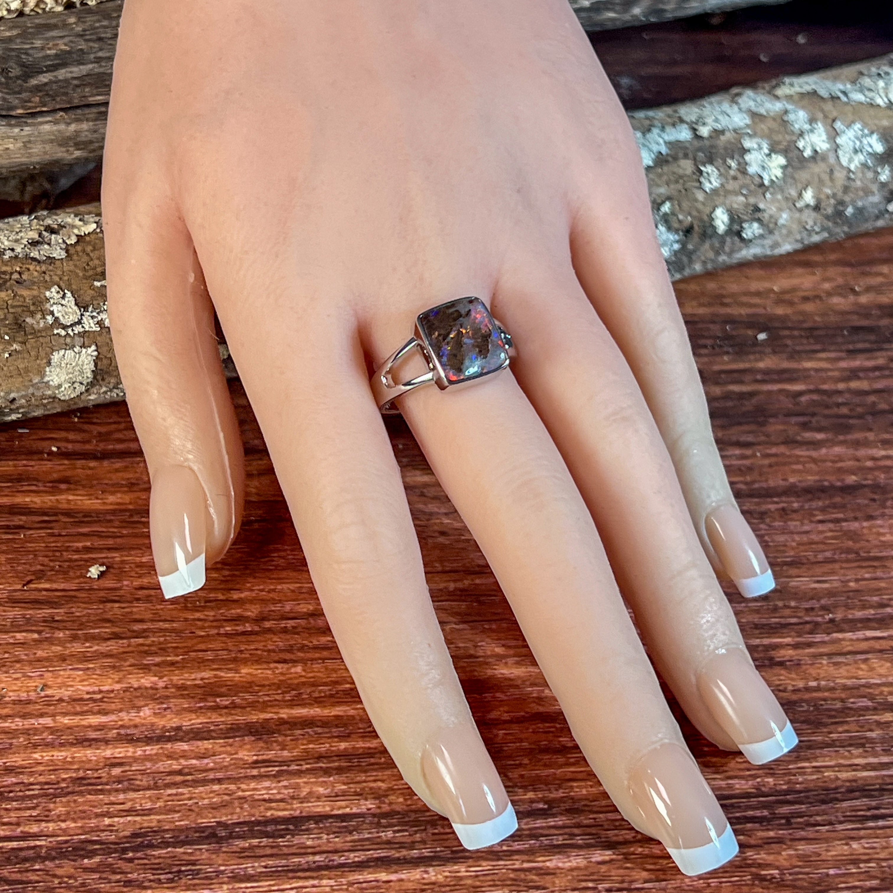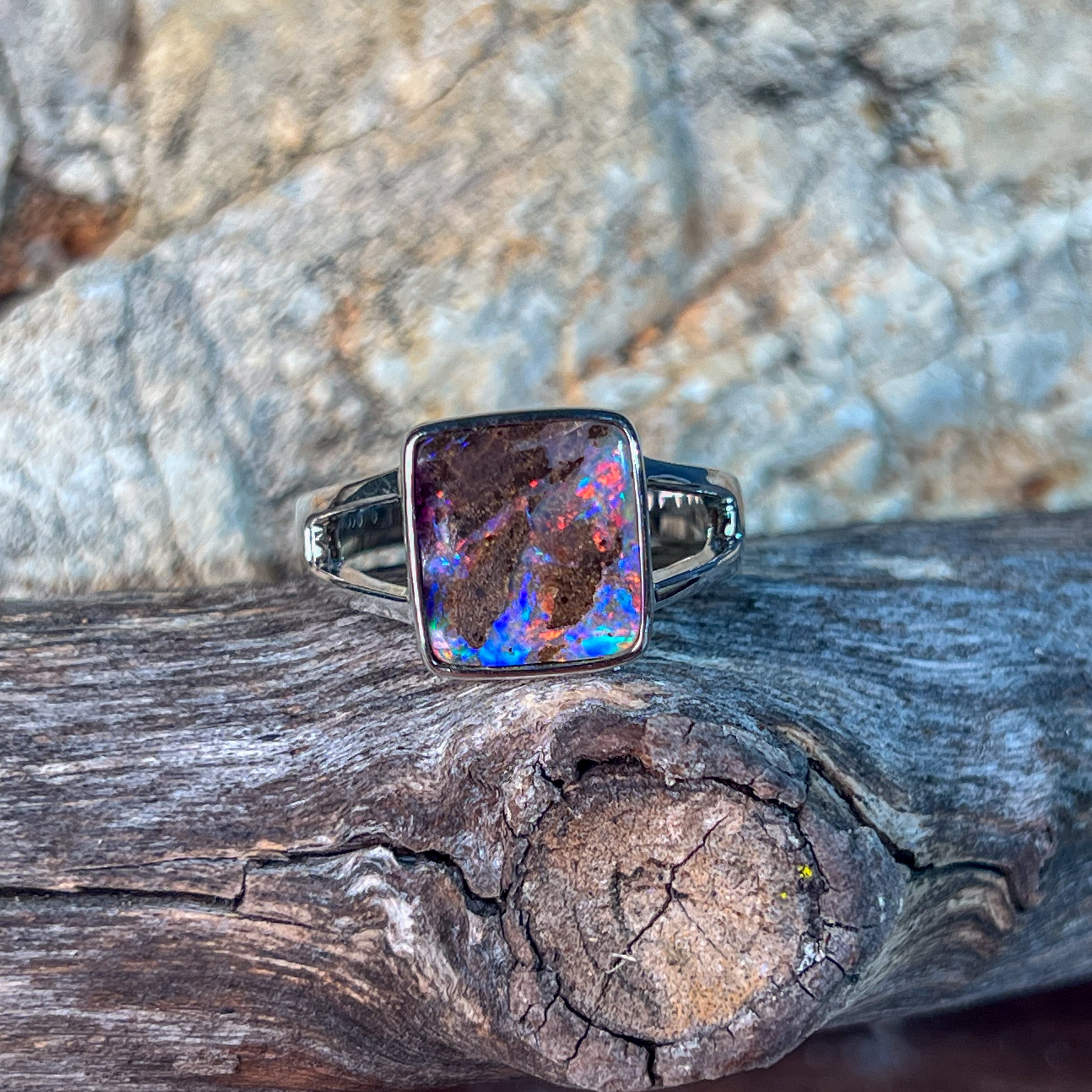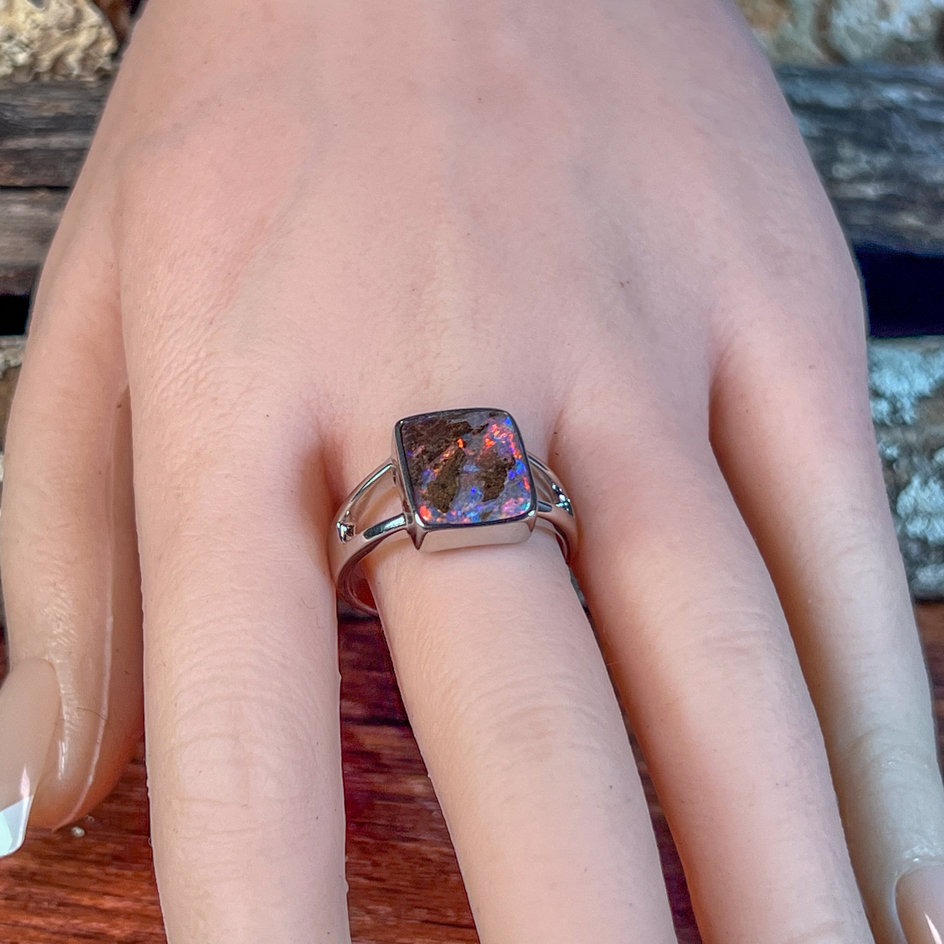Enhance your style with our Sterling Silver Boulder Opal 4.84ct ring. This opal jewellery piece shines with its unique and colorful boulder opal, set in a sleek silver band. Elevate your look with this stunning opal ring.