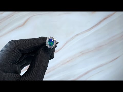 Sterling Silver cluster ring 10x8mm Opal Triplet cluster