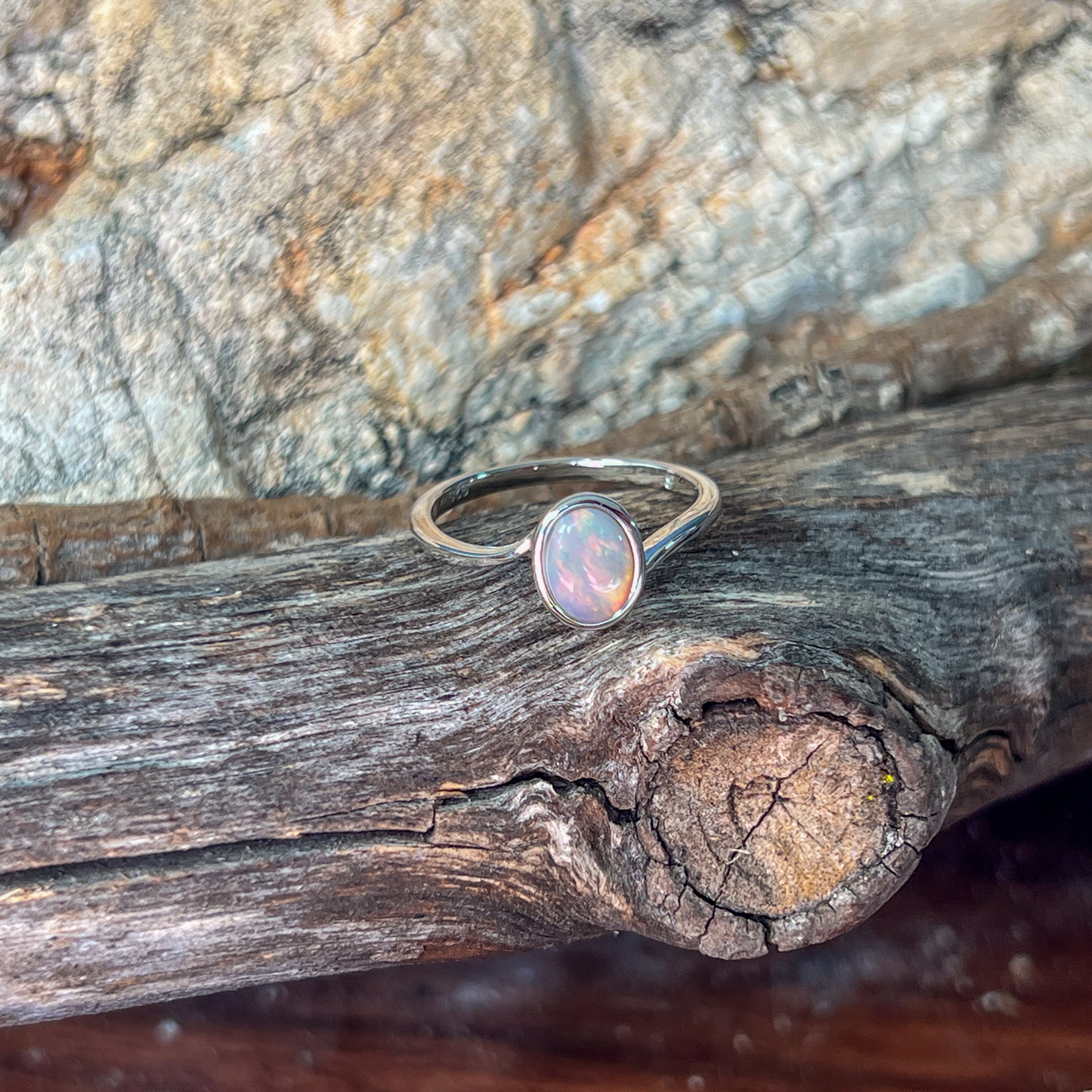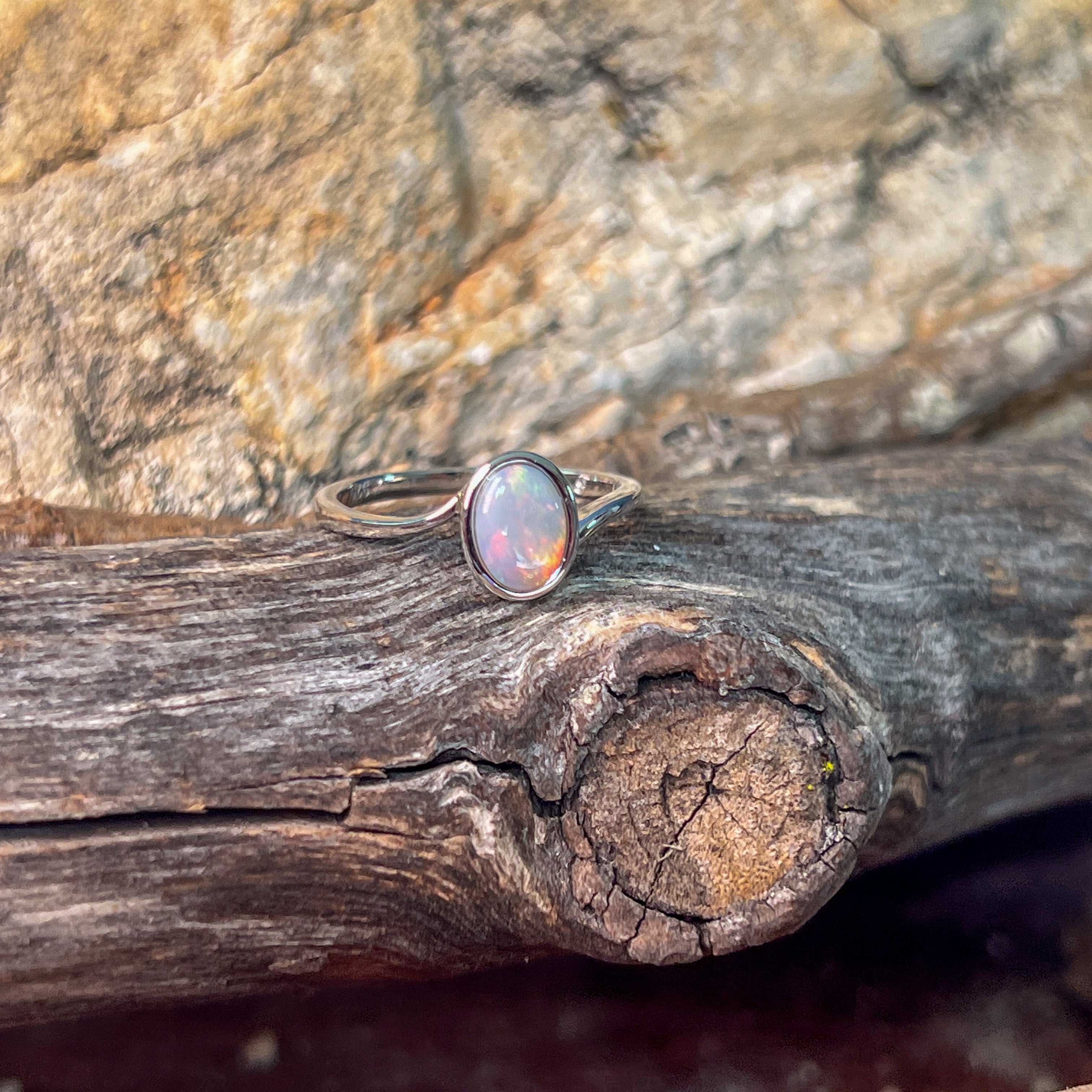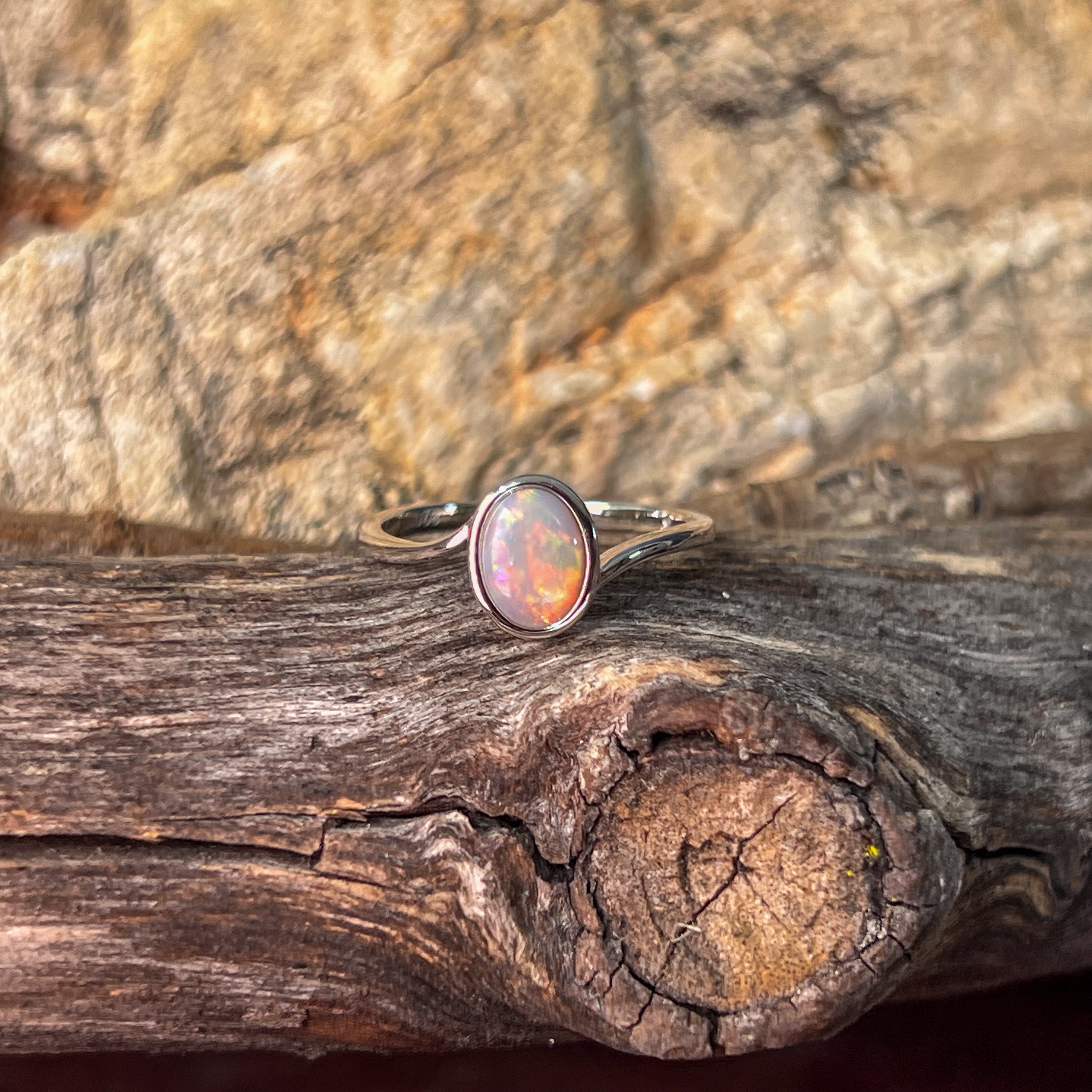 Sterling Silver cross over ring with one 7x5mm White Opal