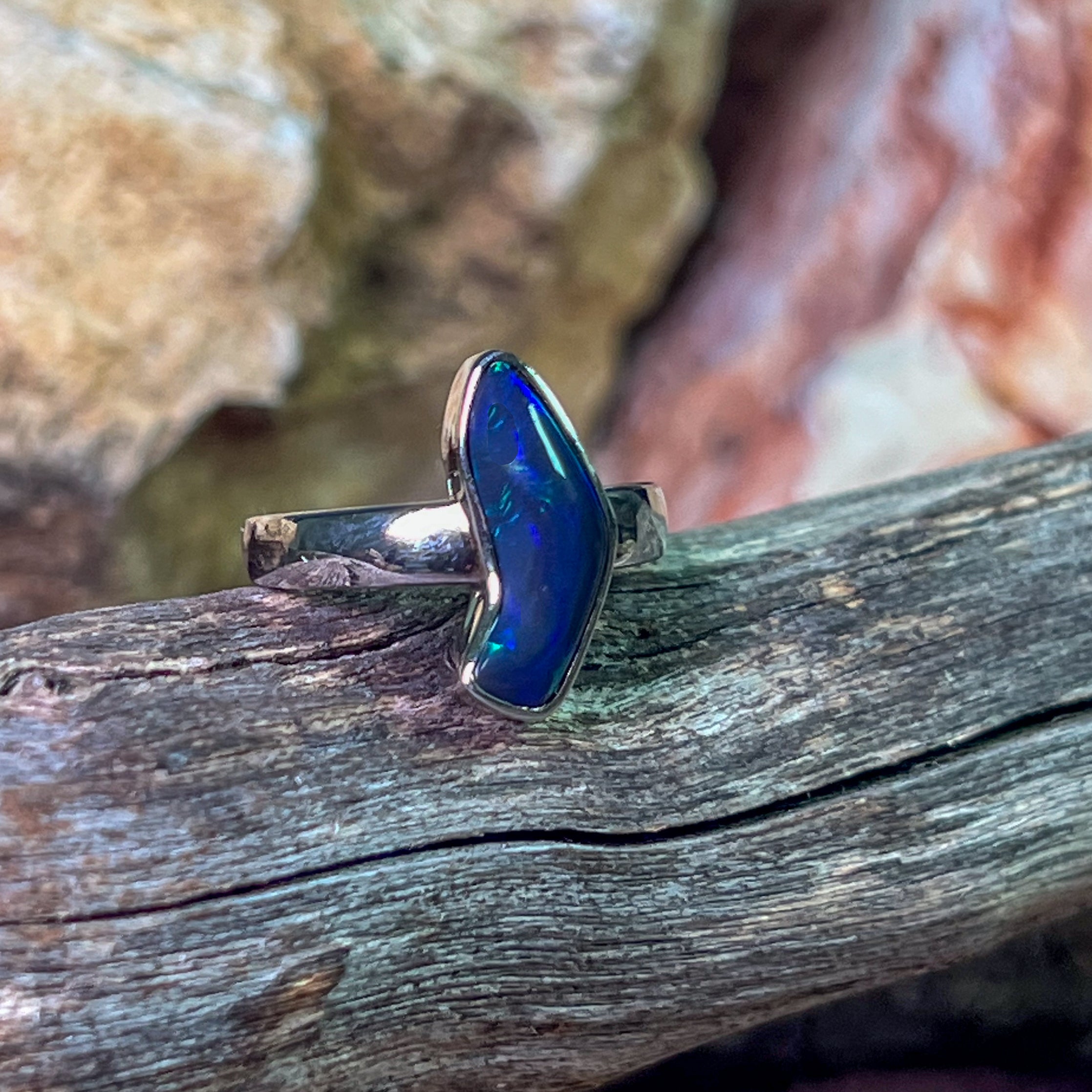 Sterling Silver Freeform Green Blue Black Opal 2.15ct ring
