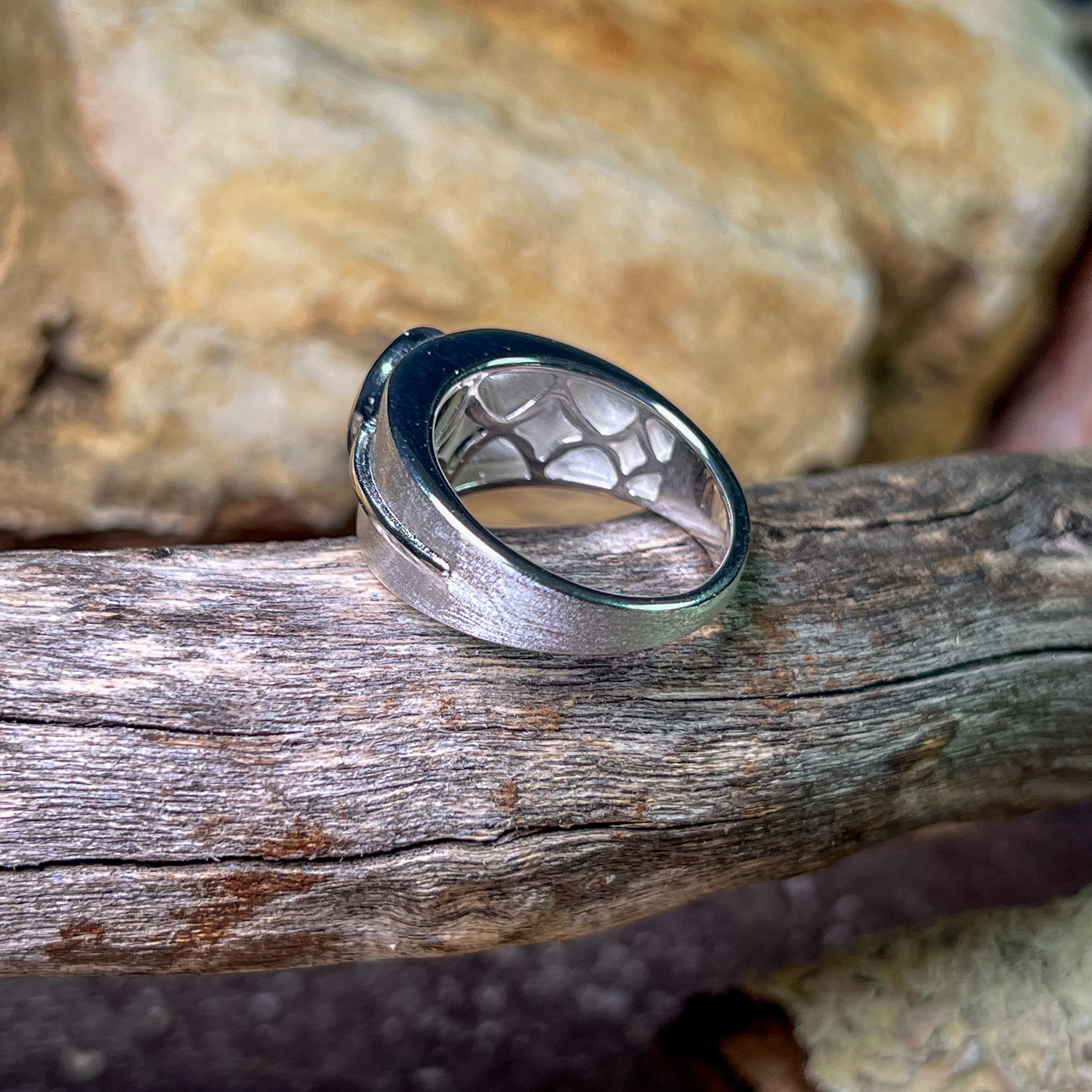 Upgrade your style with our Sterling Silver matte finish 10x8mm Opal triplet ring. This unique men's ring features a stunning opal triplet, adding a touch of sophistication to any outfit. Crafted with high-quality silver, this ring is the perfect addition to any jewelry collection.