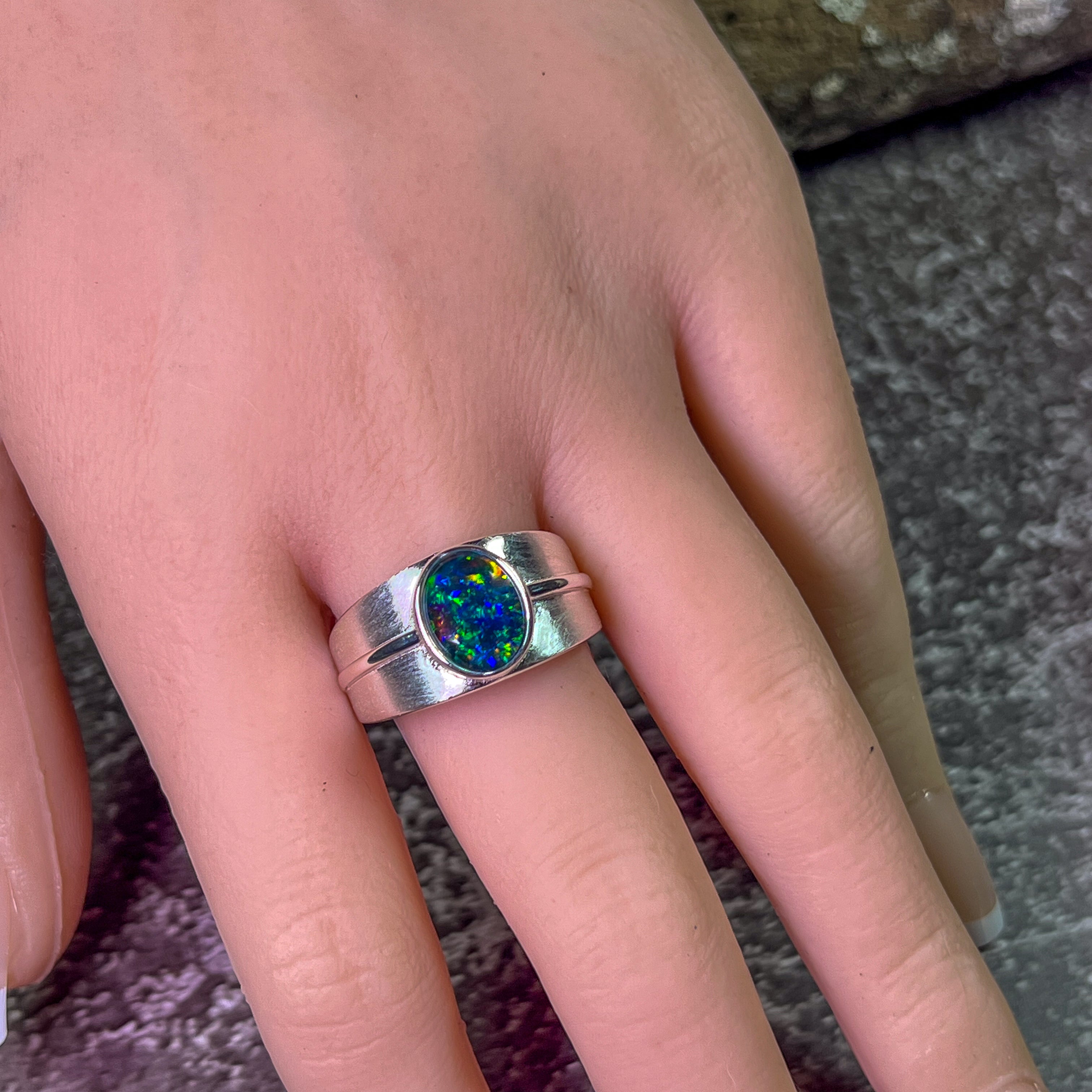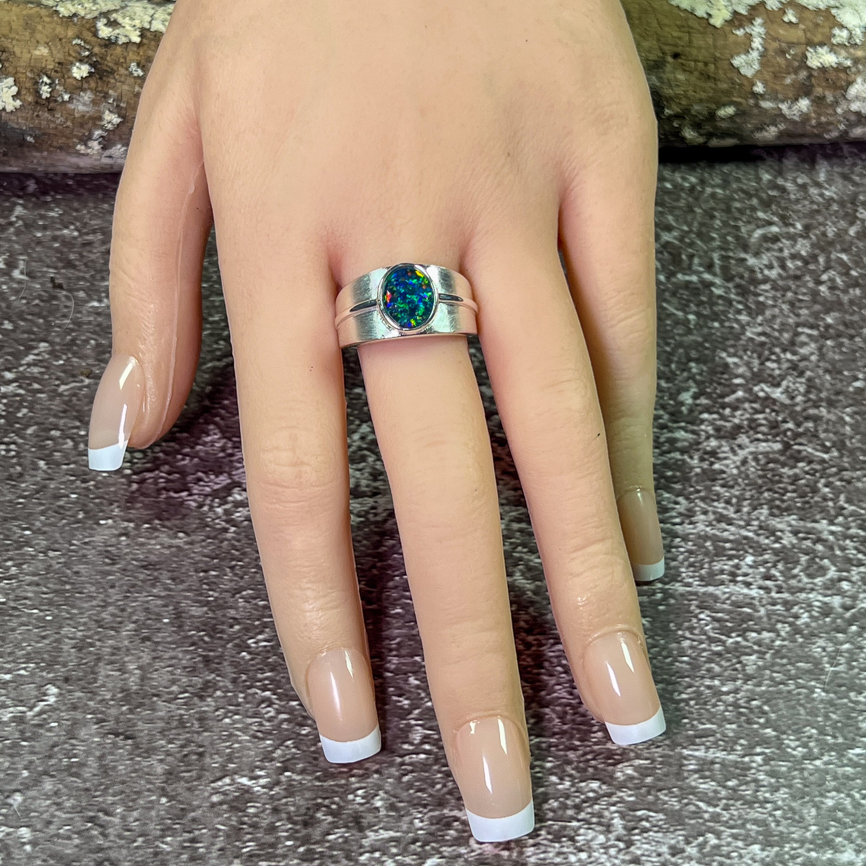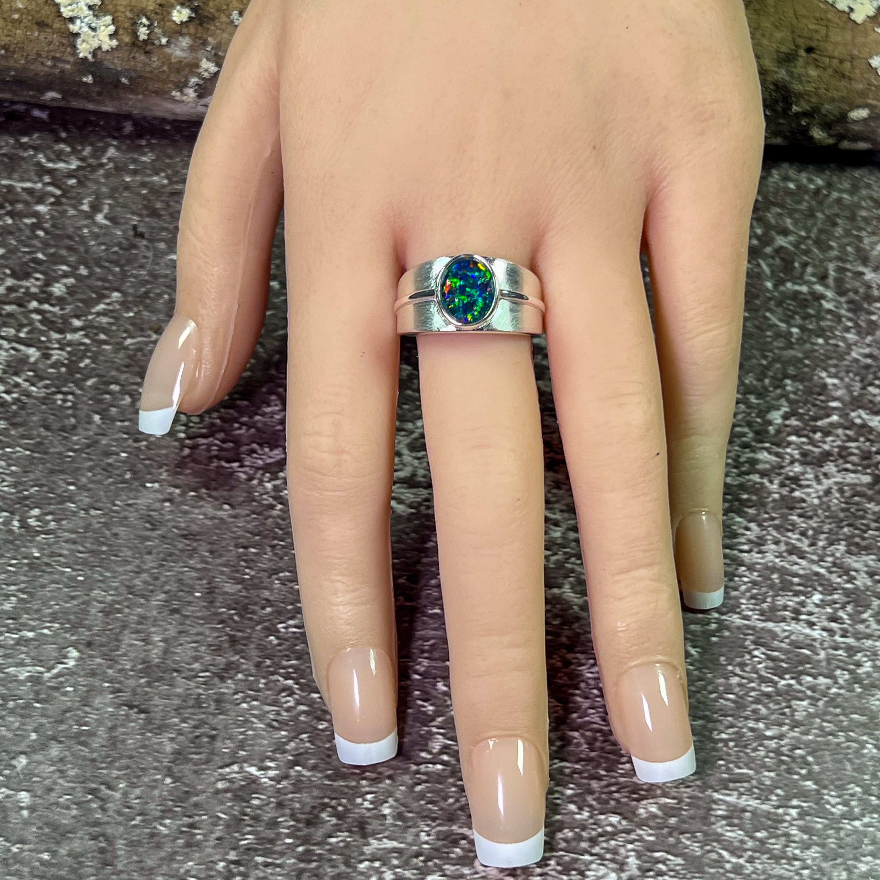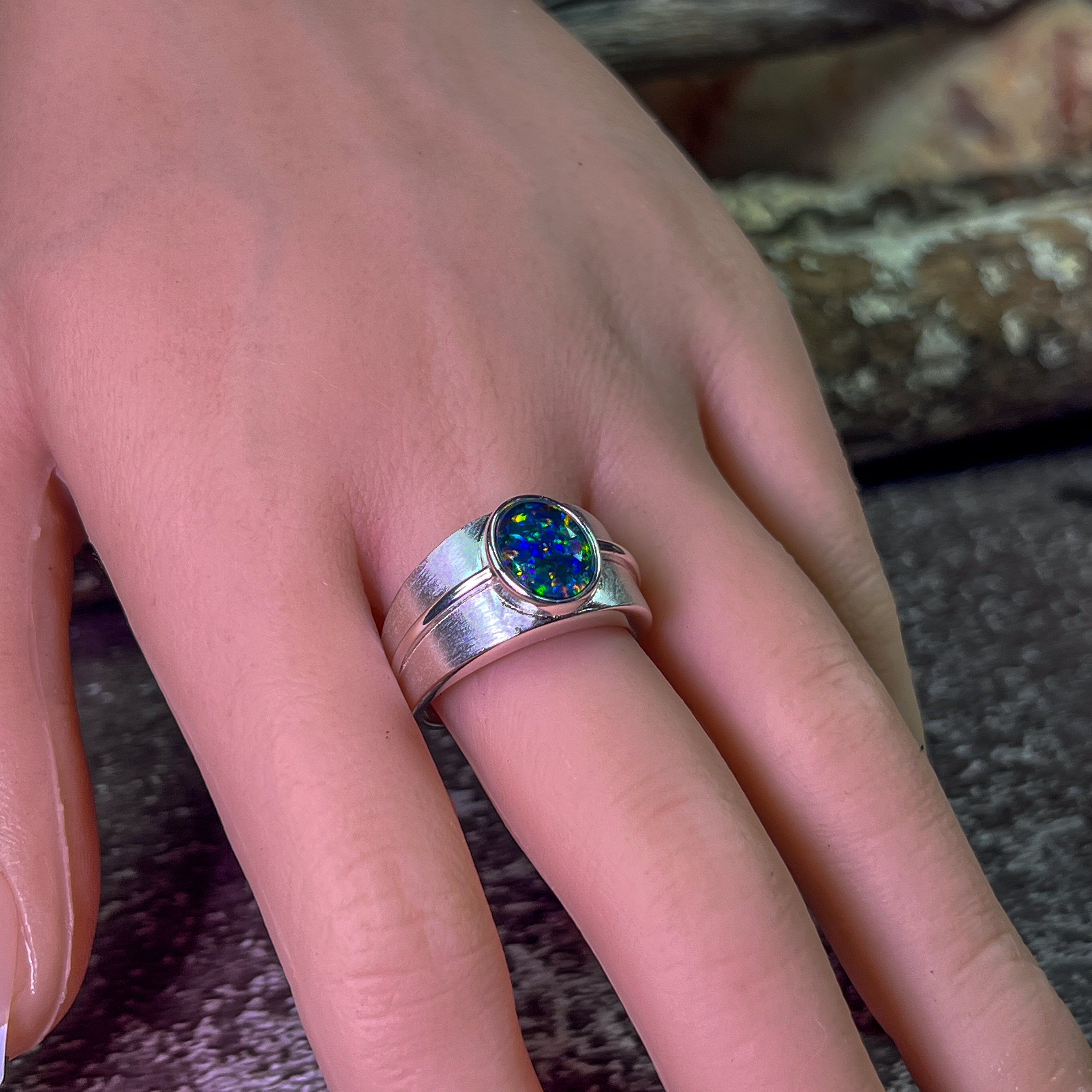 Sterling Silver matte finish 10x8mm Opal triplet ring