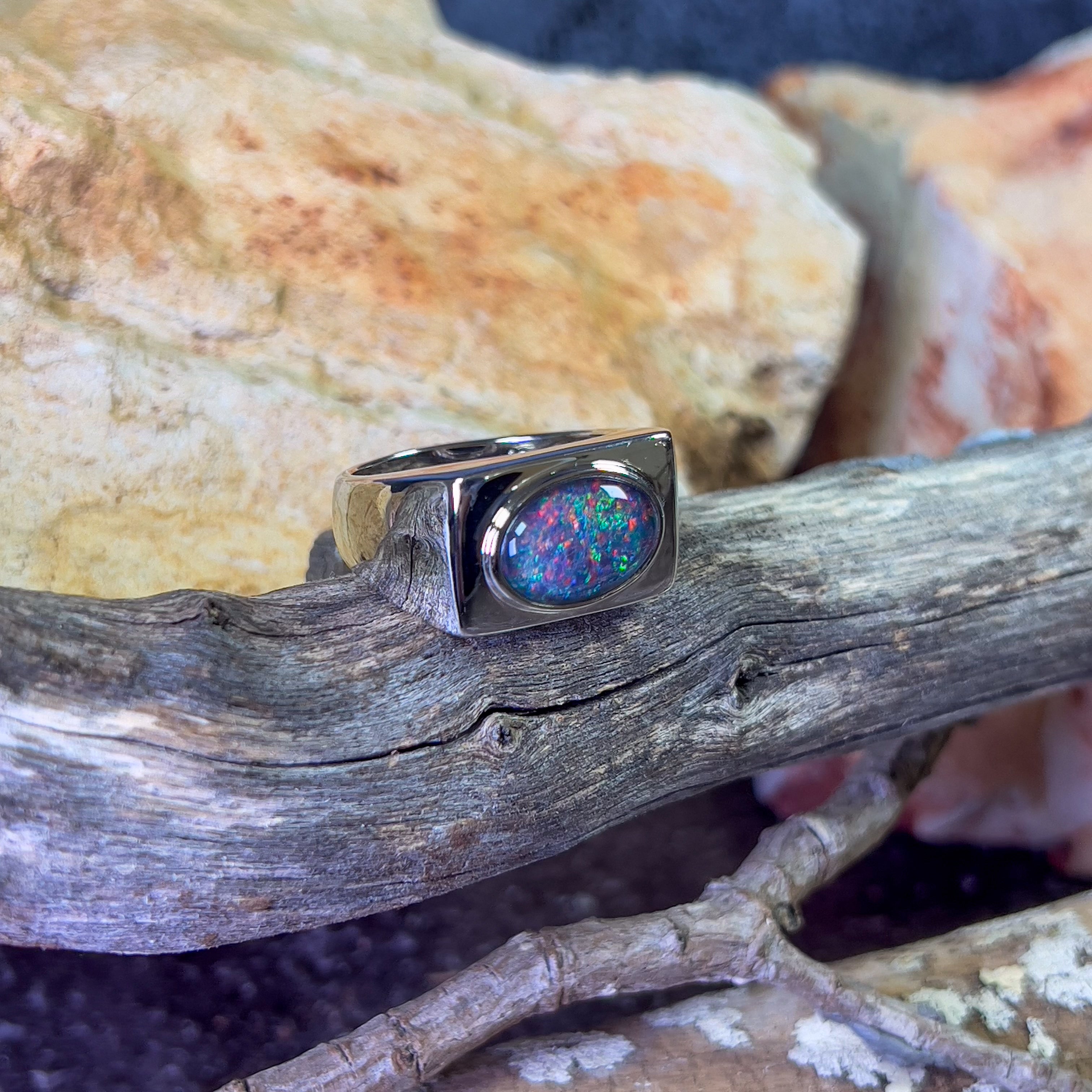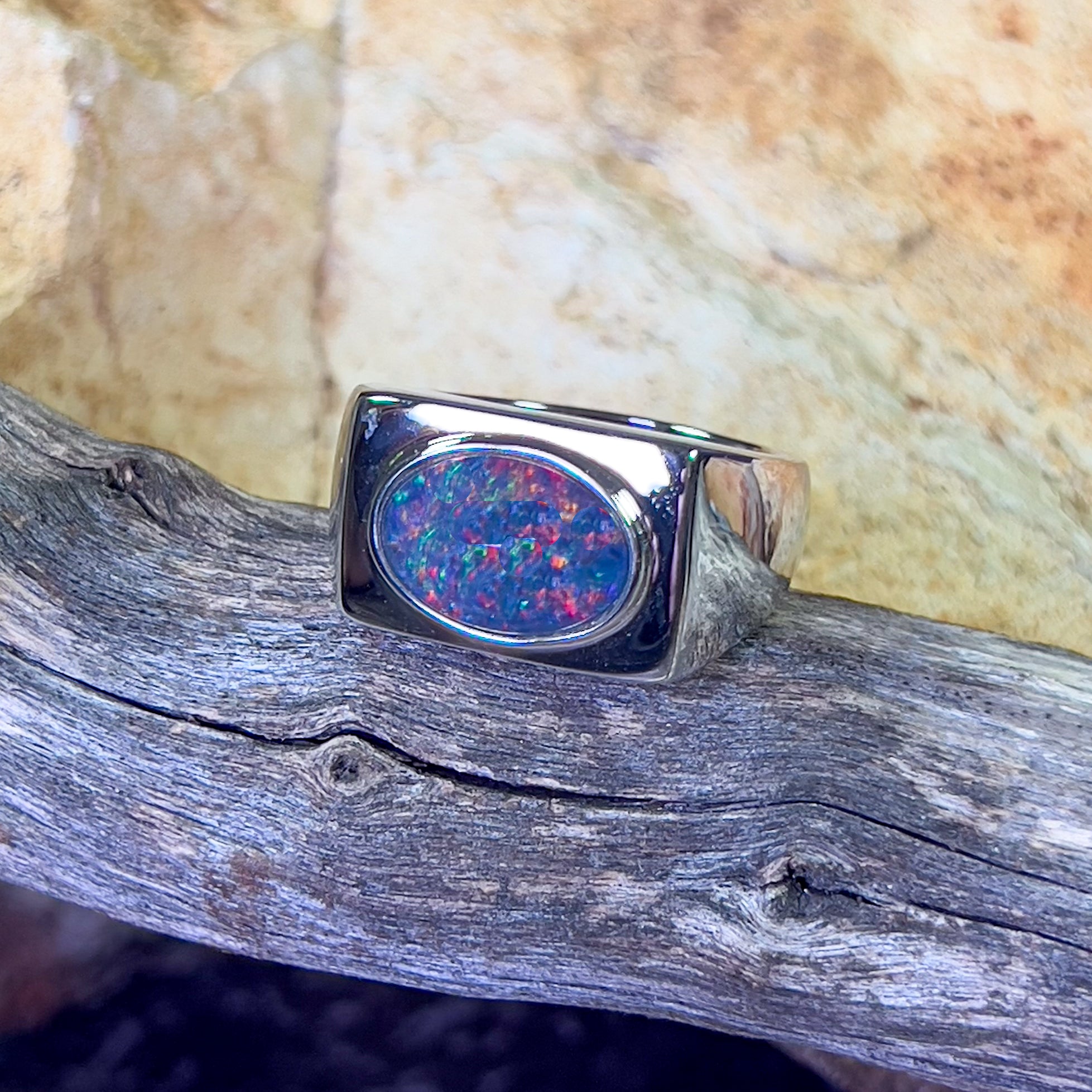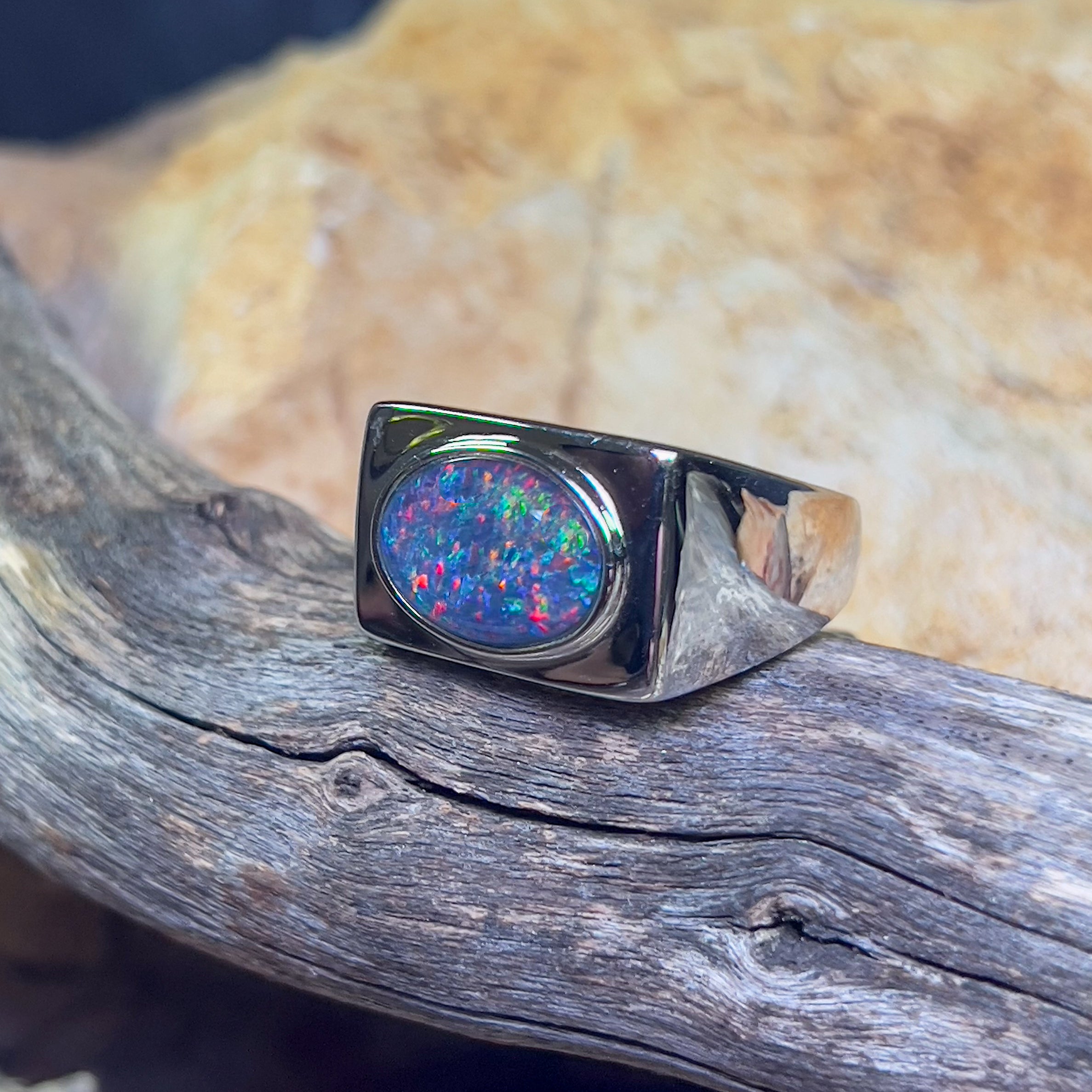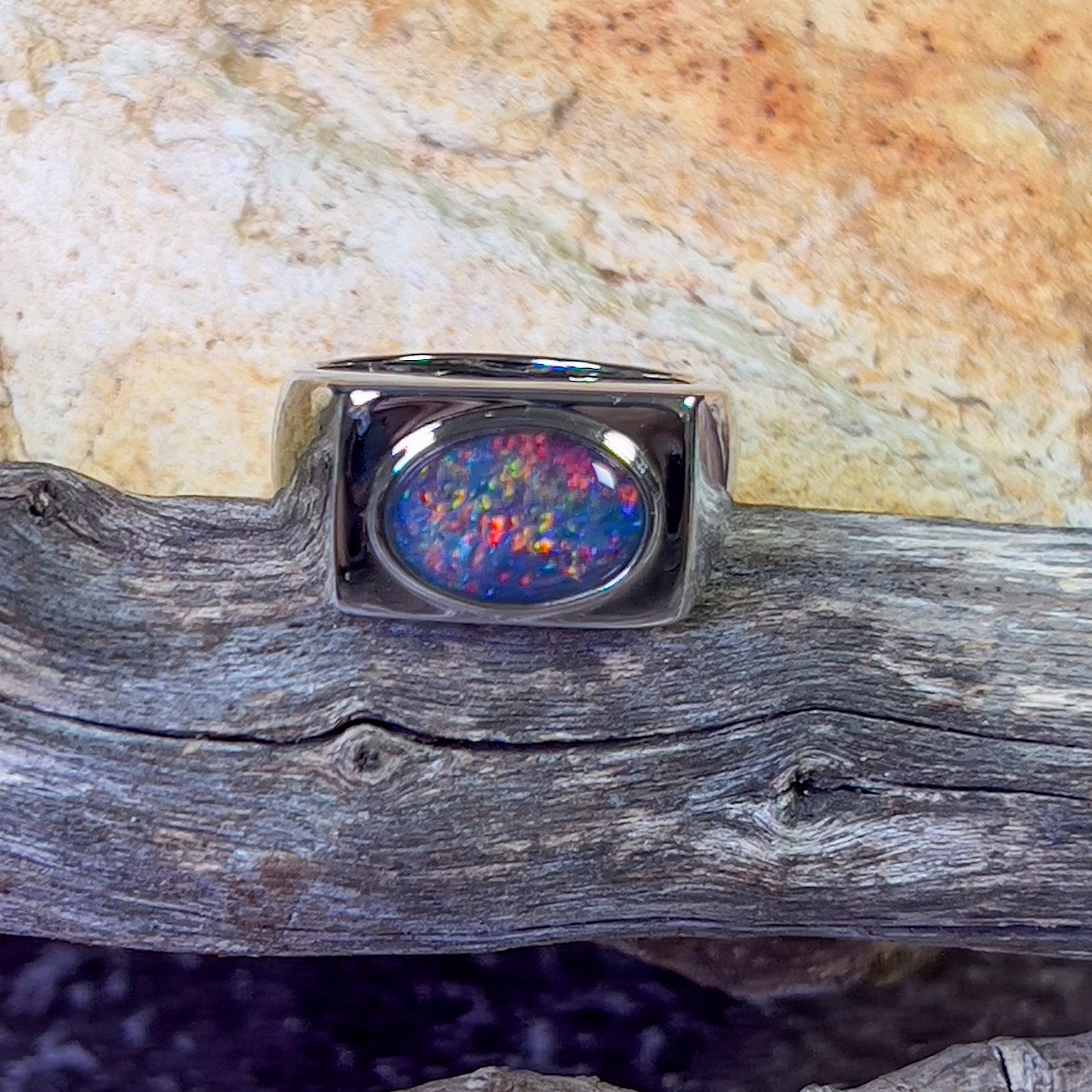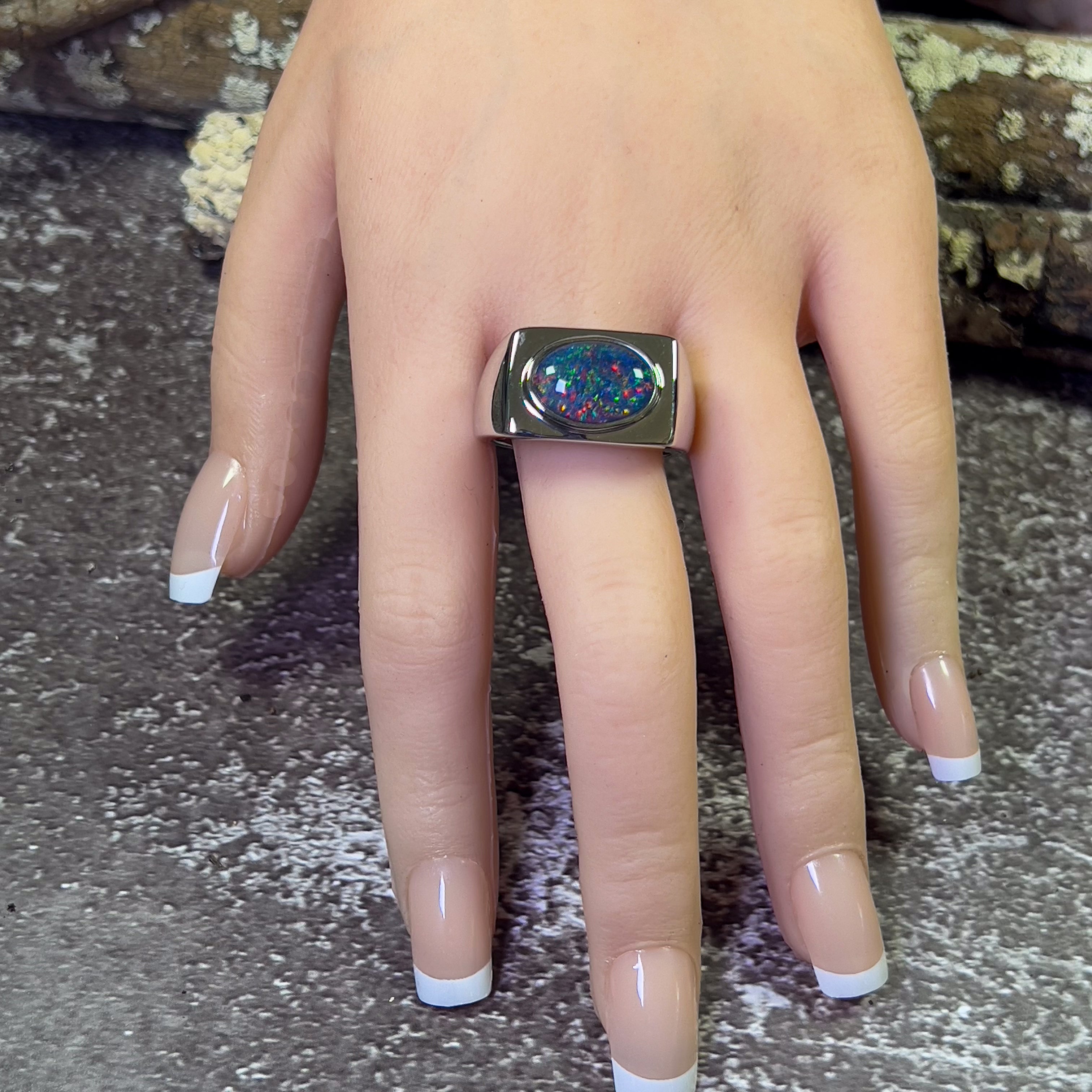 Sterling Silver mens rectangle Opal triplet 12x10mm ring