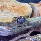 One Sterling Silver Opal ring rectangle bezel set shape