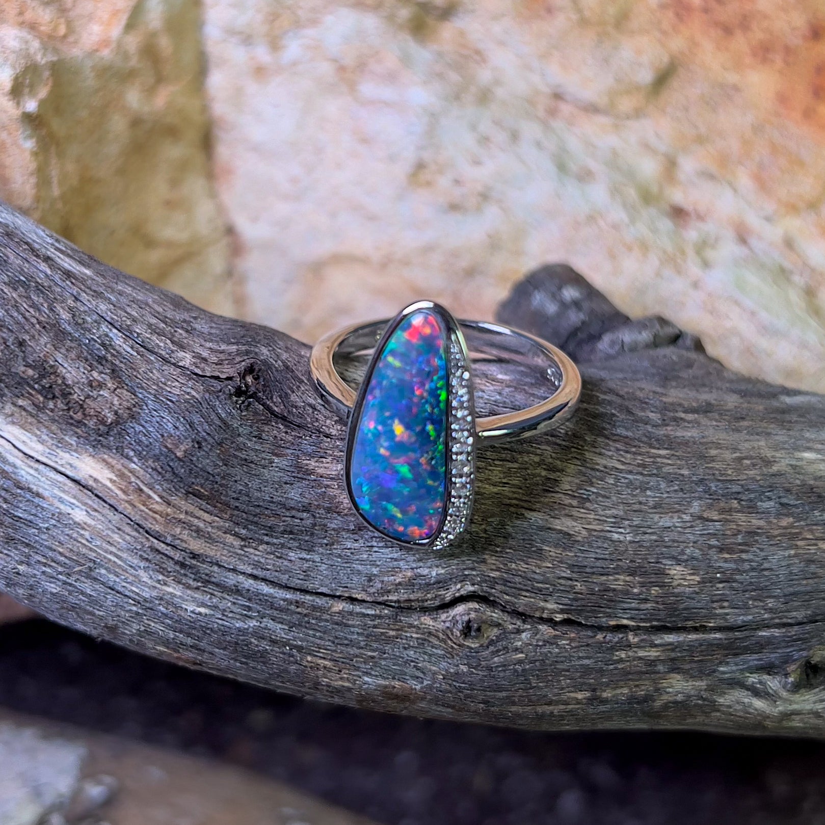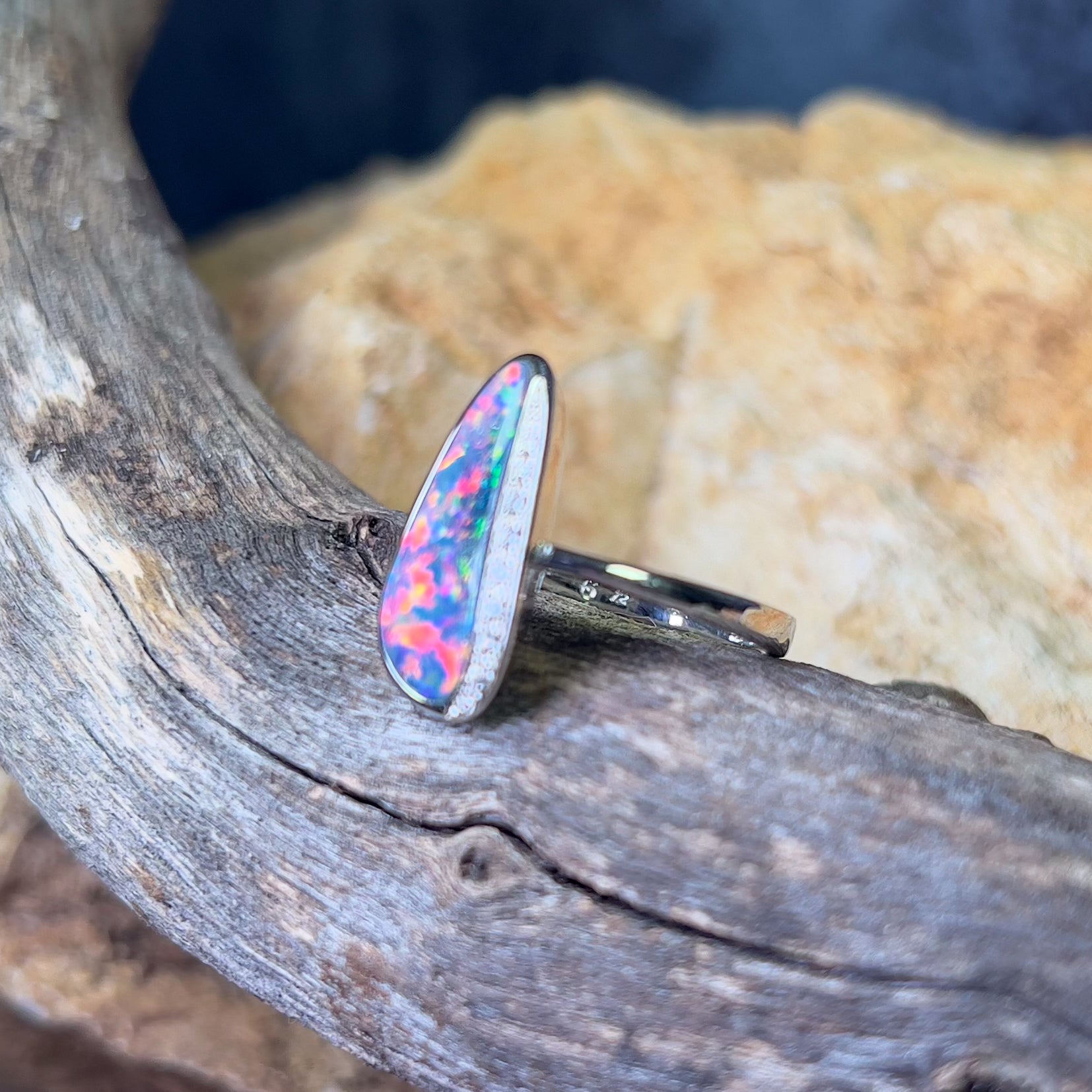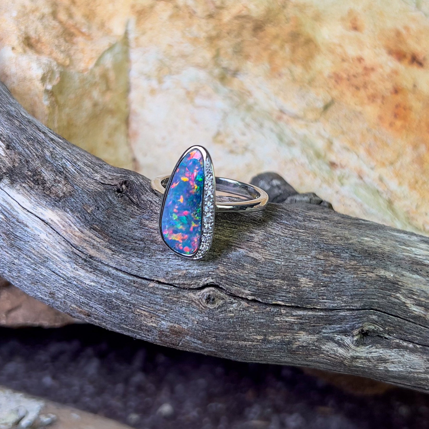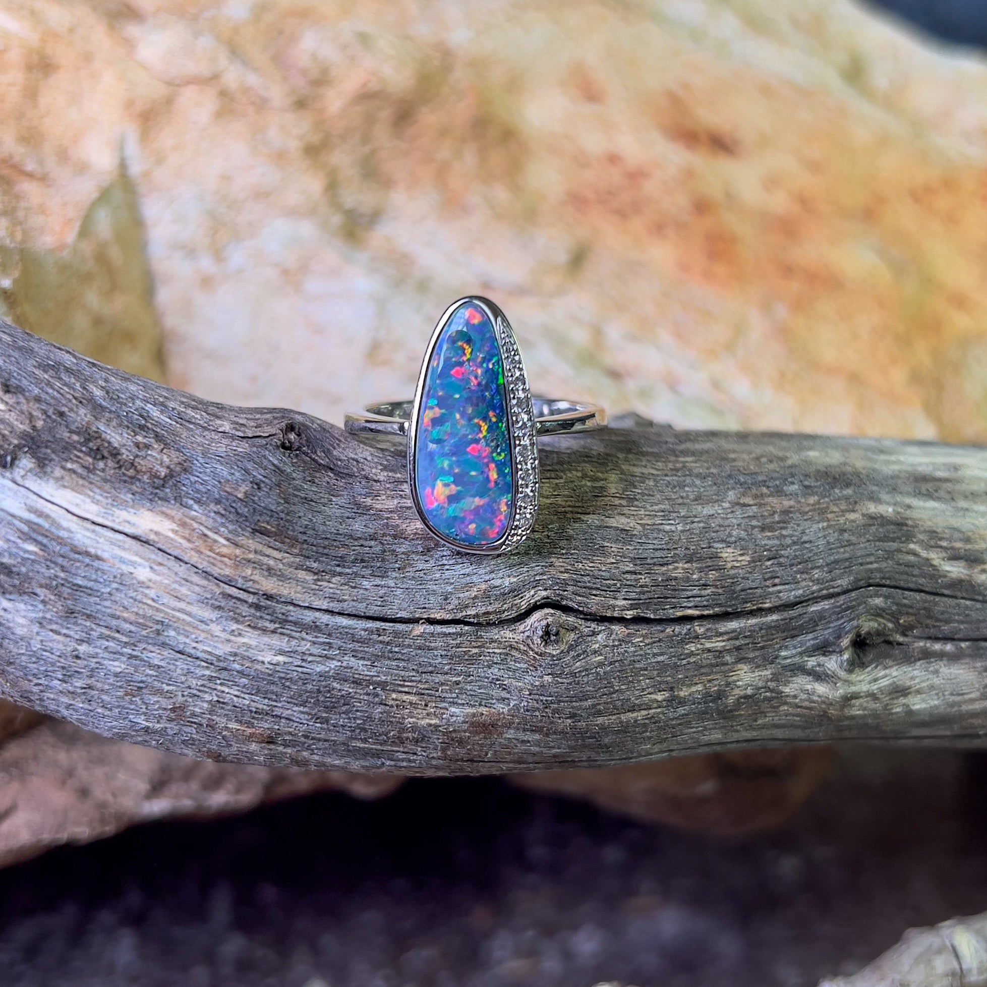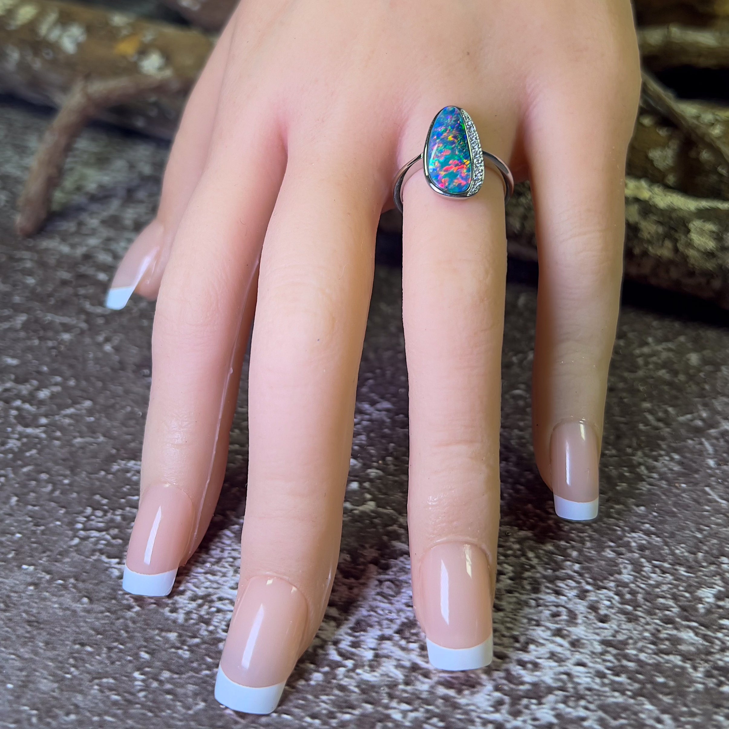 Sterling Silver Opal Fire Doublet and cubic zirconia ring