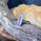 One Sterling Silver Opal ring bezel set Long Teardrop shape