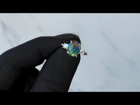 Sterling Silver Opal triplet 10x8mm and cubic zirconia trilogy ring