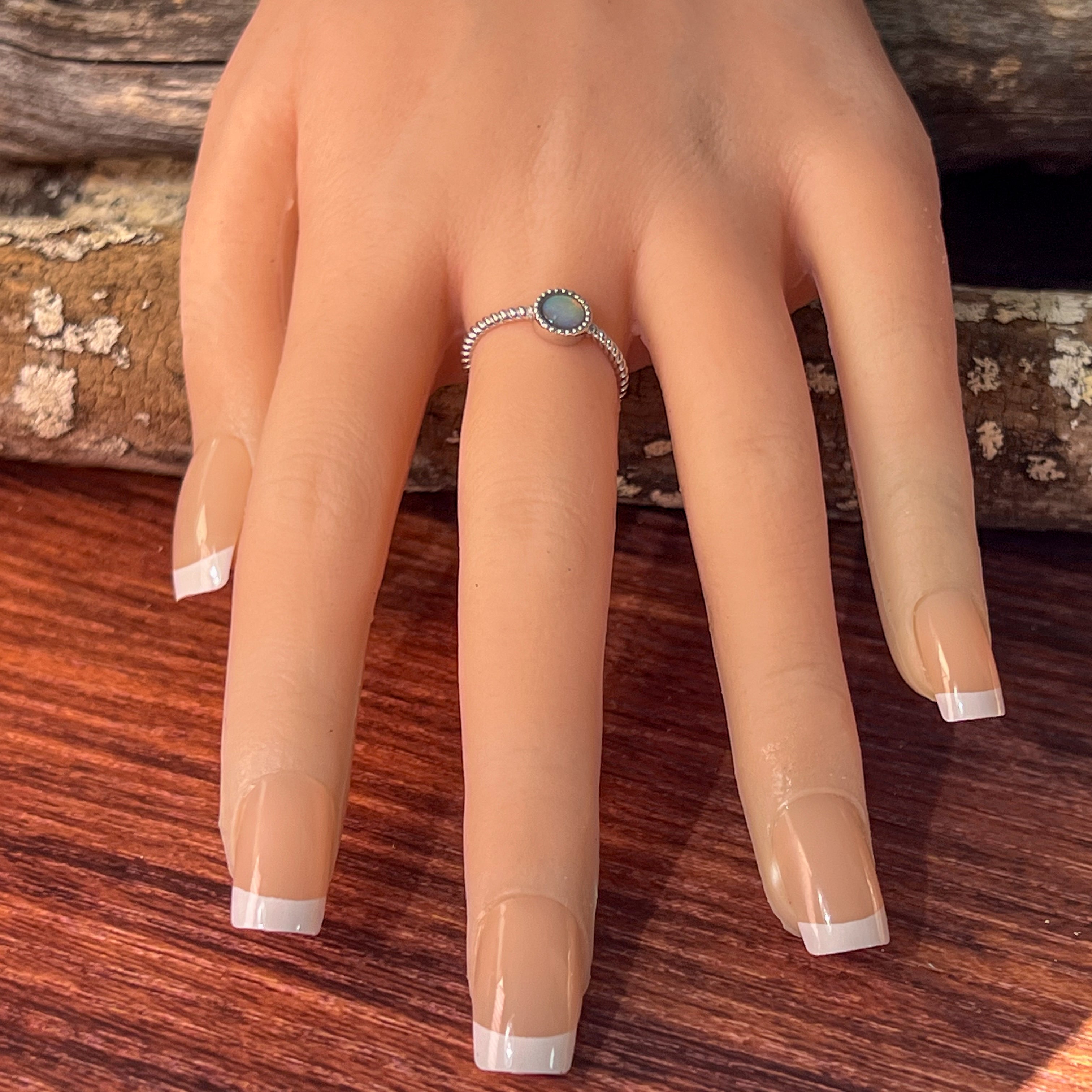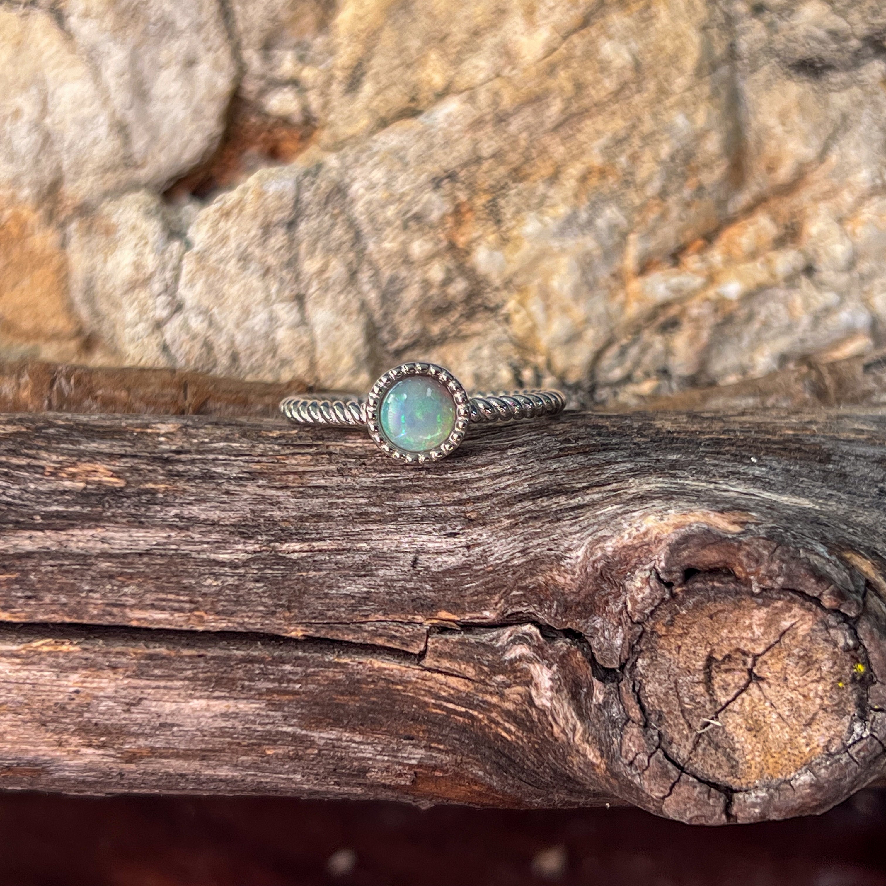 One Sterling Silver White Opal ring bezel straight rope band solitaire