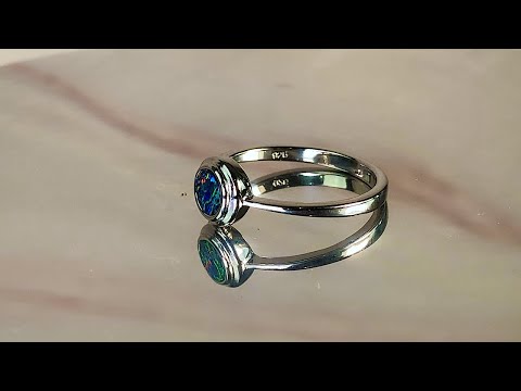 This Sterling Silver round Opal doublet bezel double tier ring is a dainty and elegant piece. The thin band features a stunning blue opal, creating a unique and eye-catching design. Made of high-quality silver, this ring will add a touch of sophistication to any outfit.