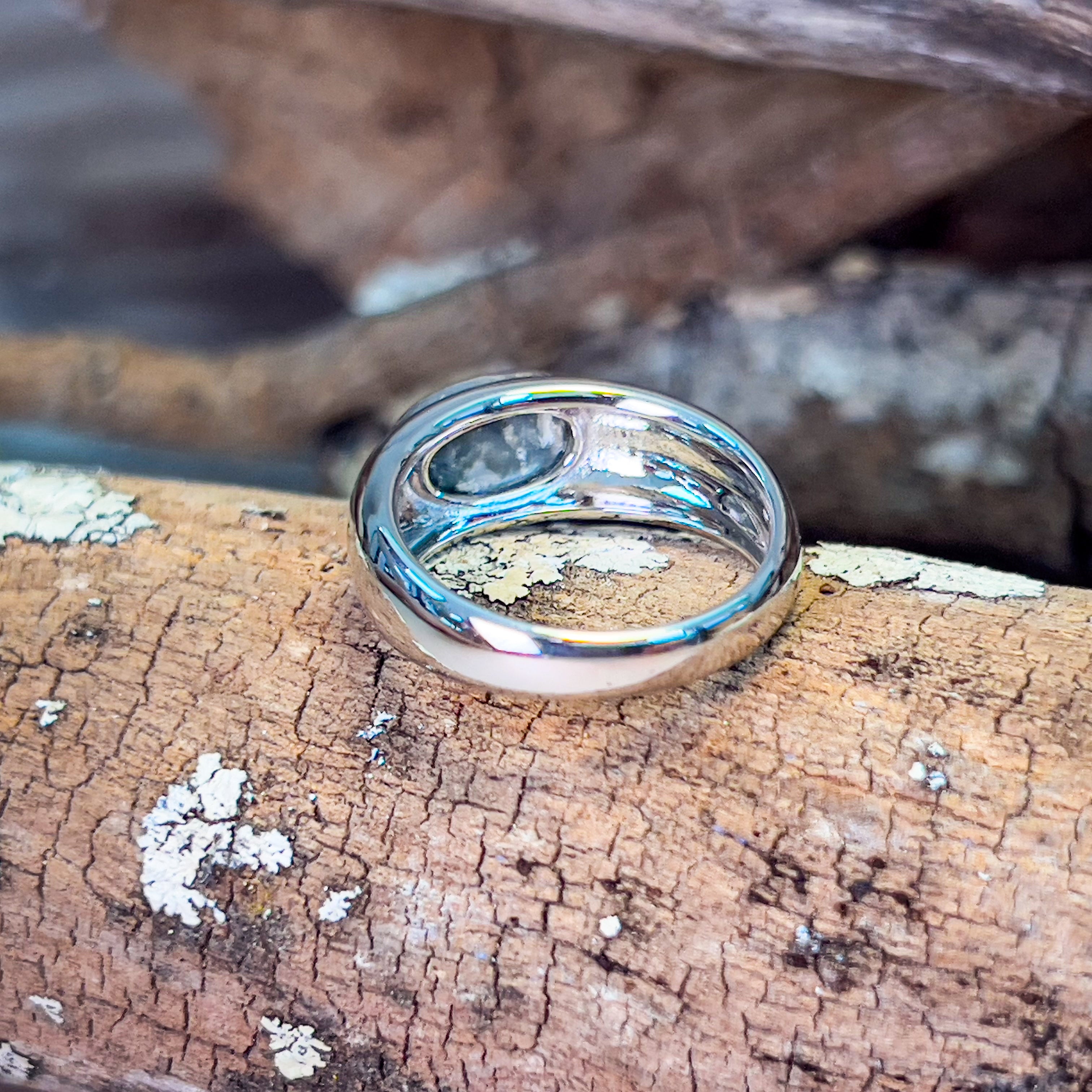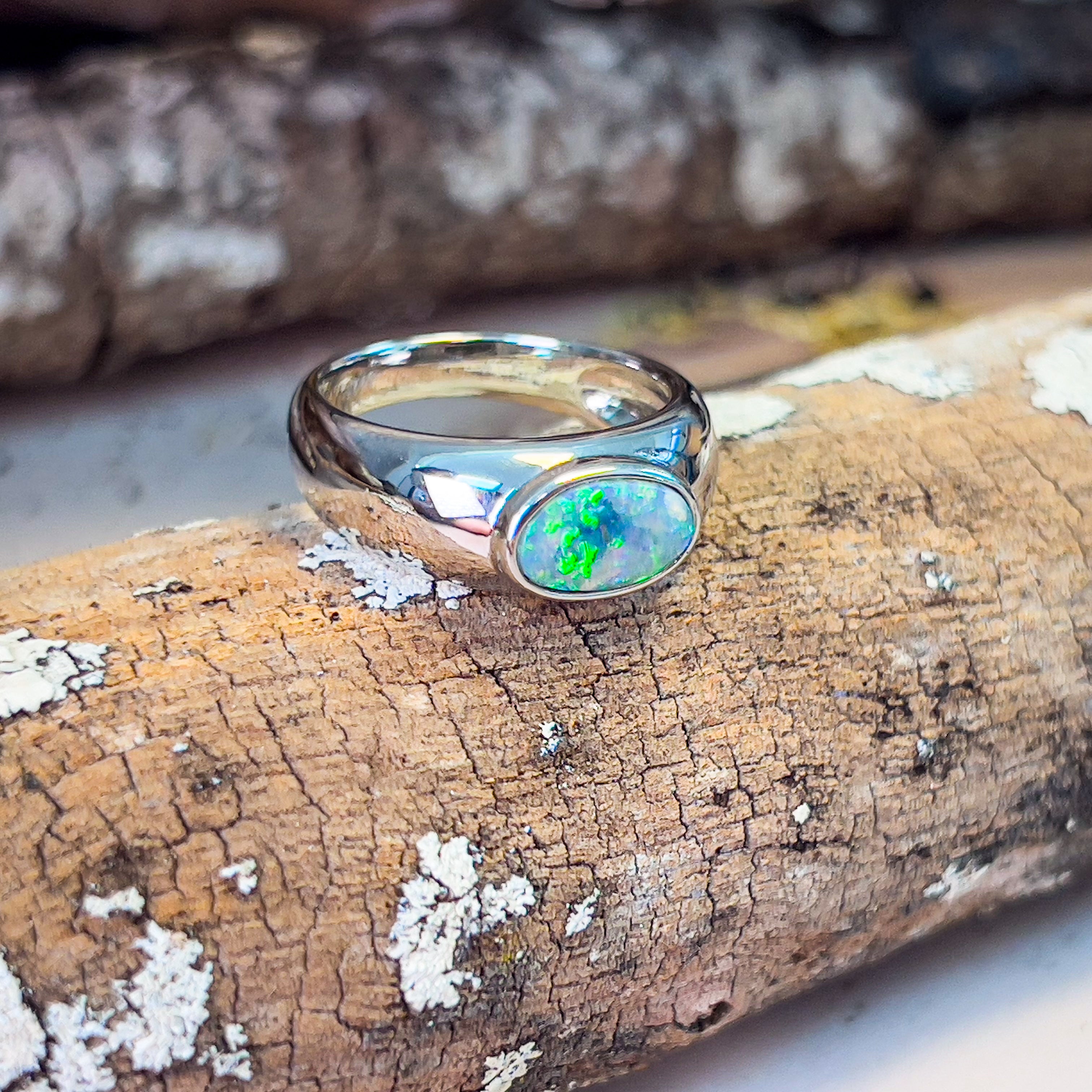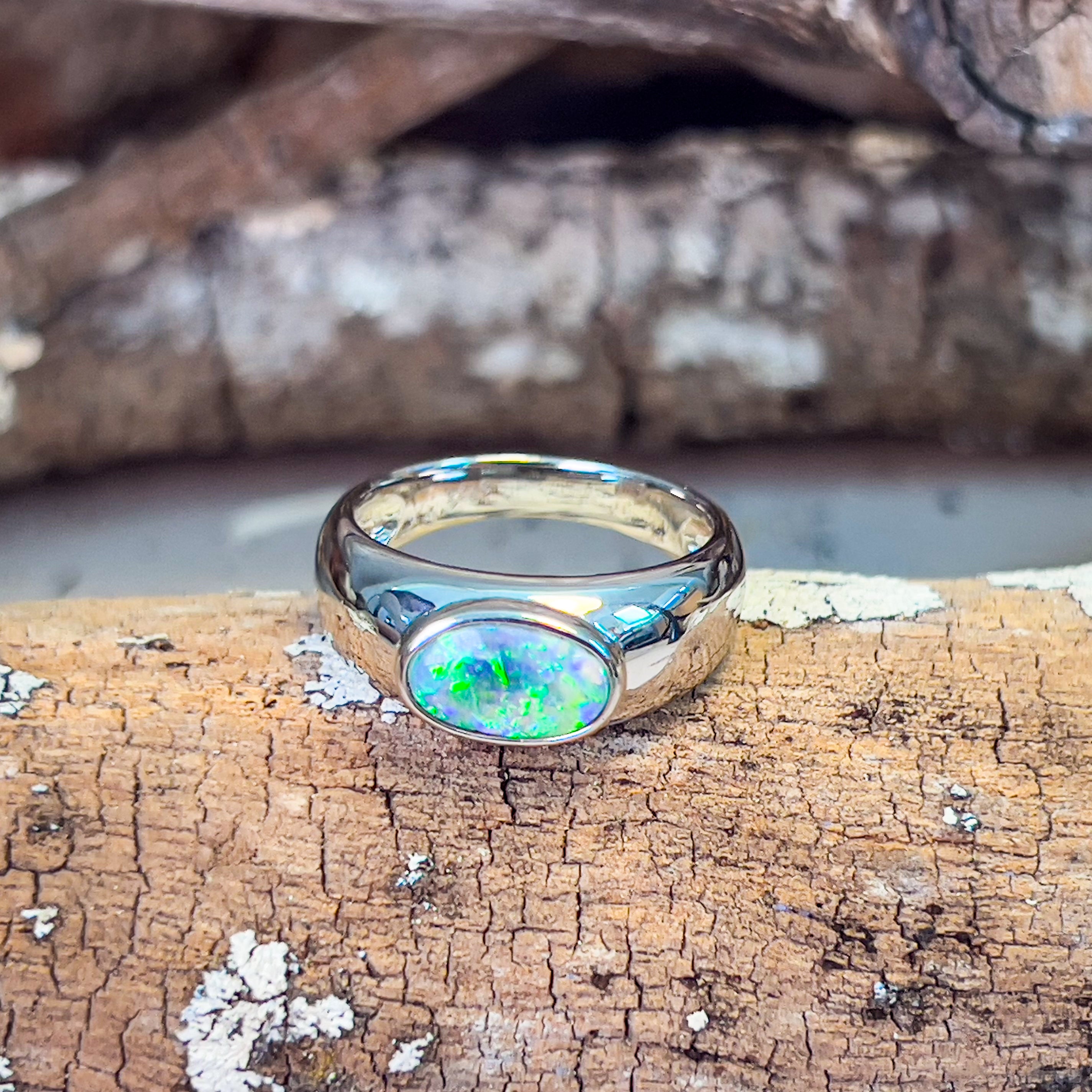 Indulge in luxury with our Sterling Silver Black Opal Signet Ring. This stunning 1.28ct black opal adds a touch of elegance to the classic signet style ring. Perfect as a promise ring for him, it exudes sophistication and exclusivity. Elevate your style with this opulent piece.