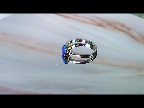 One Sterling Silver claw set ring with one Australian Black Opal Blue colour
