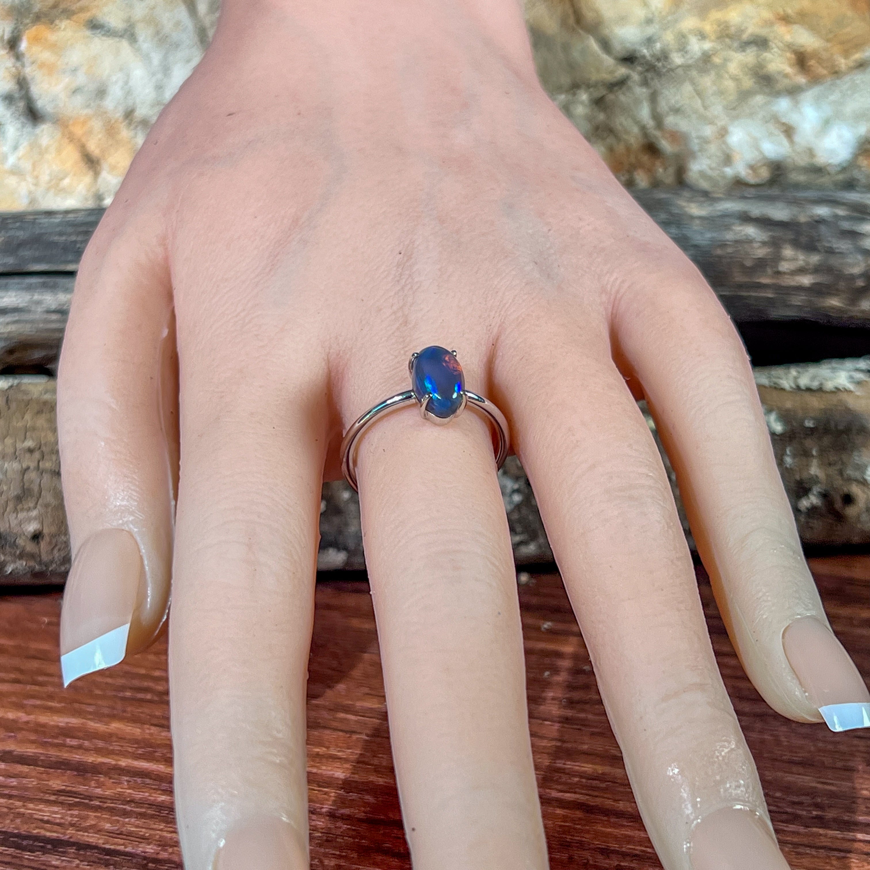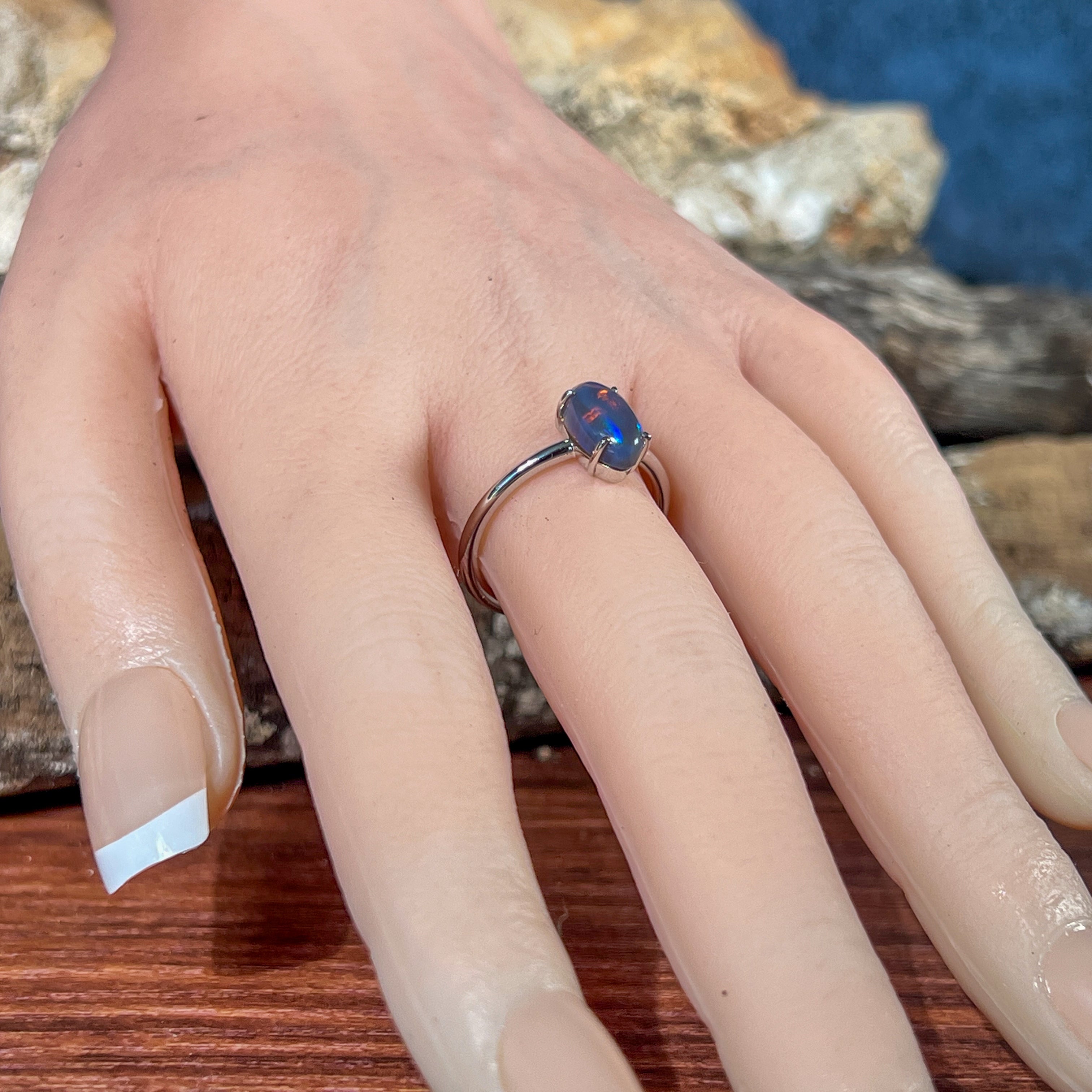 Experience timeless elegance with this Sterling Silver Solitaire Black Opal Oval 2.02ct ring. The captivating black opal centerpiece showcases vivid flashes of color, creating a unique and striking appeal. Crafted in sterling silver, this classic engagement ring combines durability with sophistication, symbolizing enduring love. Its sleek solitaire design puts the spotlight on the opal’s natural beauty, perfect for making a memorable commitment. Ideal for those seeking a distinctive yet timeless expression of devotion.