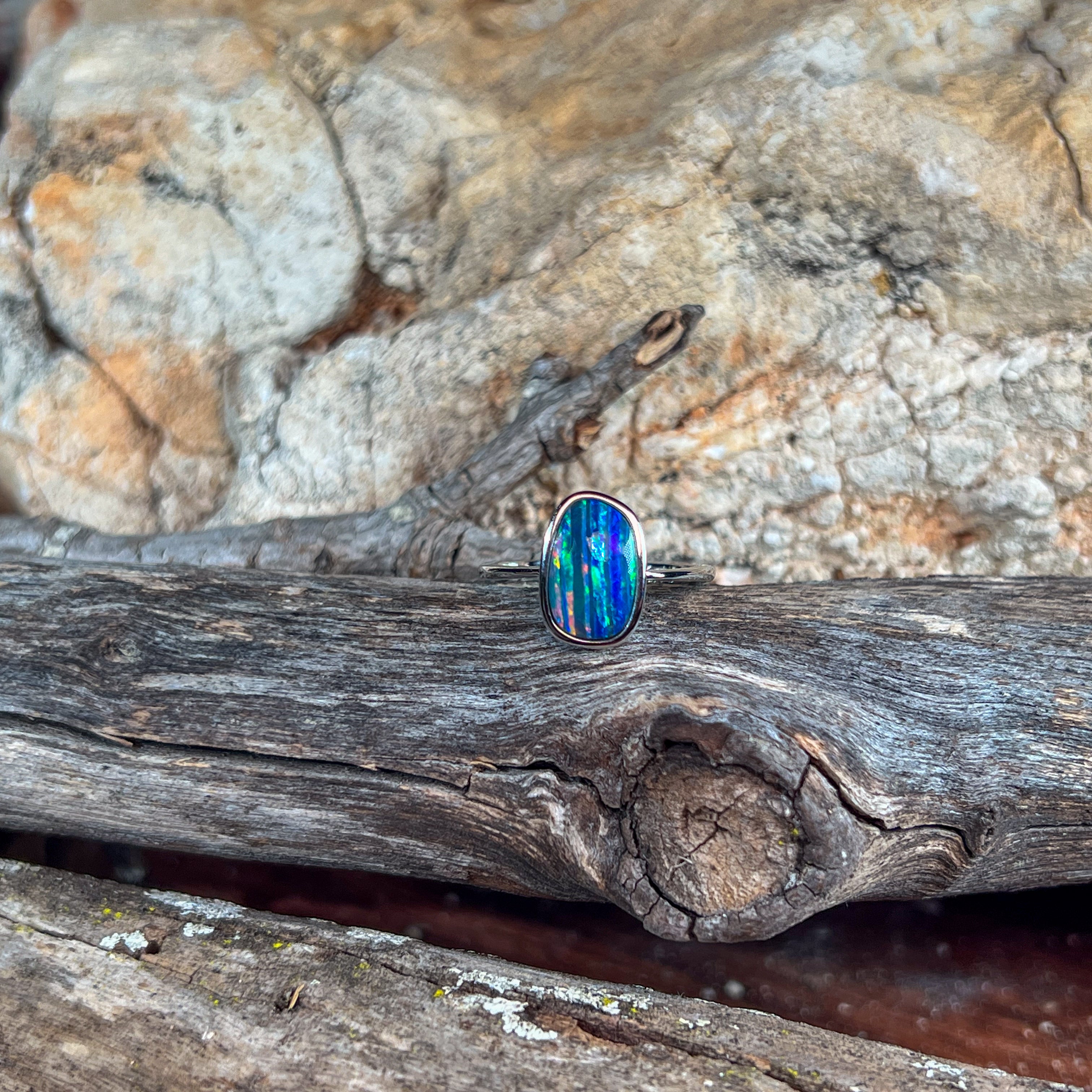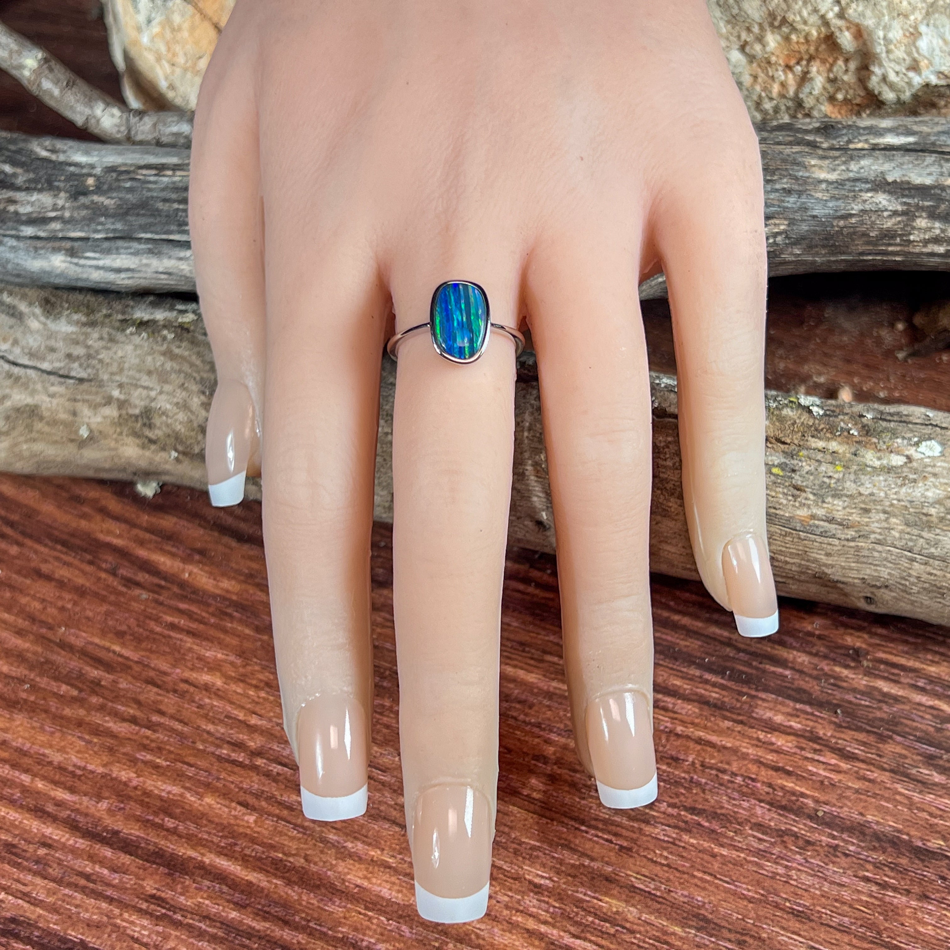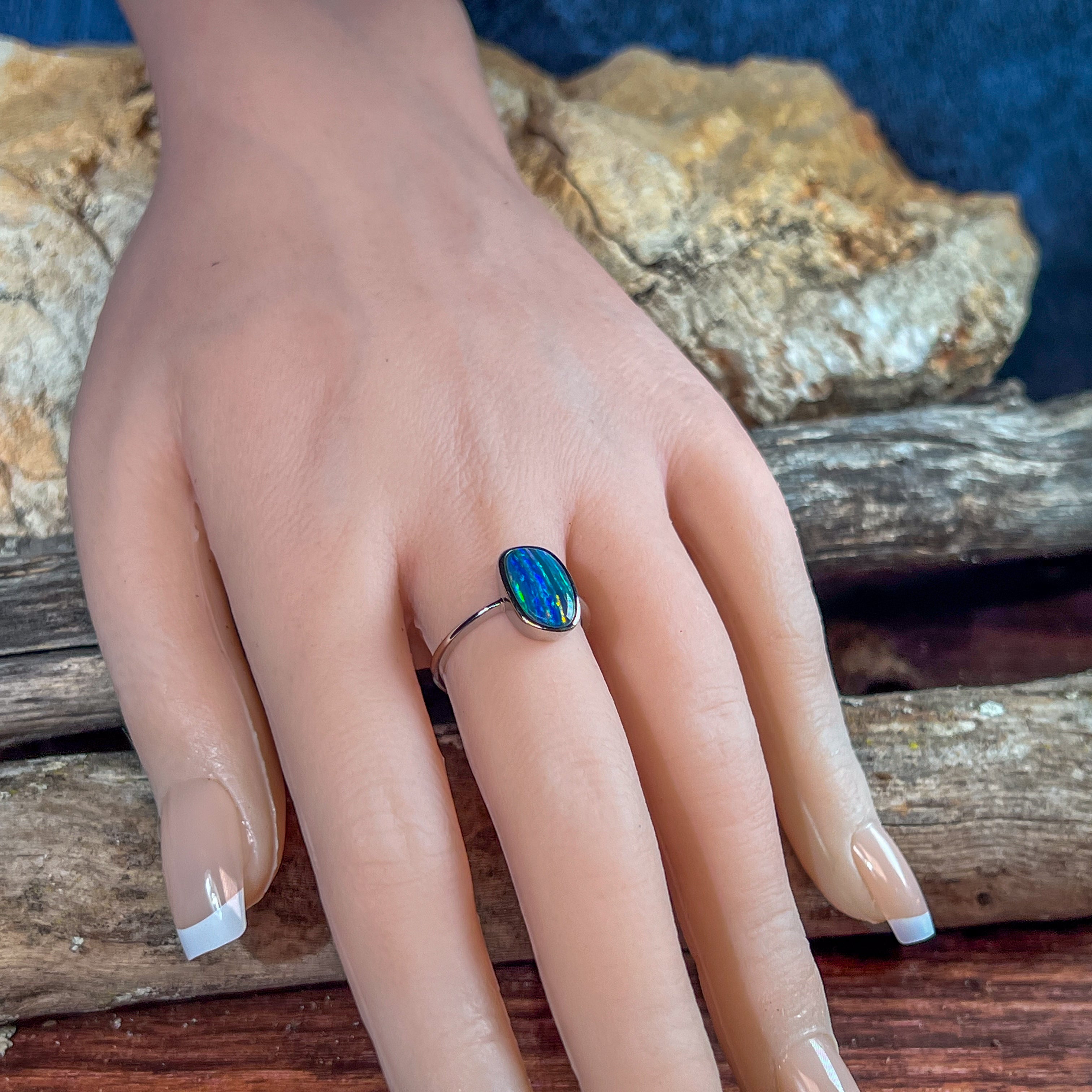 Sterling Silver Solitaire Opal doublet 12x7mm ring