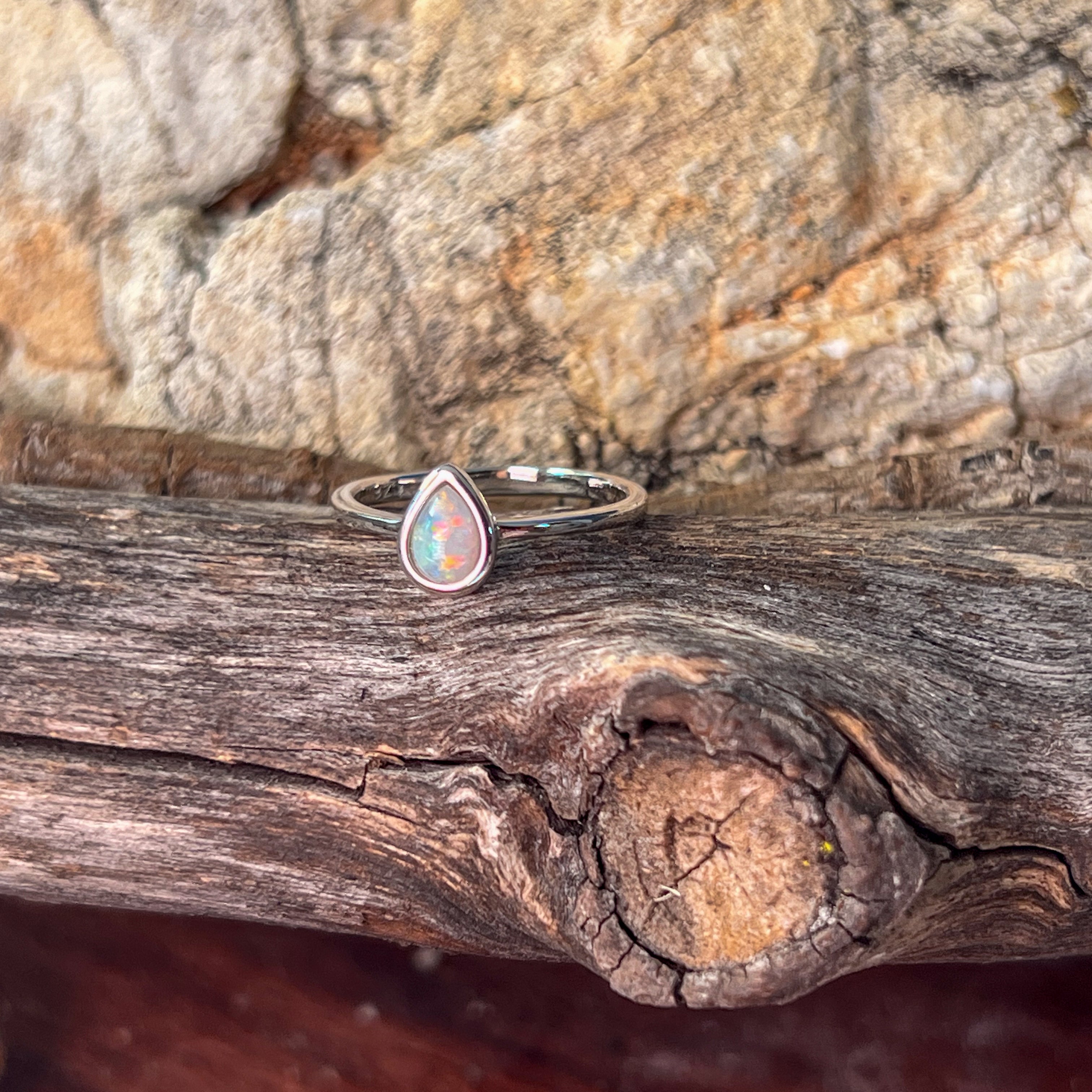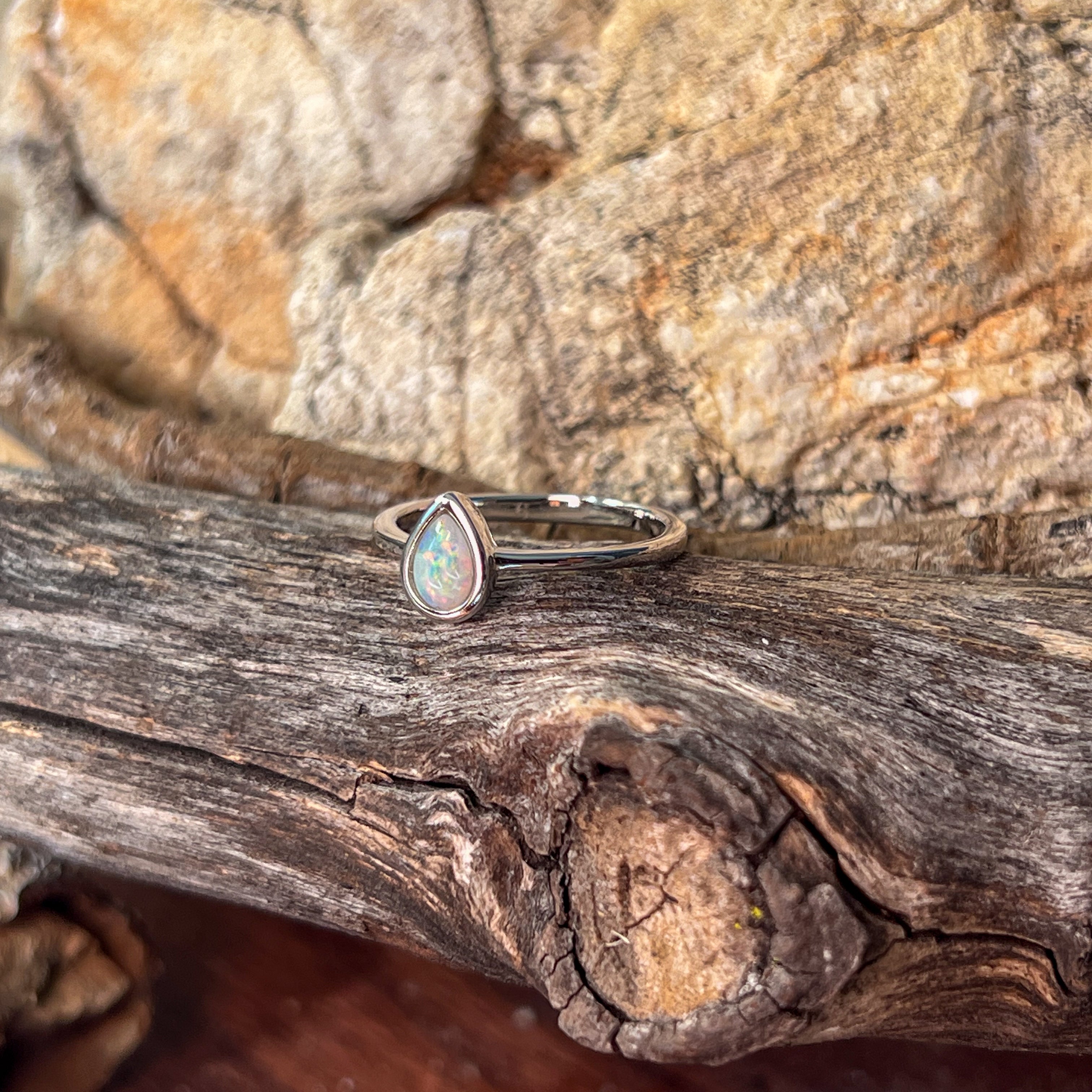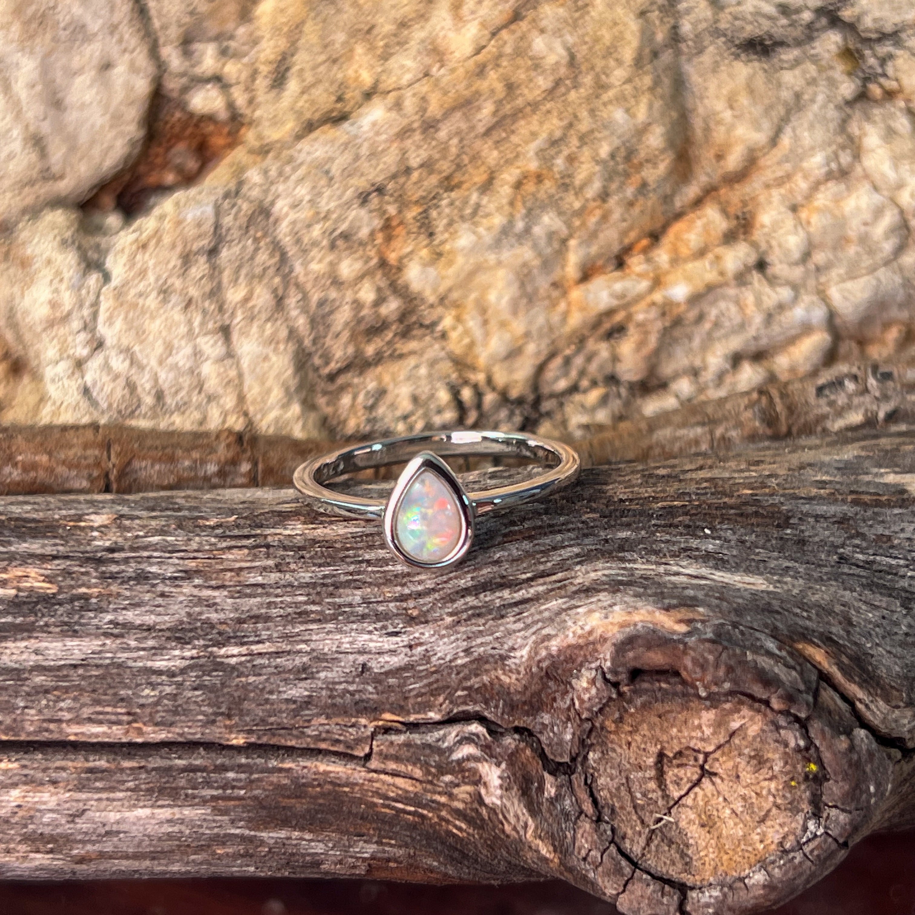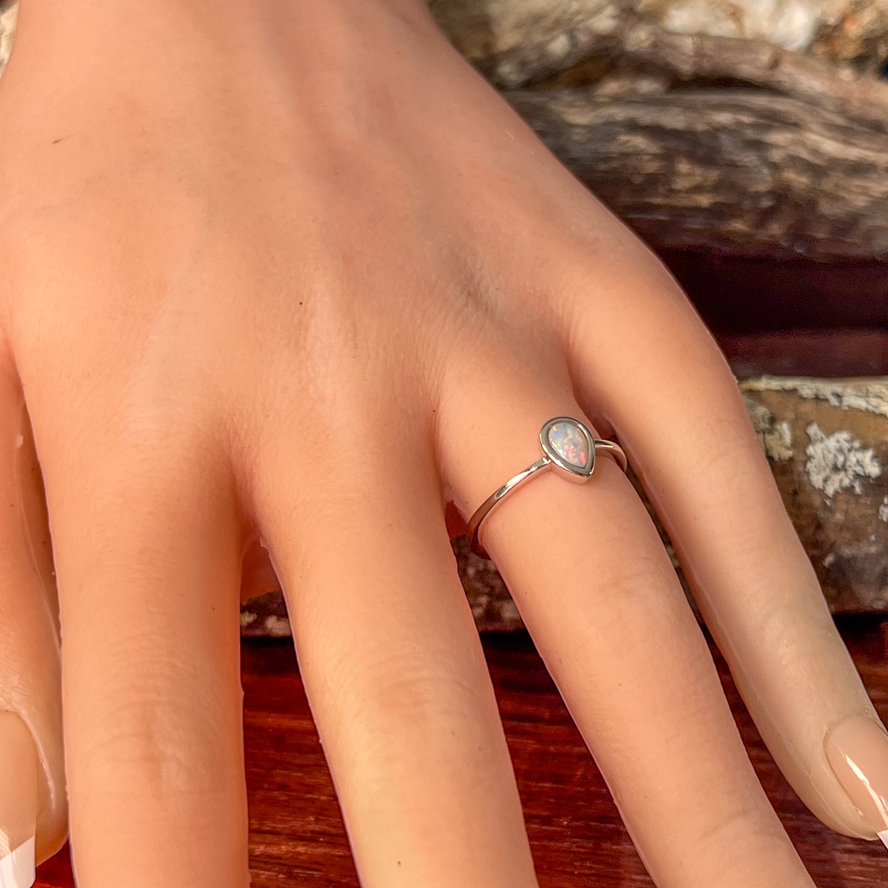 Add a splash of whimsy to your collection with this sterling silver solitaire pear-shaped opal ring. Its shimmering opal centerpiece catches the light with every move, making it the perfect playful touch for any outfit. Classic yet fun, this ring brings a joyful sparkle to your day.