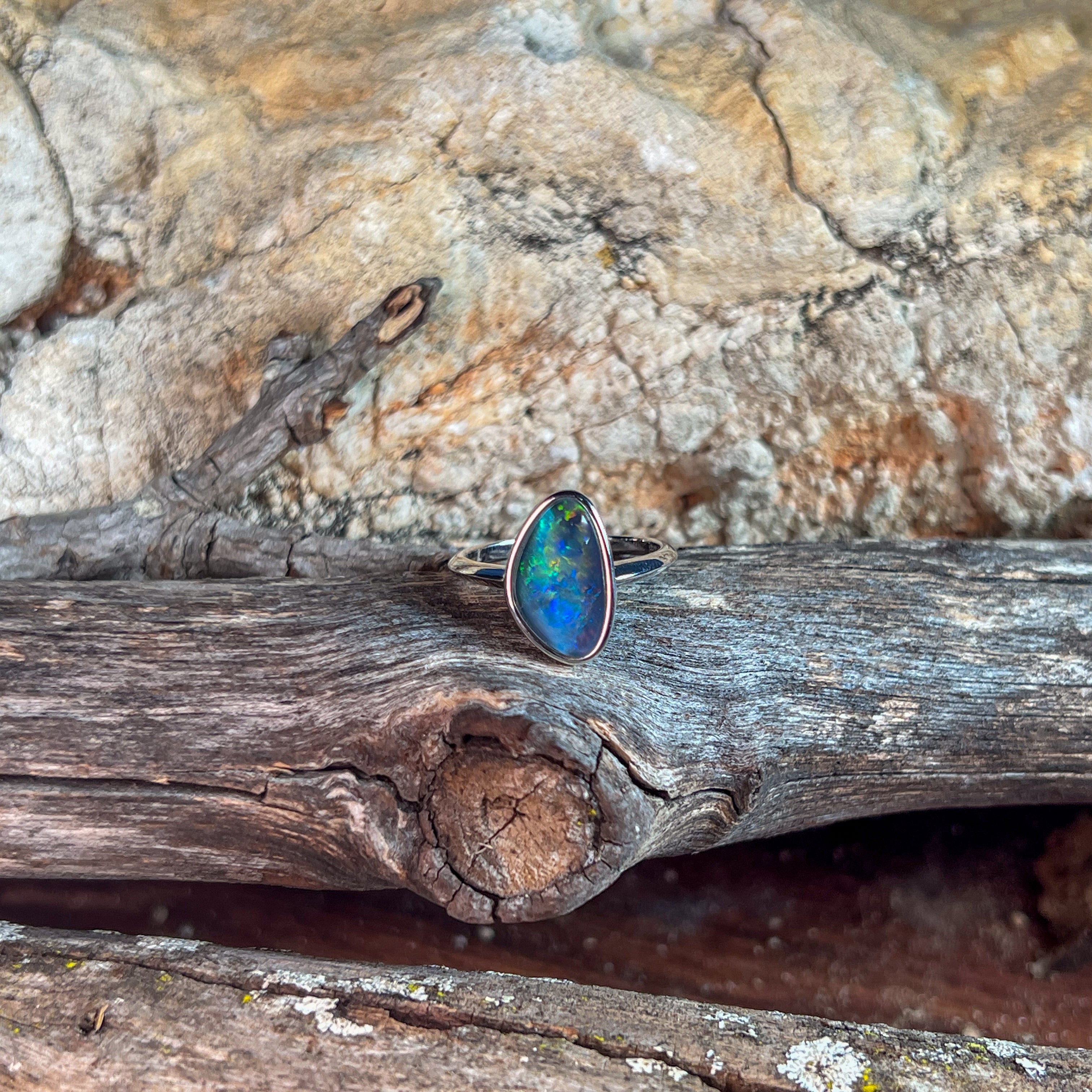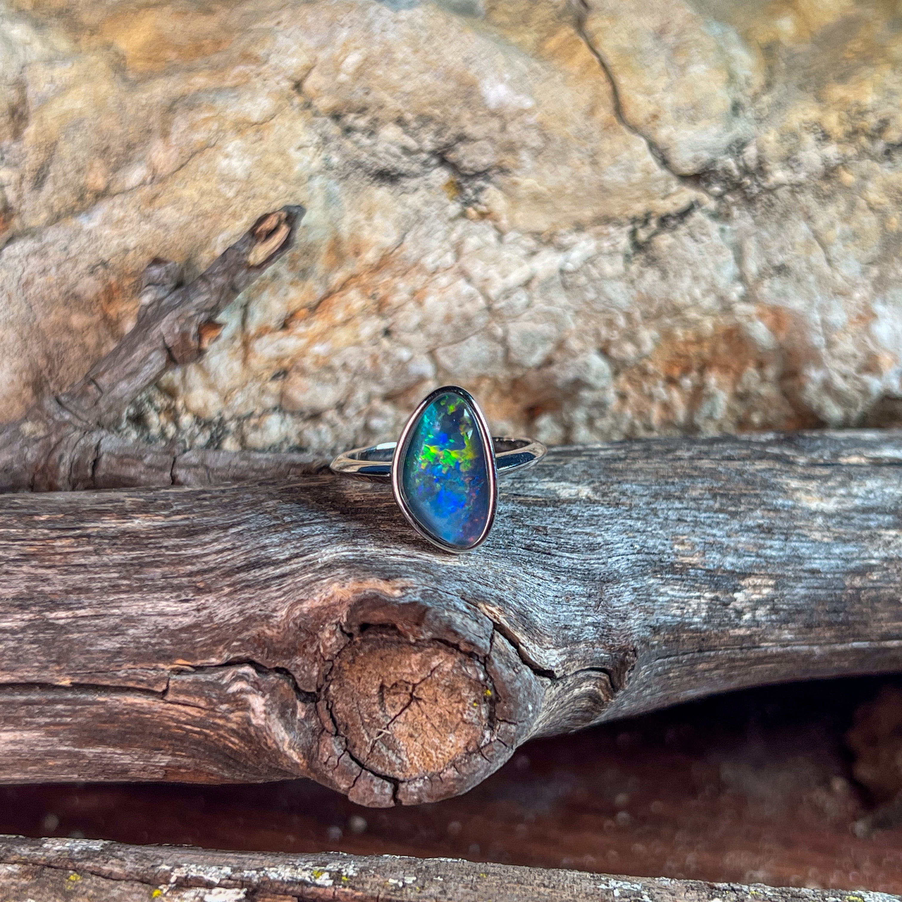 Sterling Silver Solitaire Triplet Opal bezel set ring