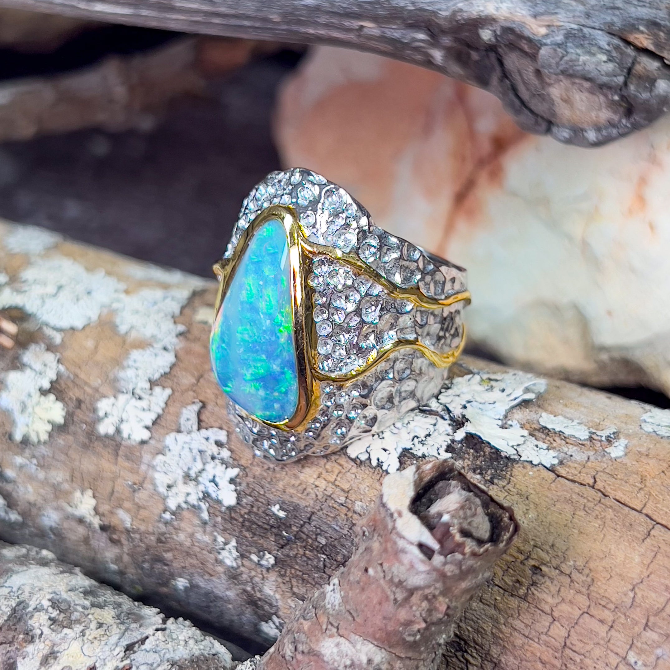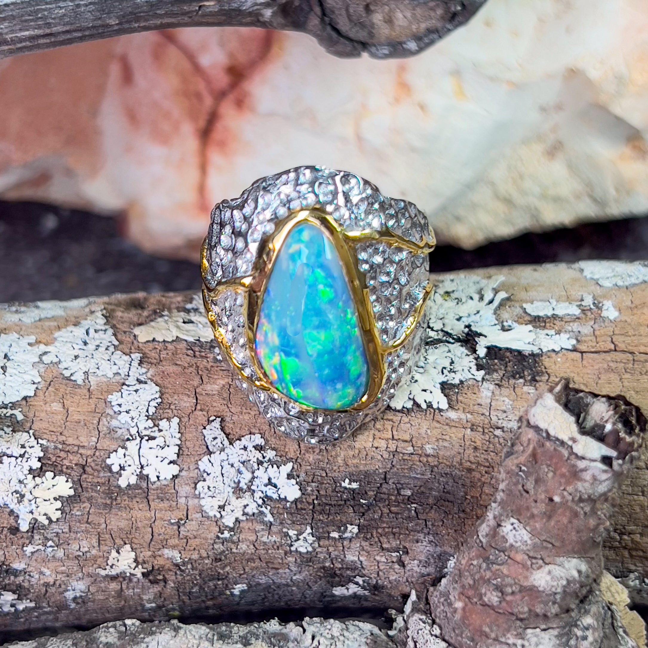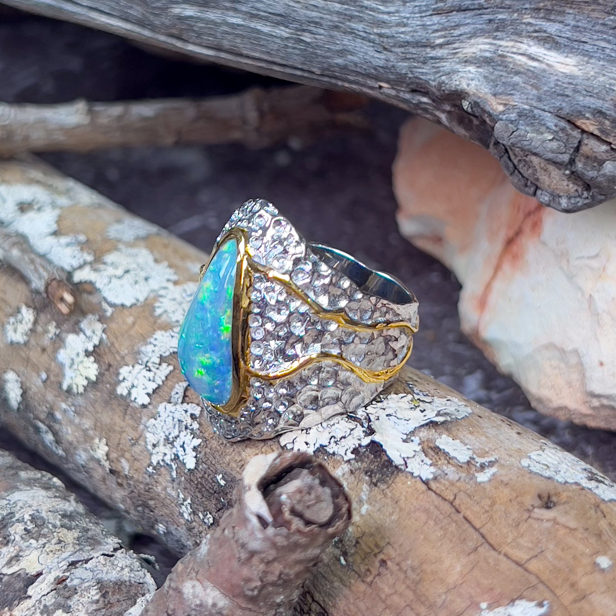 Sterling Silver Two Tone Ocean Reef design ring with Opal