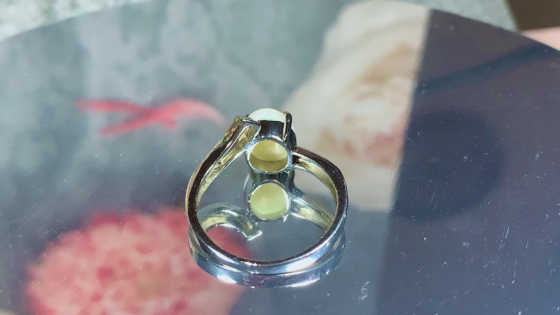 Sterling Silver White Opal split shank slanted ring with Opal 9x7mm