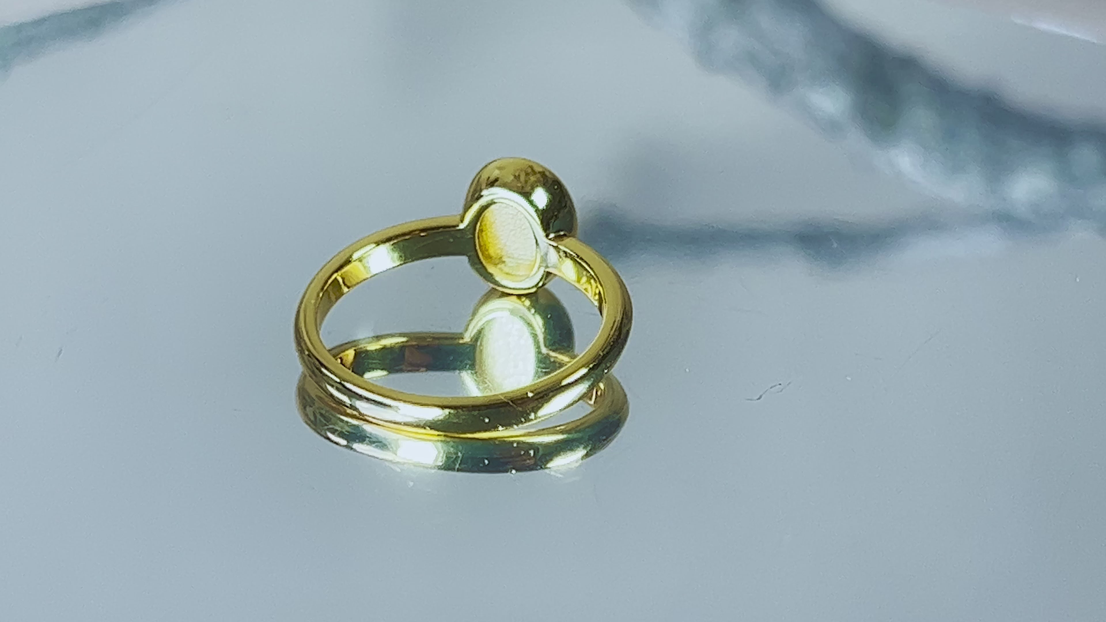 Gold plated sterling silver solitaire bezel set ring8x6mm Australian White Opal