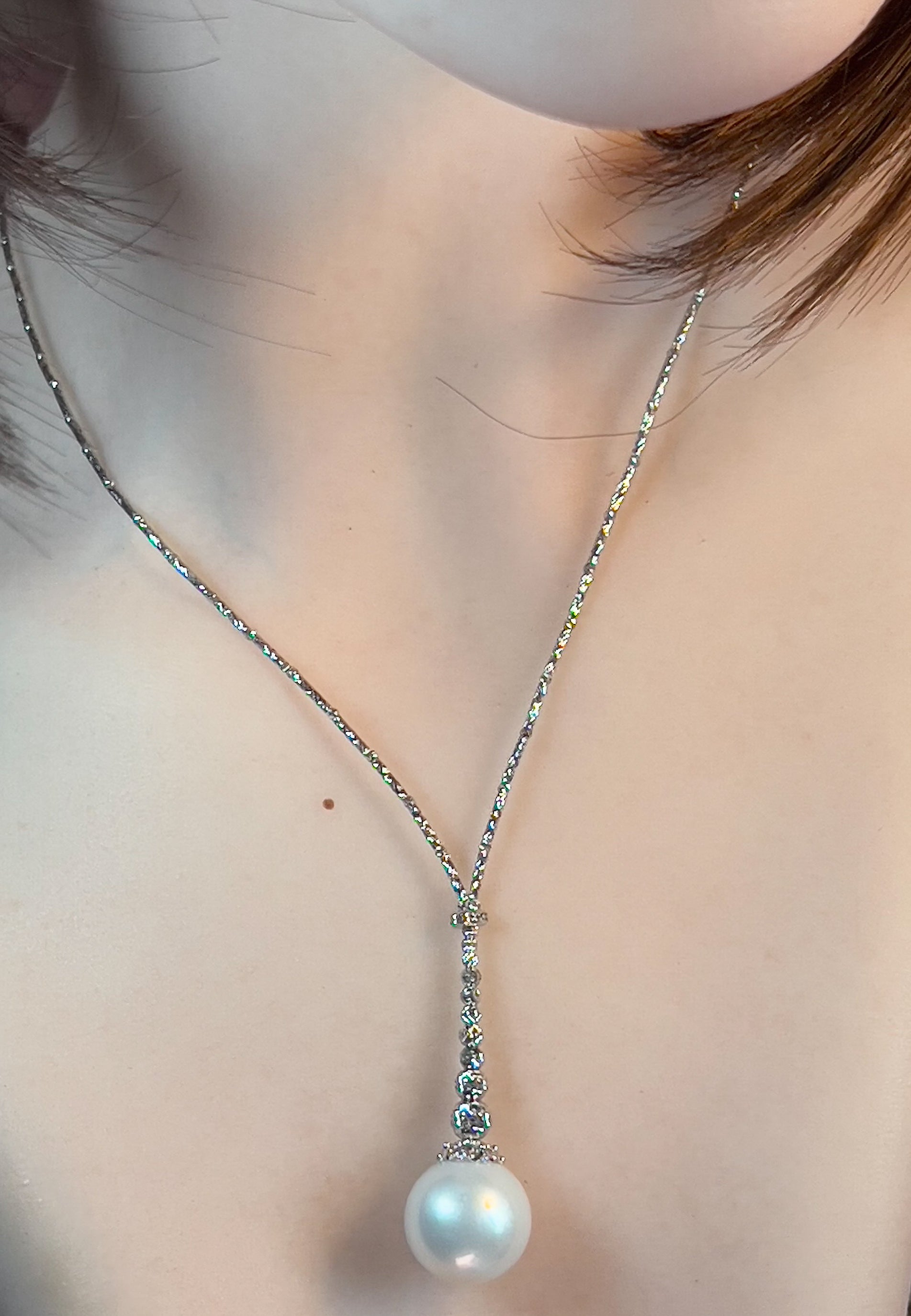18kt White Gold diamond cut necklace with South Sea Pearl wire style