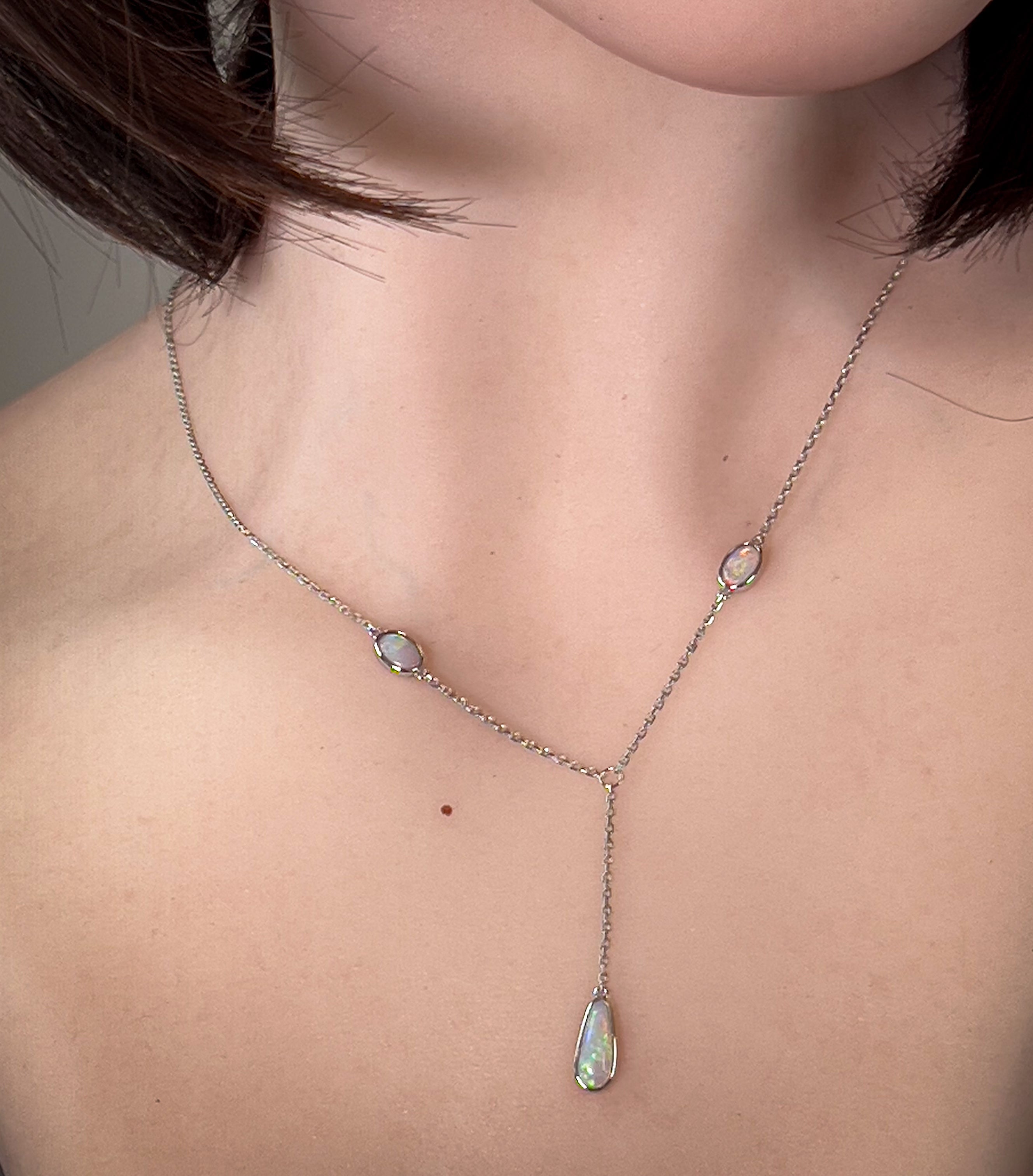 14kt White Gold 3 Opal necklace