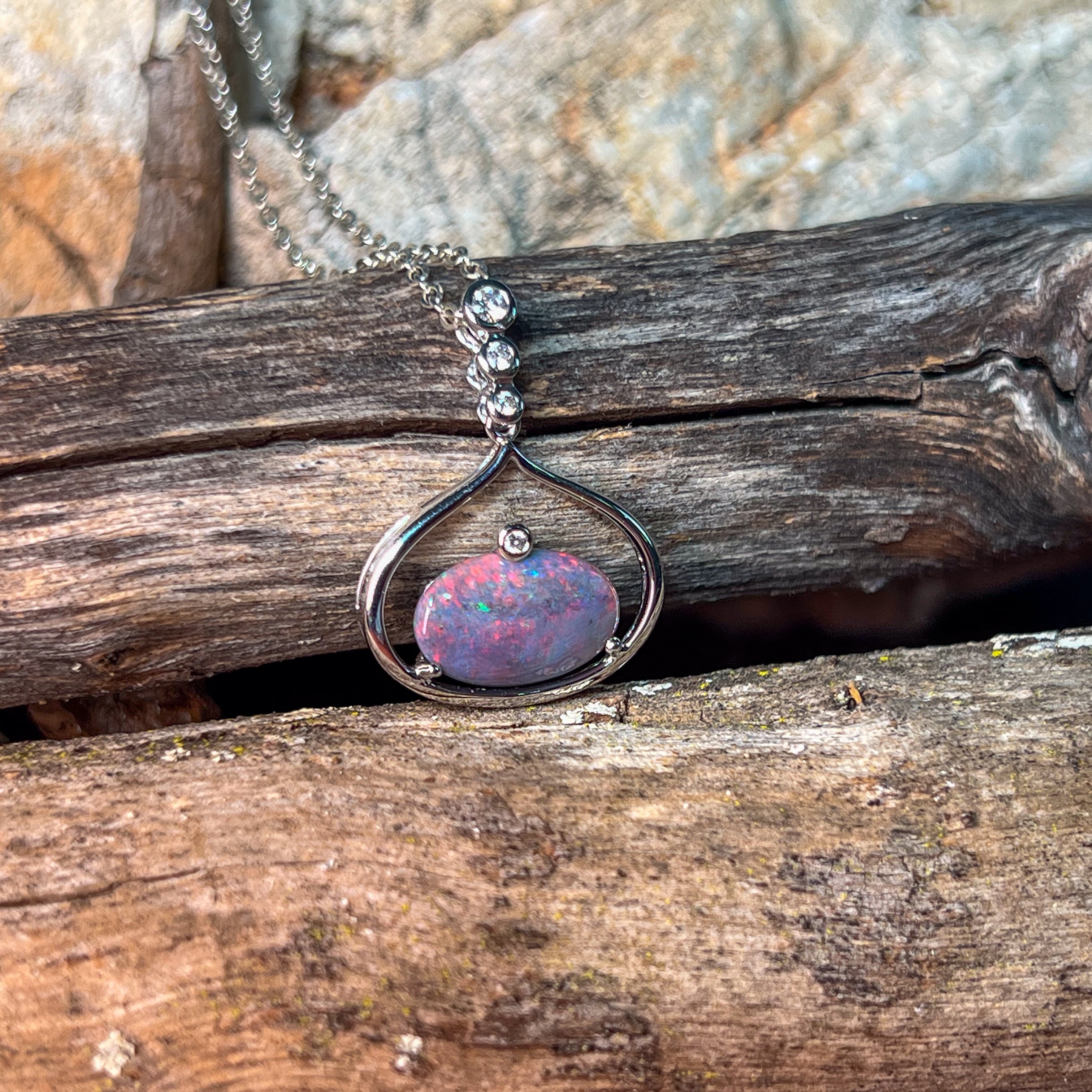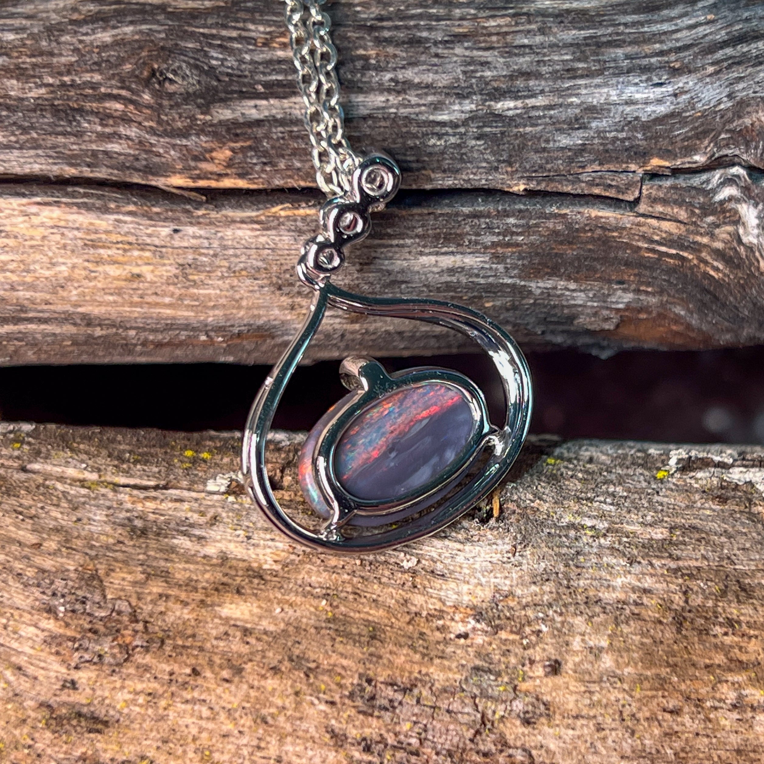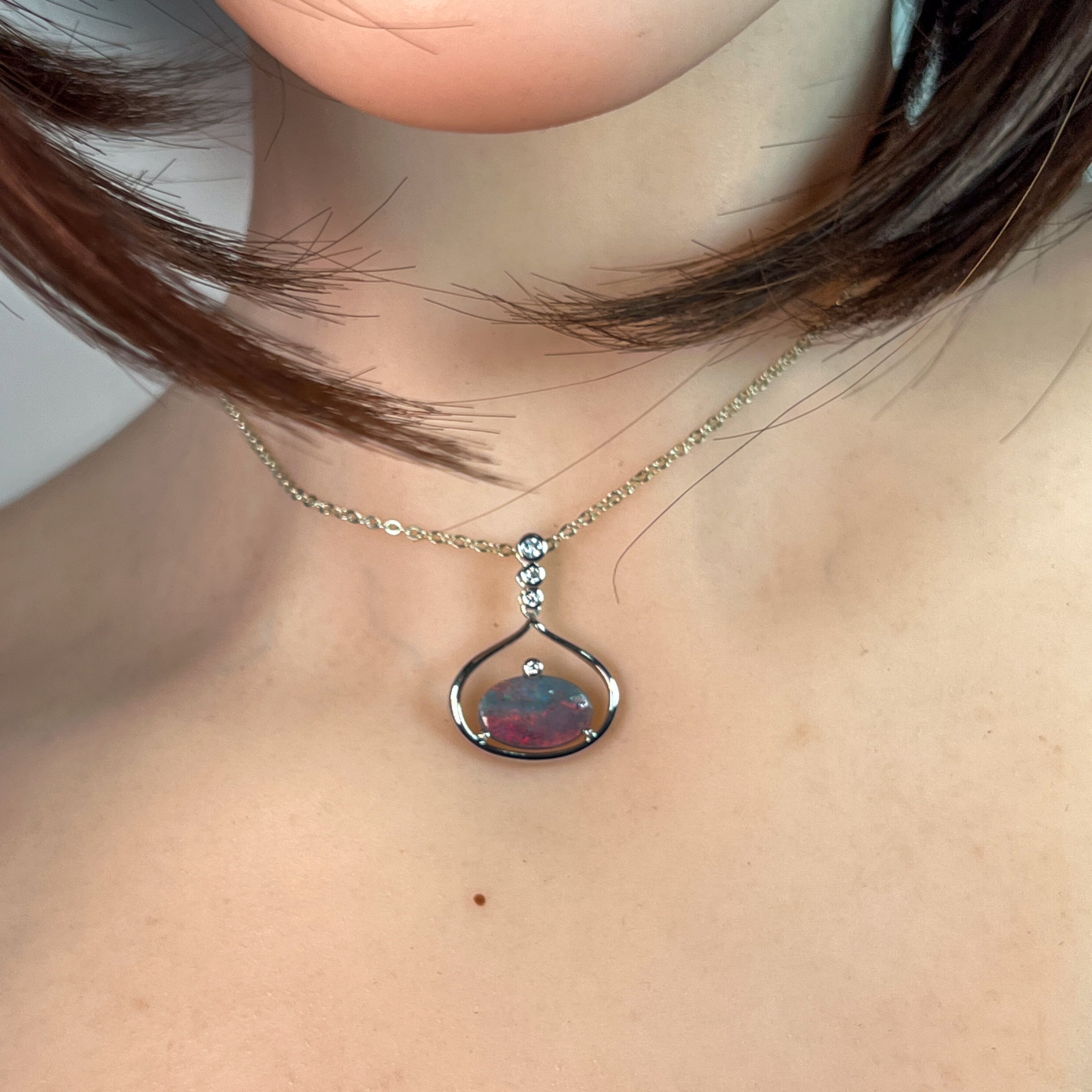 14kt White Gold Black Opal 2.68ct and Sapphire pendant