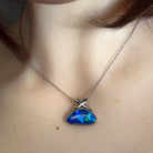 Dive into the mesmerizing depths of the ocean with this stunning 14kt white gold pendant. The 4.45ct blue-green opal doublet captures the serene beauty of tropical waters, shifting between rich teals and calming aquamarine hues as light dances across its surface. Crafted in lustrous white gold, this piece brings sophistication and elegance to any collection. Perfect for those who appreciate nature's artistry and seek a distinctive statement piece that evokes the tranquility of the sea. A timeless treasure that transforms any occasion into something truly special.