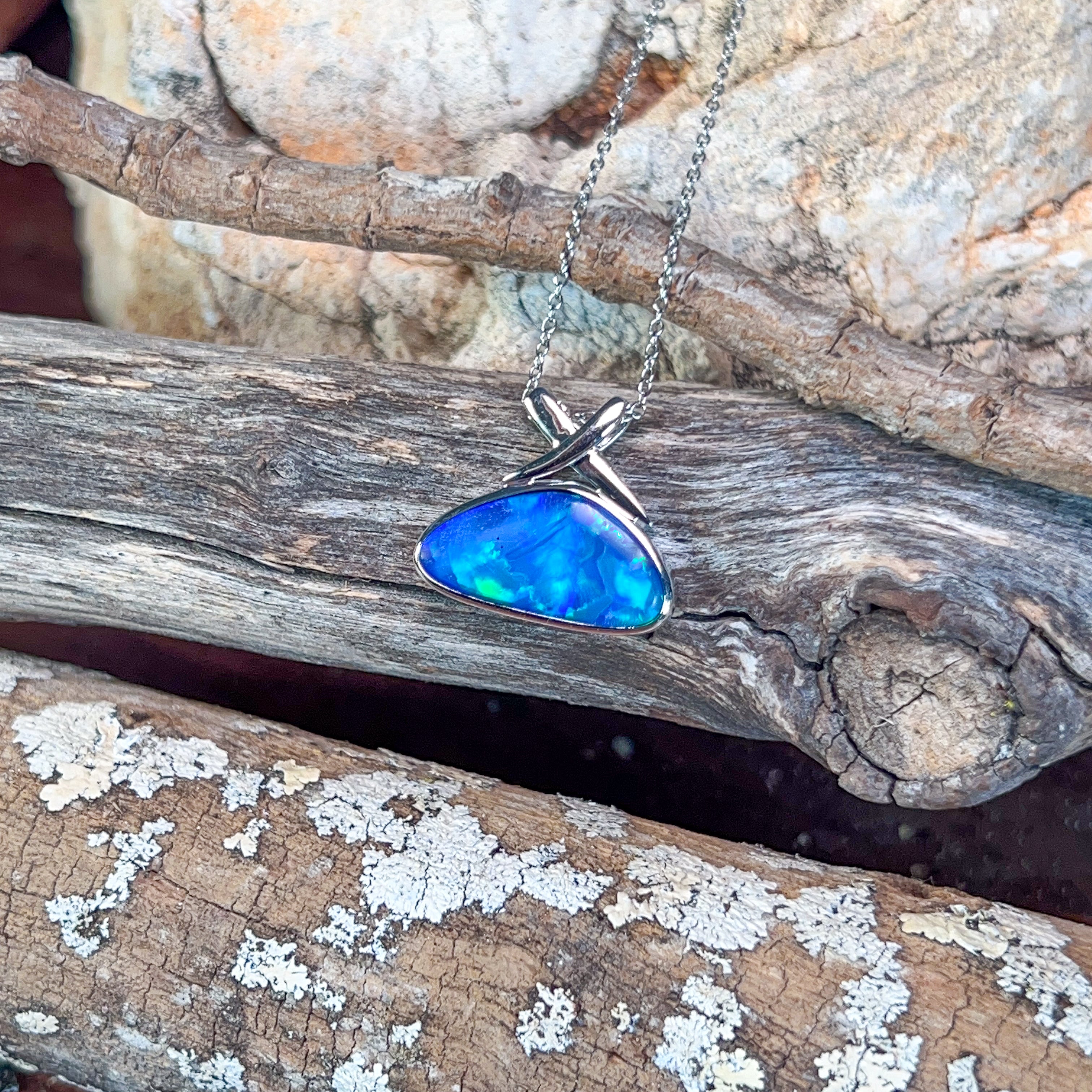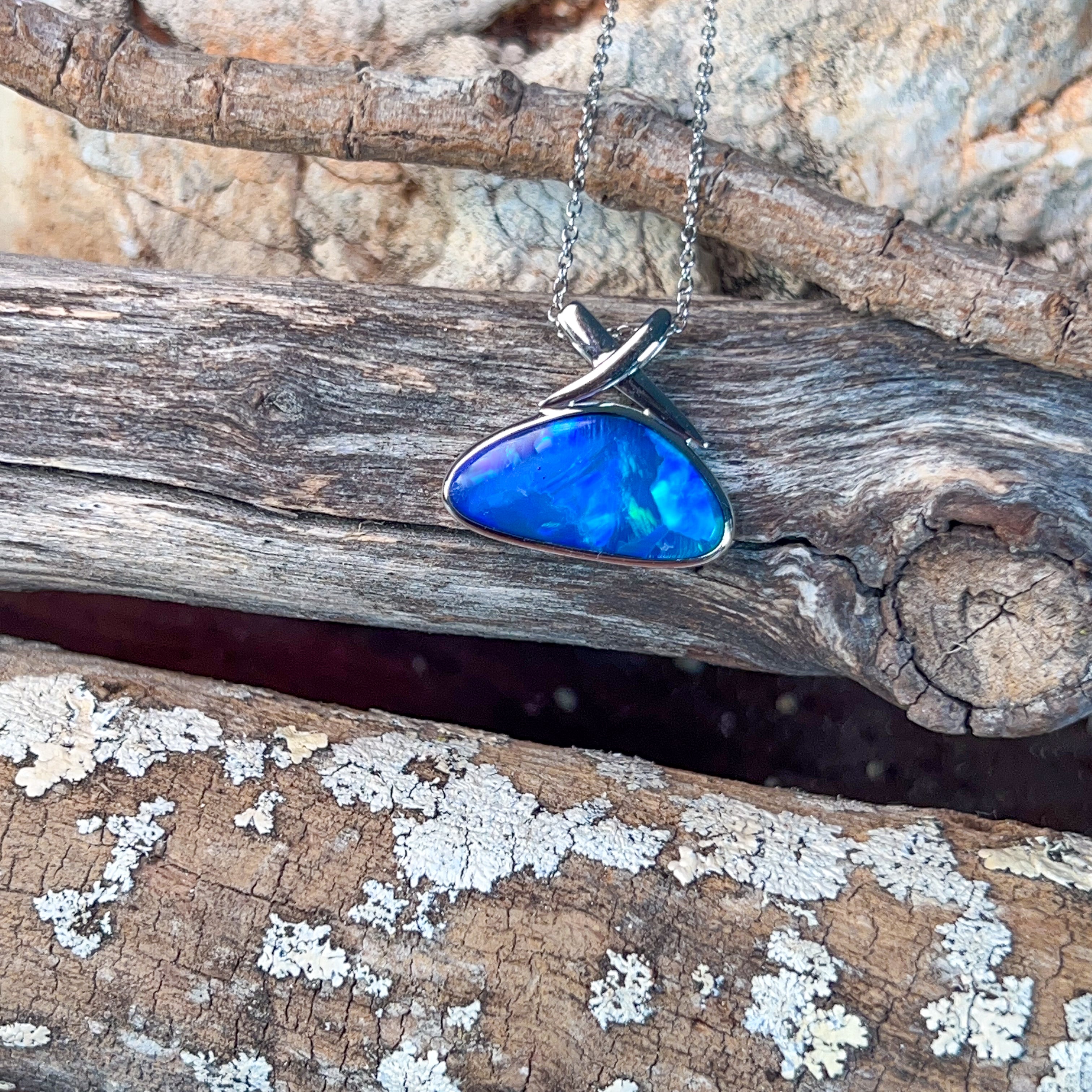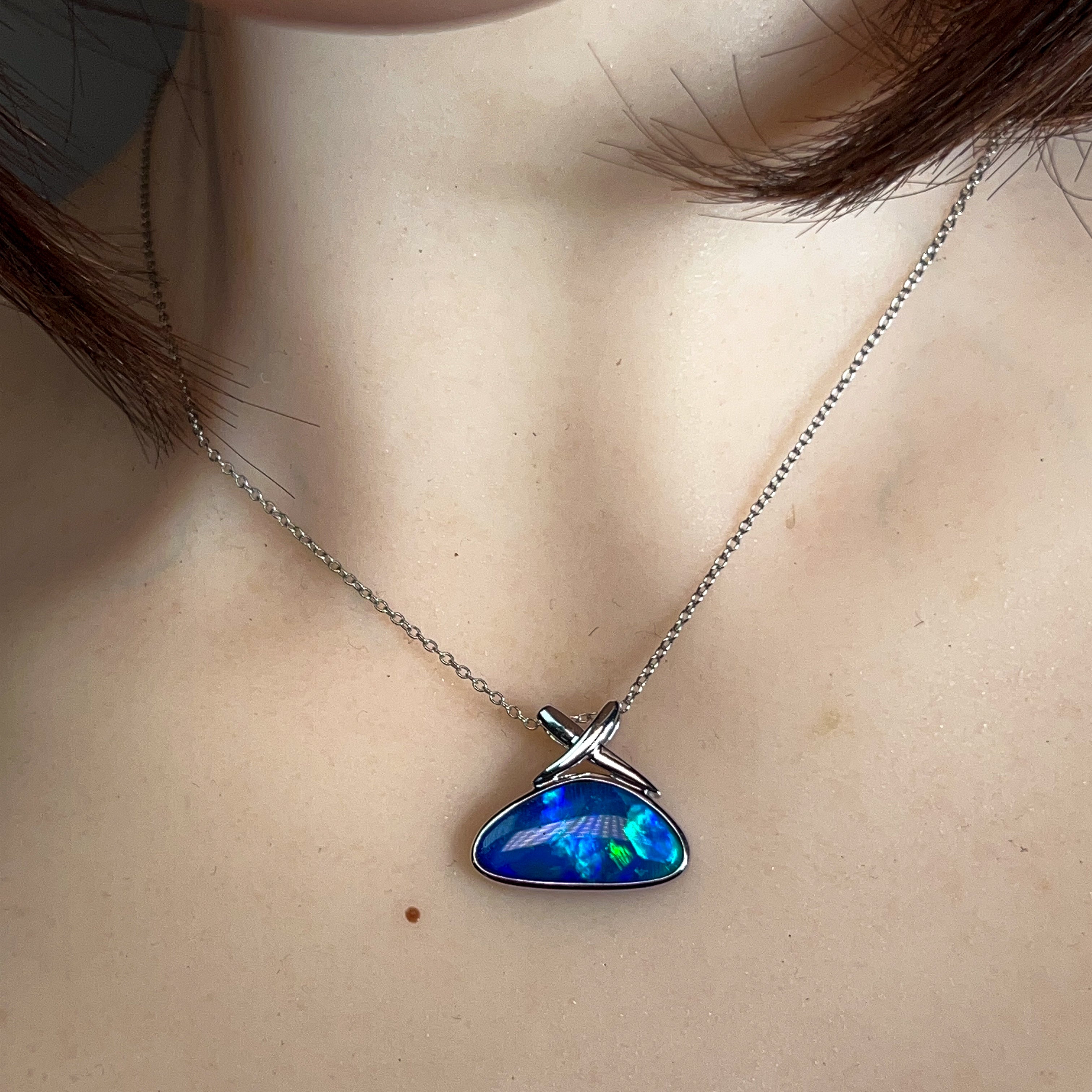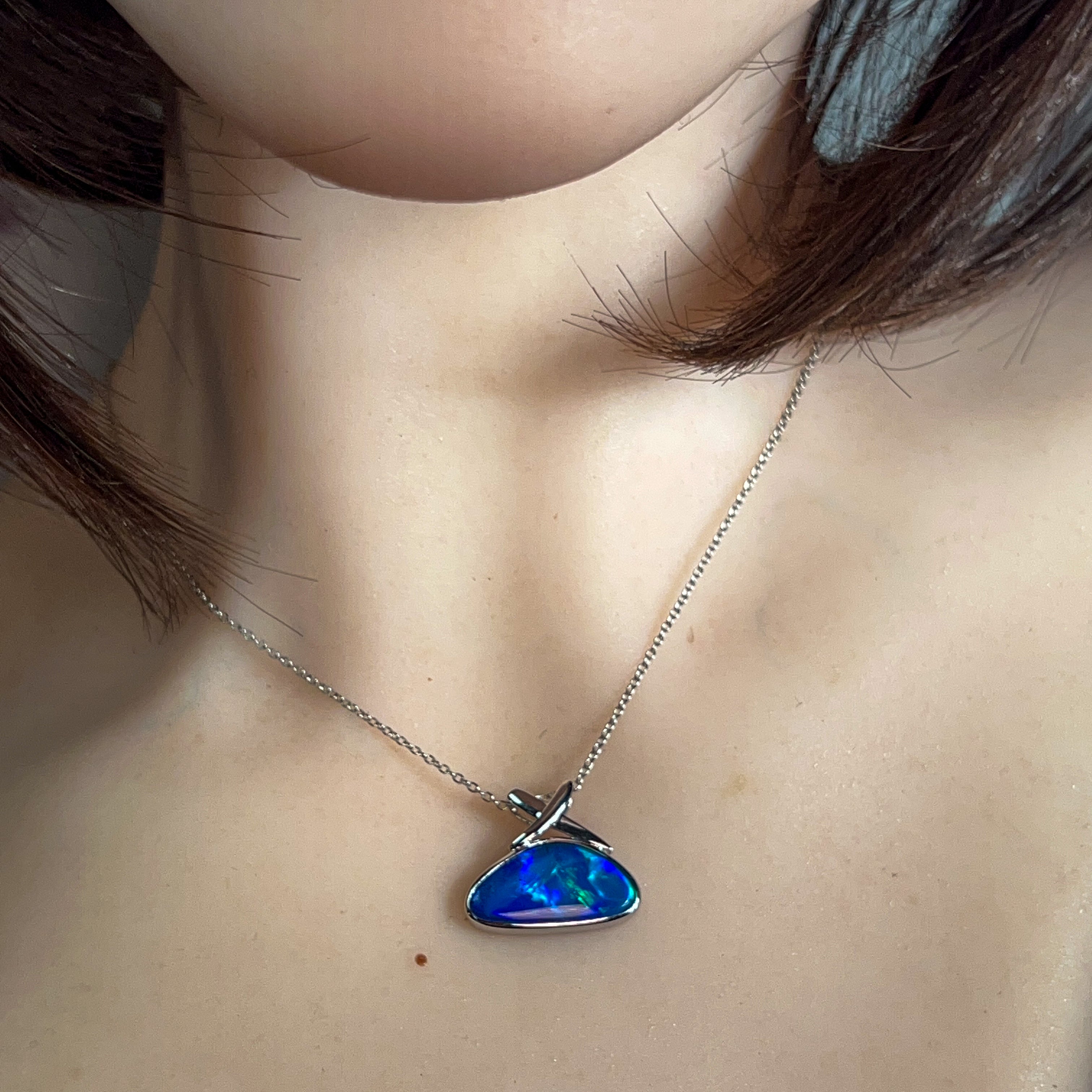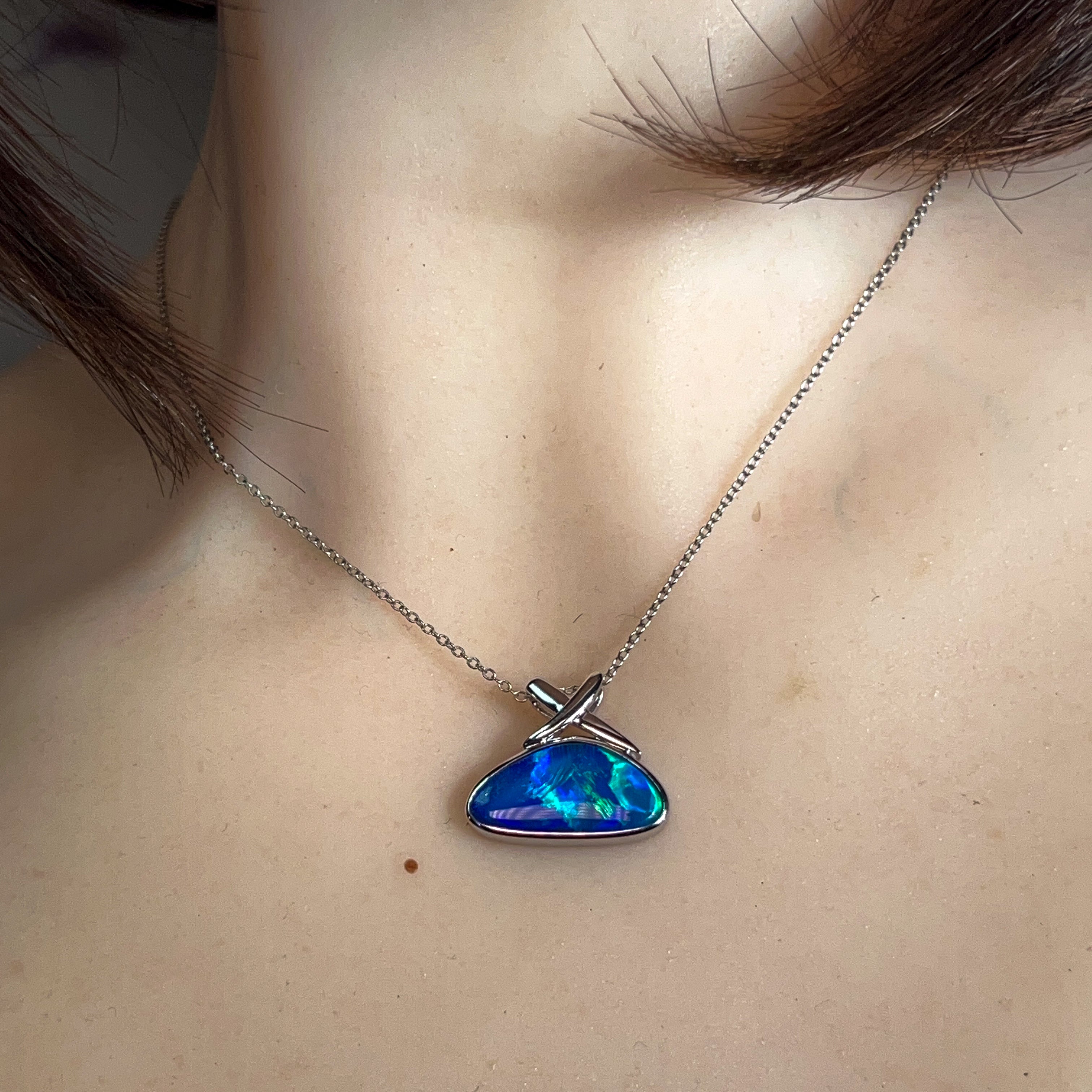 14kt White Gold Blue Green Opal doublet 4.45ct Pendant
