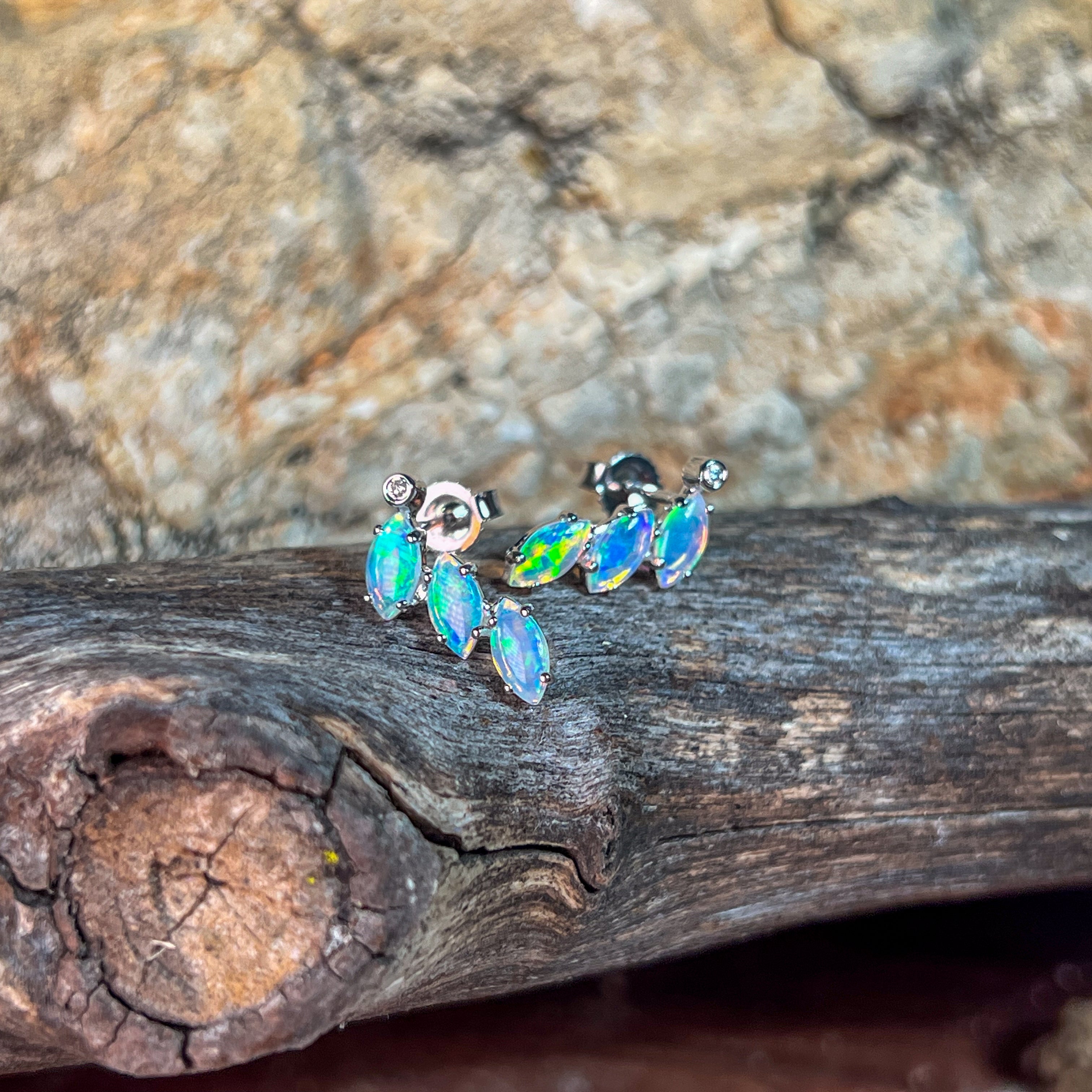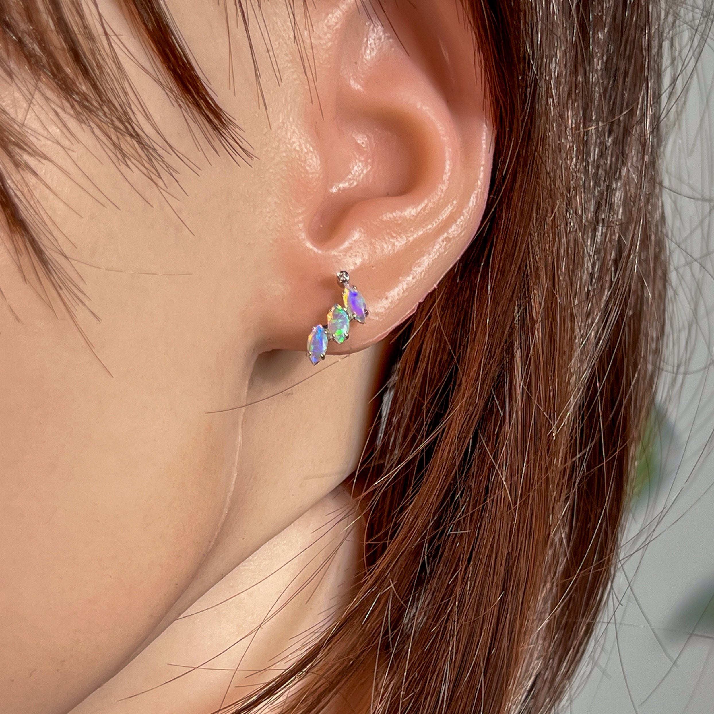 Indulge in pure luxury with our 14kt White Gold Marquise Studs featuring dazzling diamond accents. The opal gemstones add a touch of sophistication and opulence to any outfit. Elevate your style with these exquisite white opal earrings.